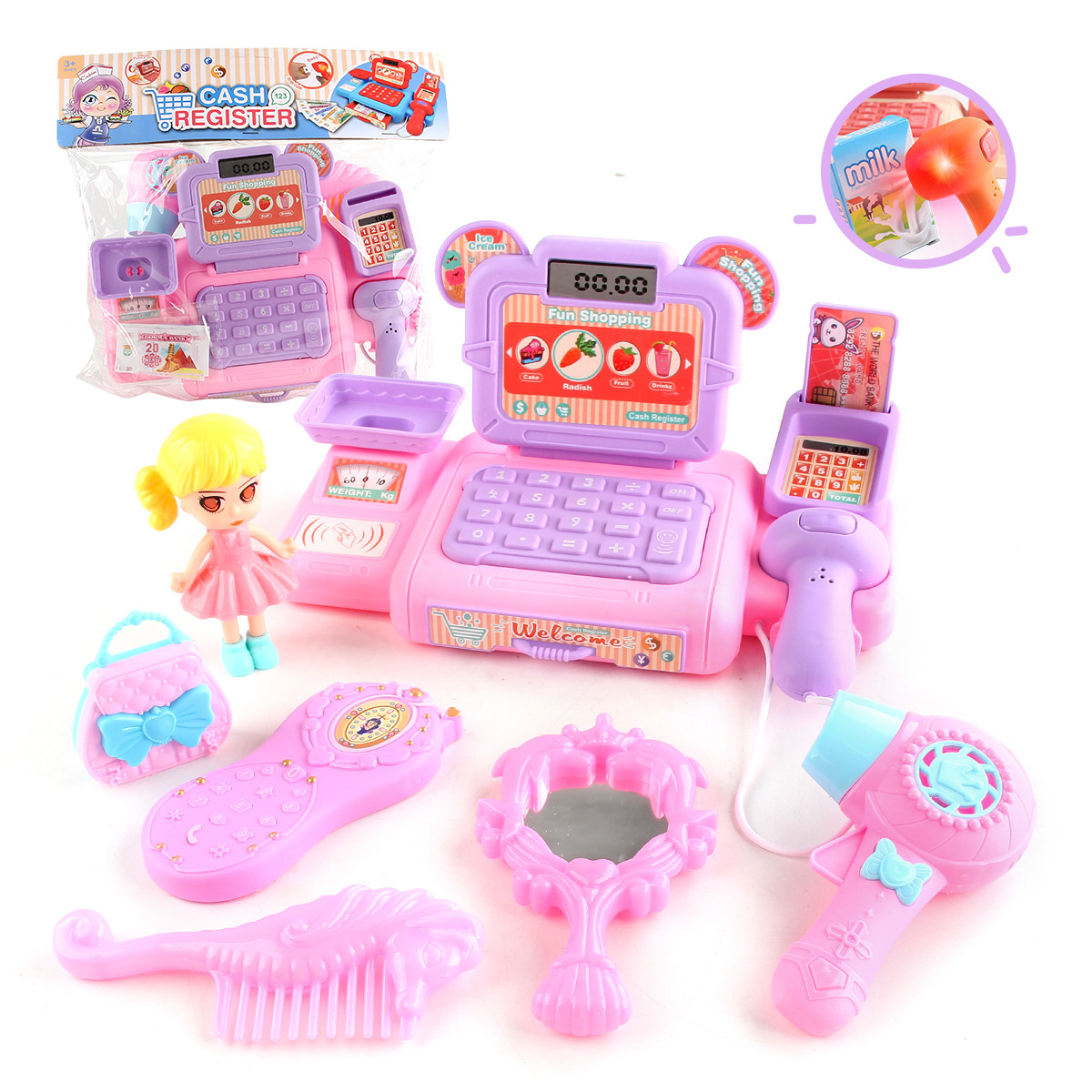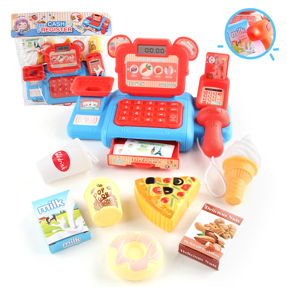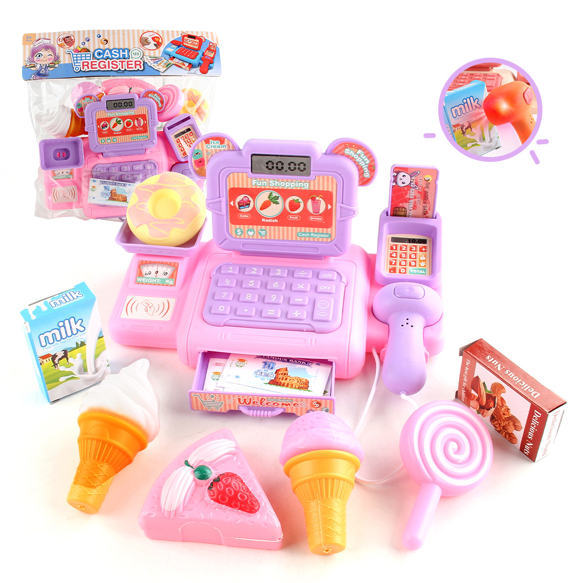 儿童仿真过家家玩具超市收银机果蔬糖果套装迷你便利店收银台模型