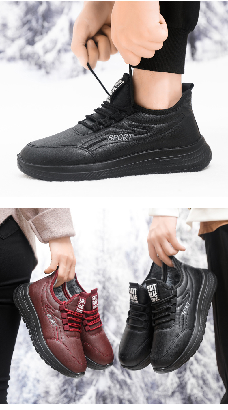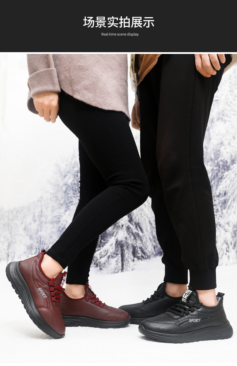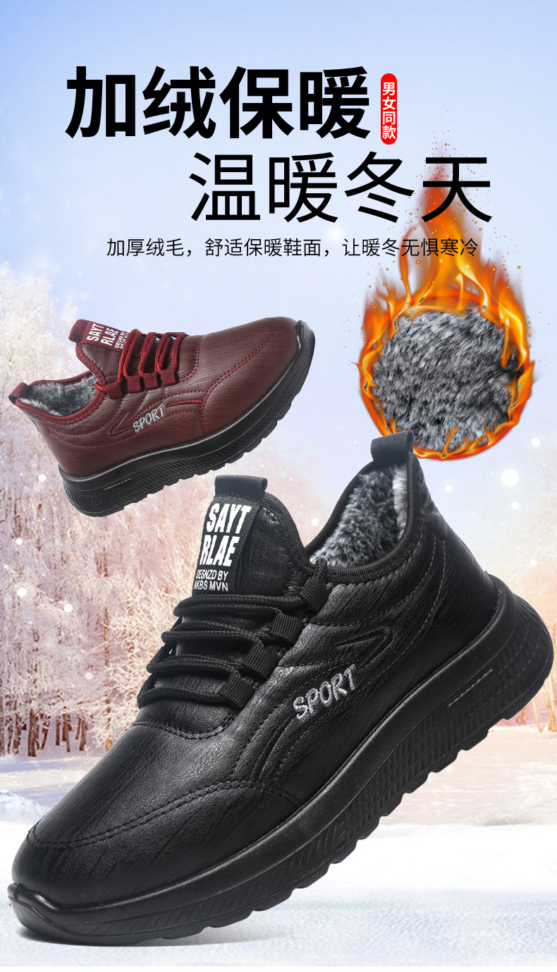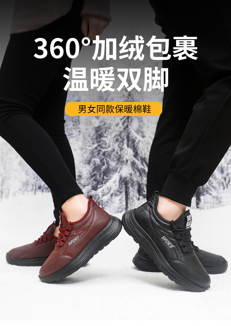 皮棉鞋冬季男士爸爸鞋防水皮面运动休闲男鞋百搭软底防滑保暖女鞋