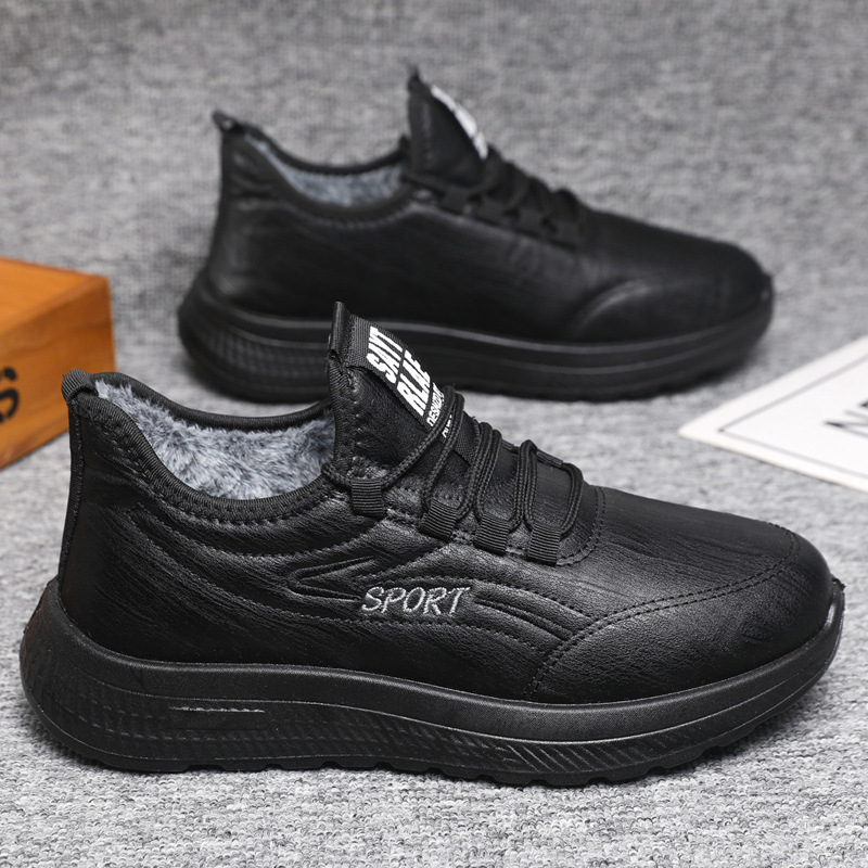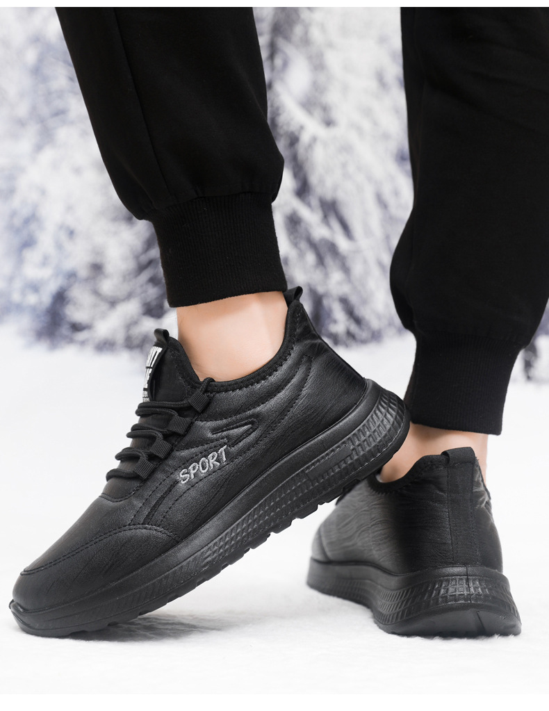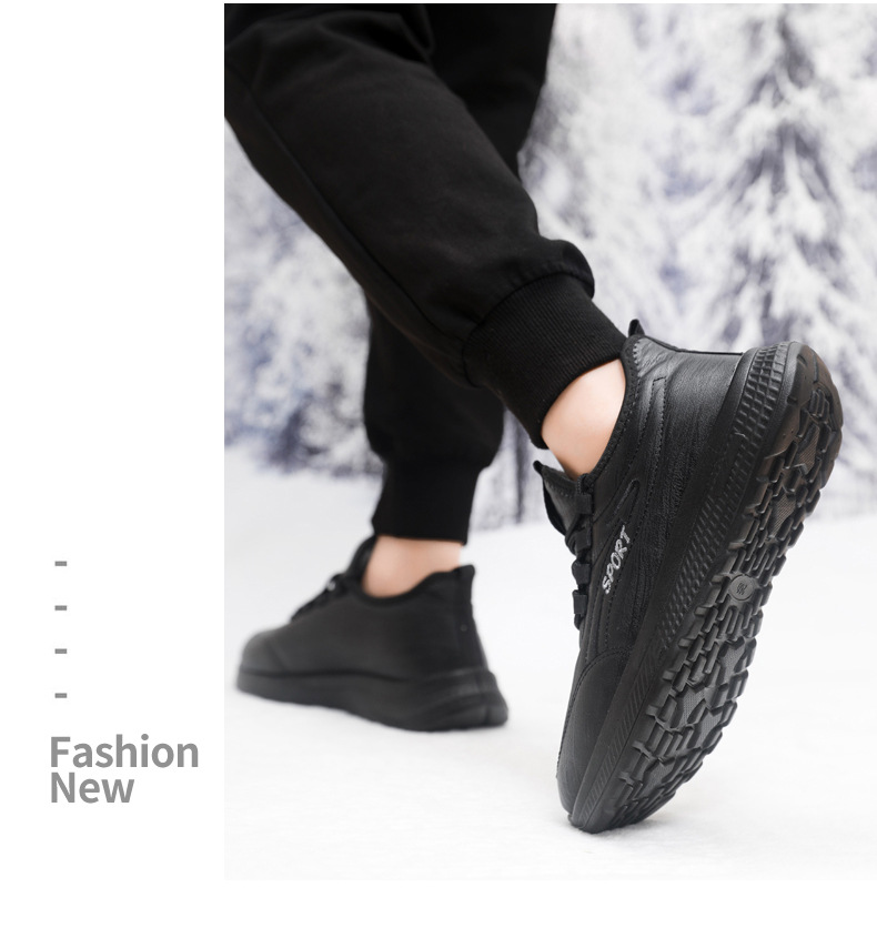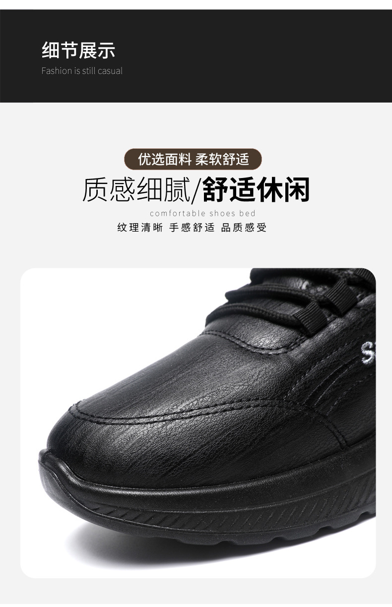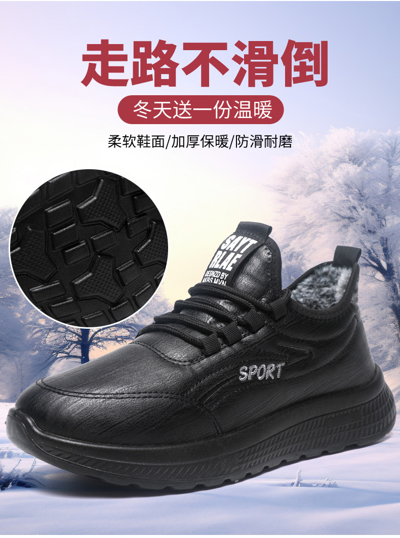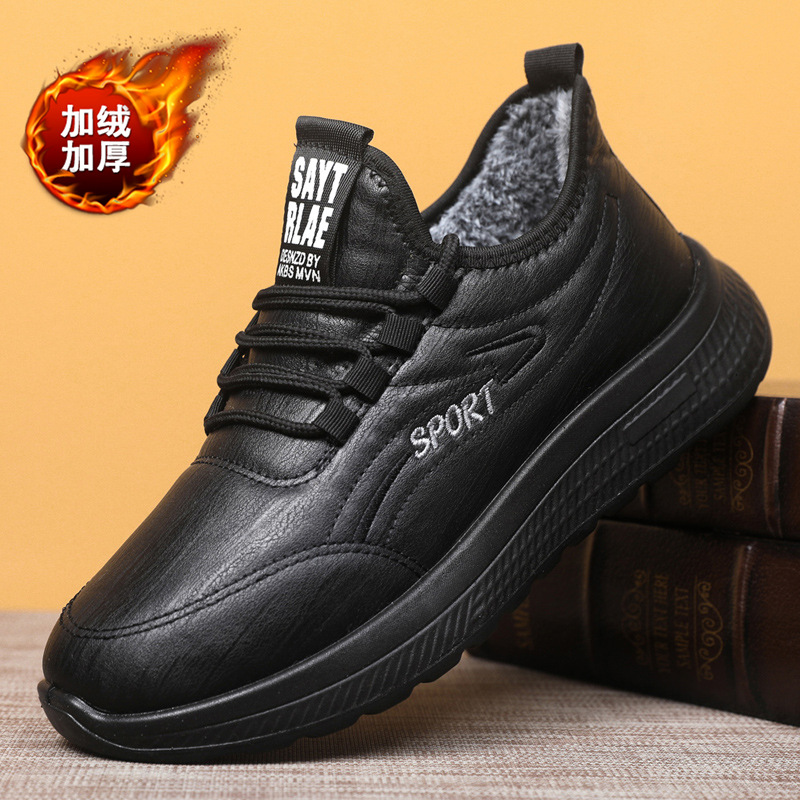皮棉鞋冬季男士爸爸鞋防水皮面运动休闲男鞋百搭软底防滑保暖女鞋