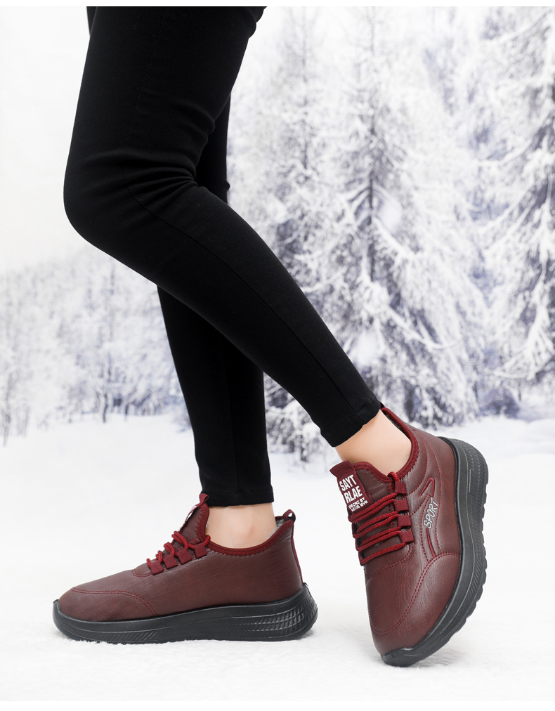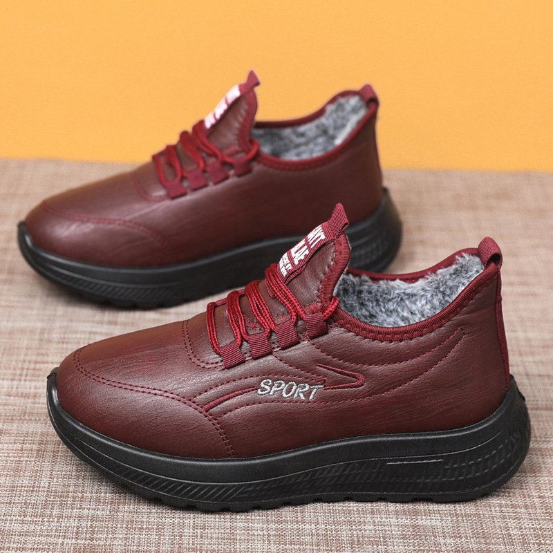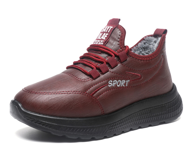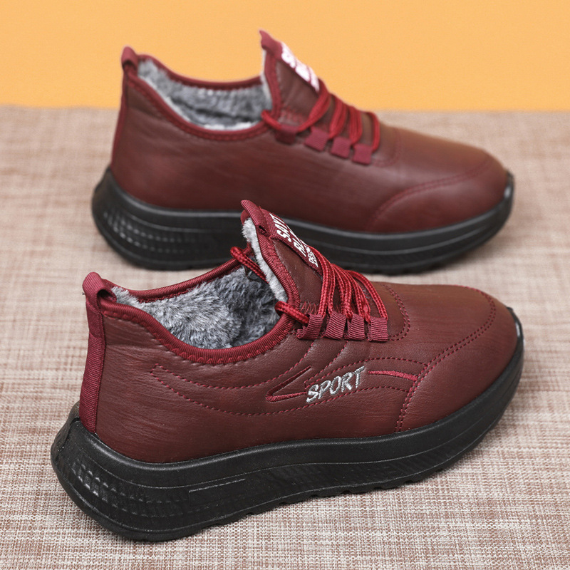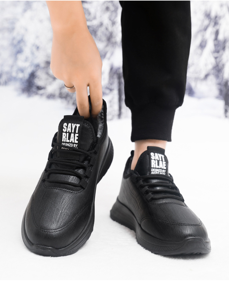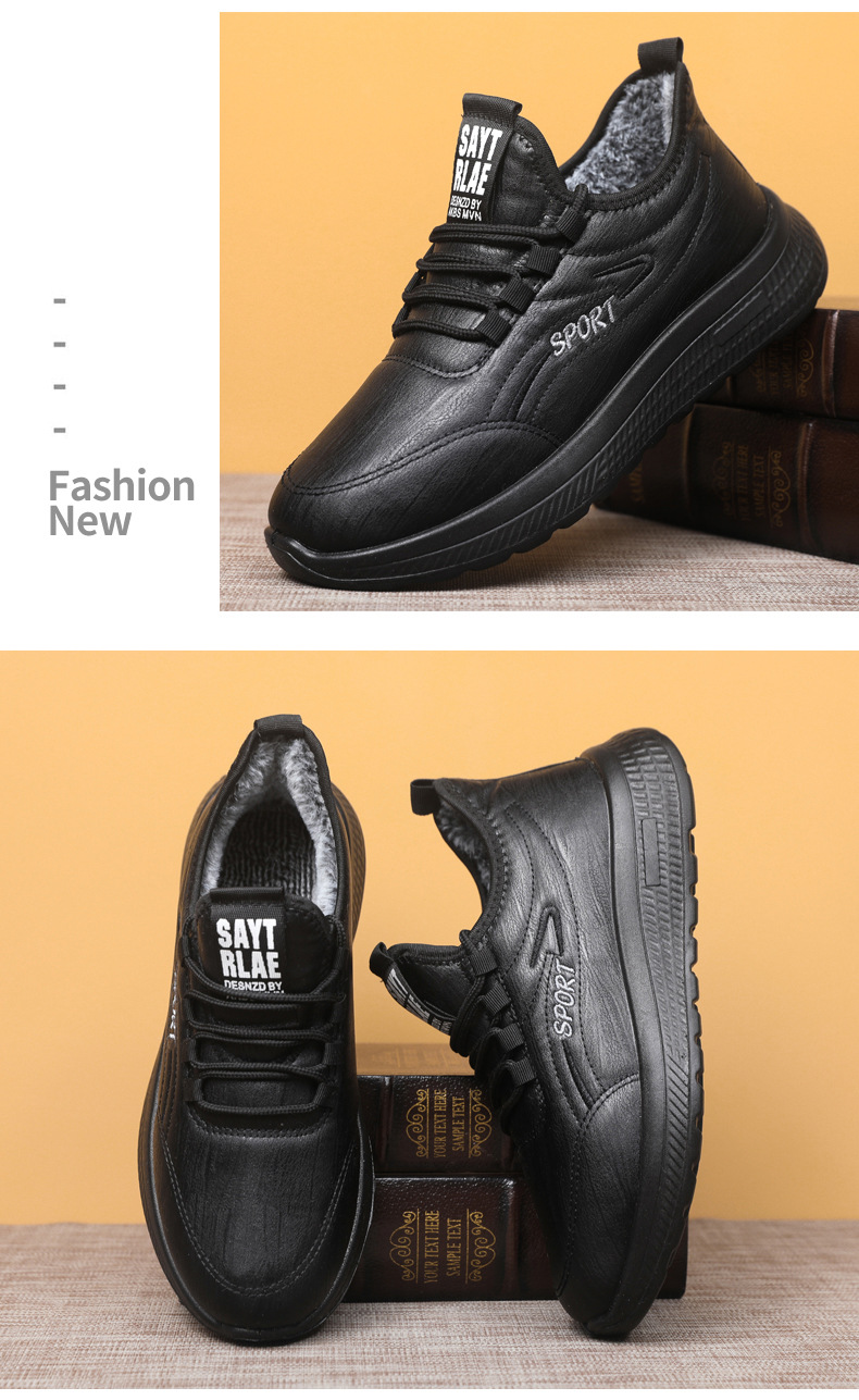 皮棉鞋冬季男士爸爸鞋防水皮面运动休闲男鞋百搭软底防滑保暖女鞋