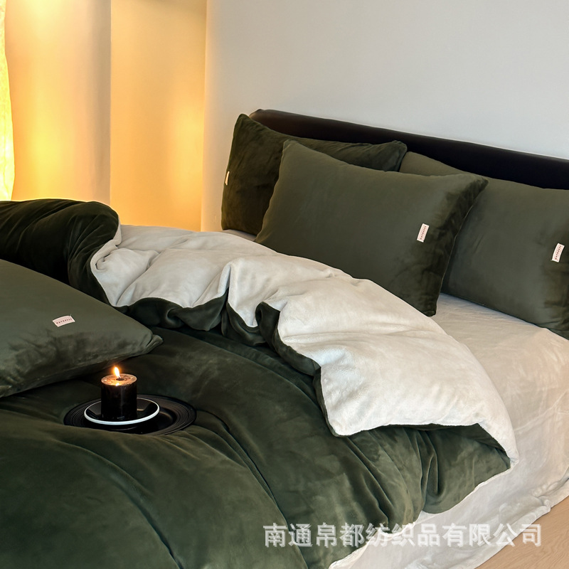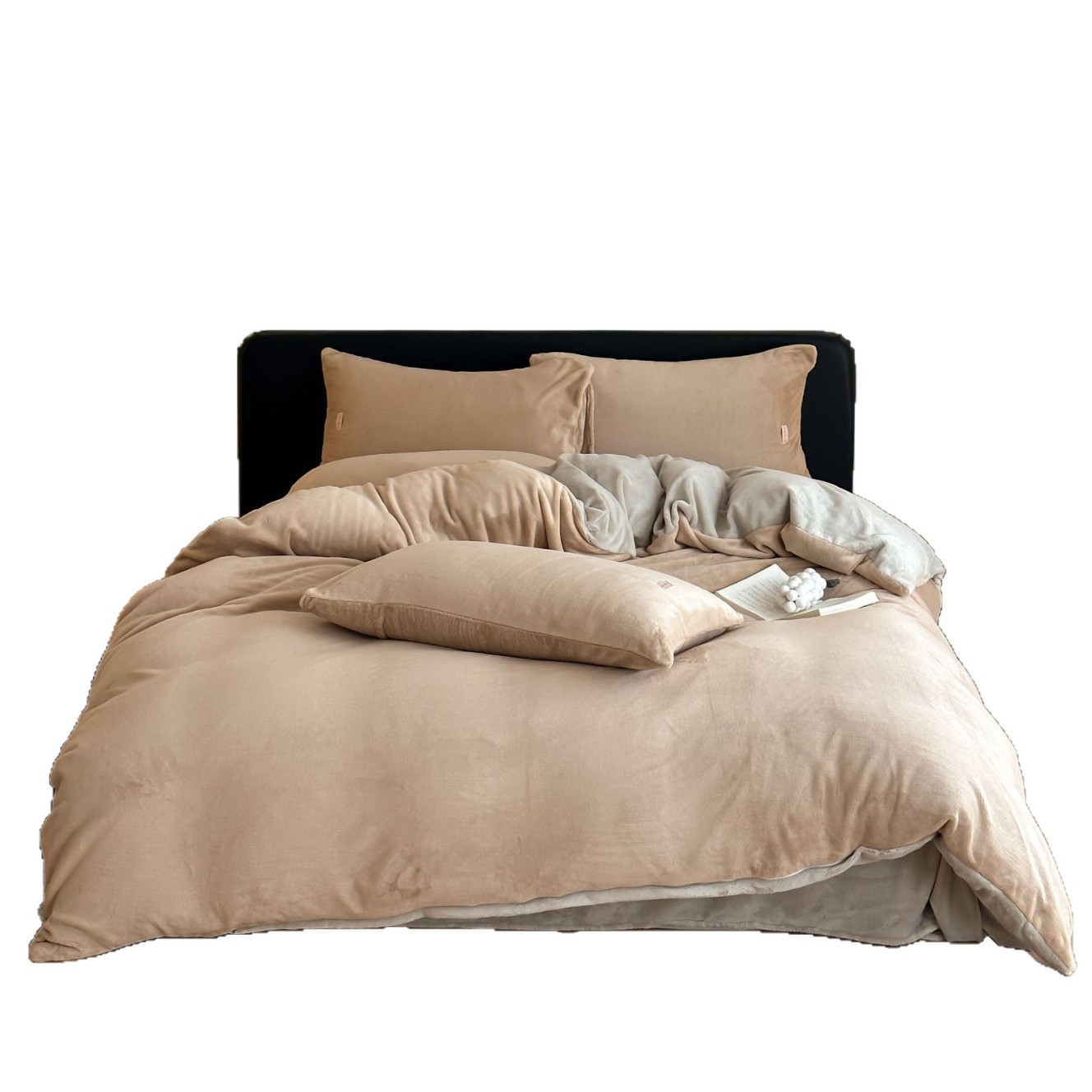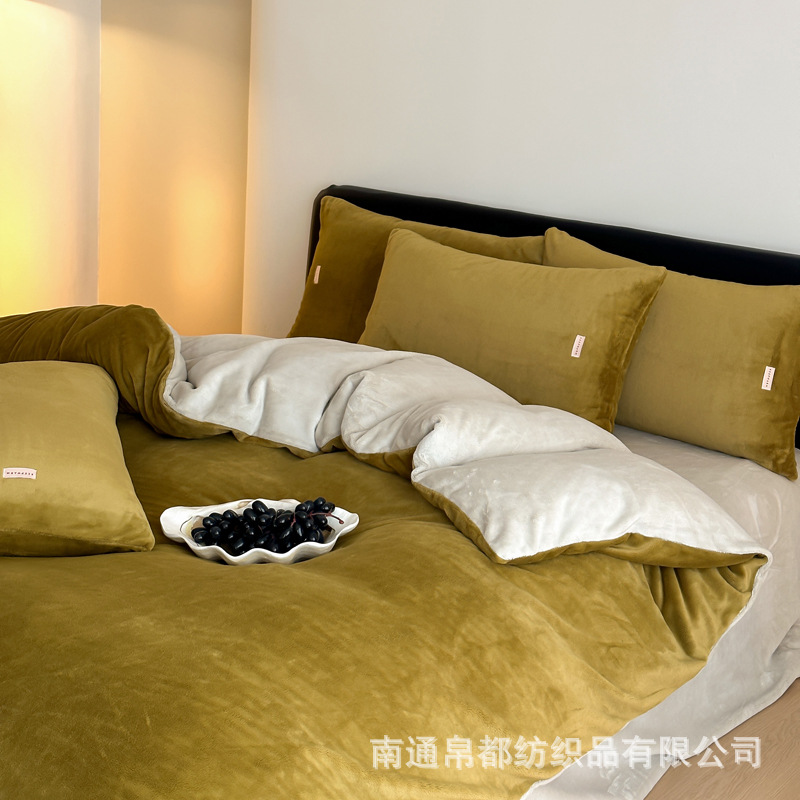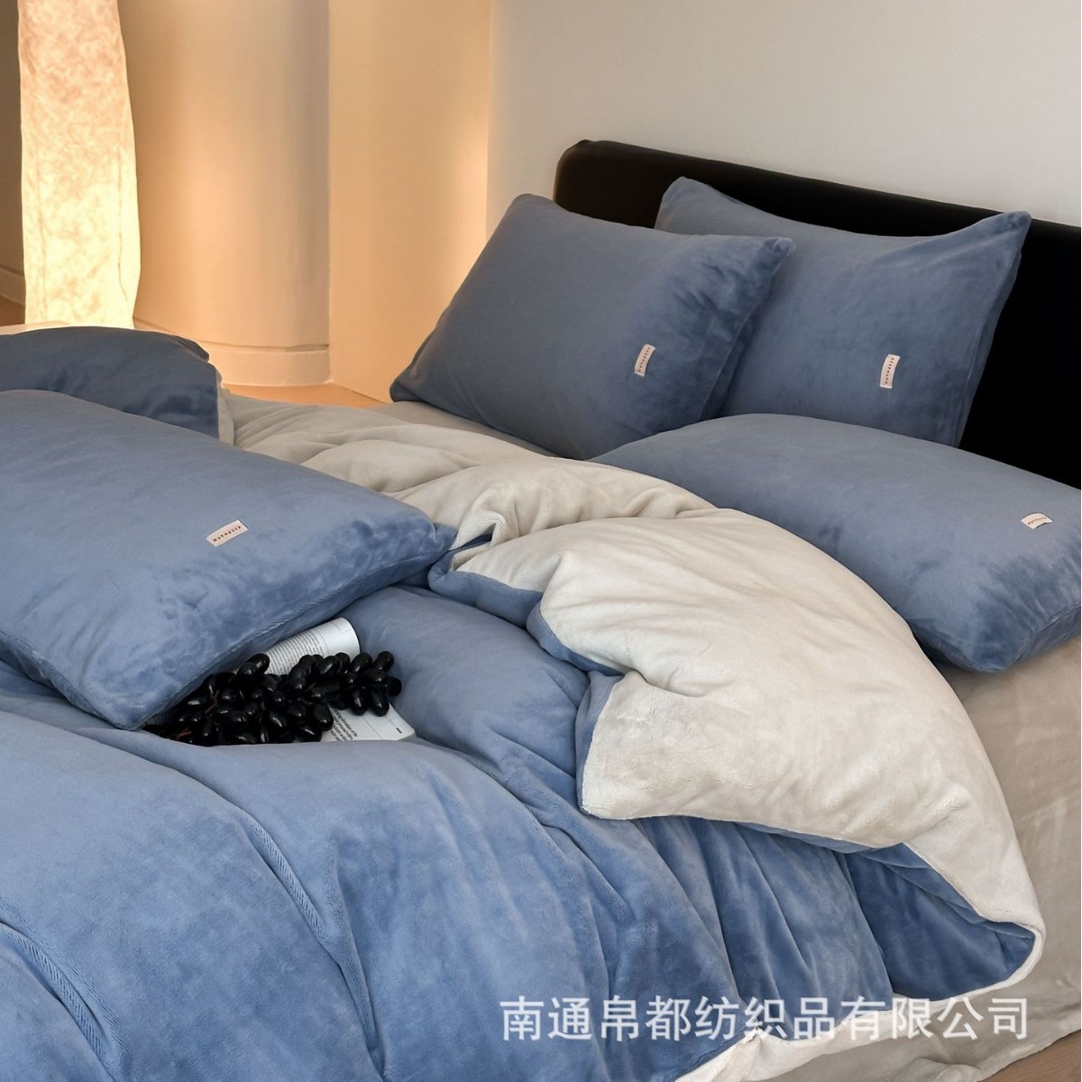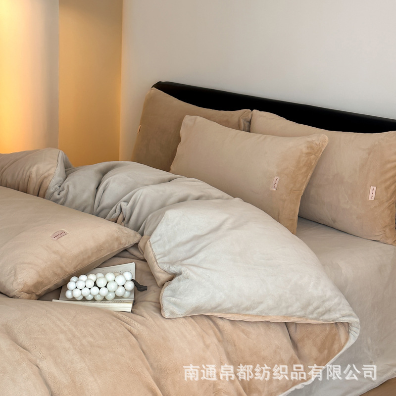 秋冬新款A类简约风高克重纯色牛奶绒四件套加厚保暖床上四件套