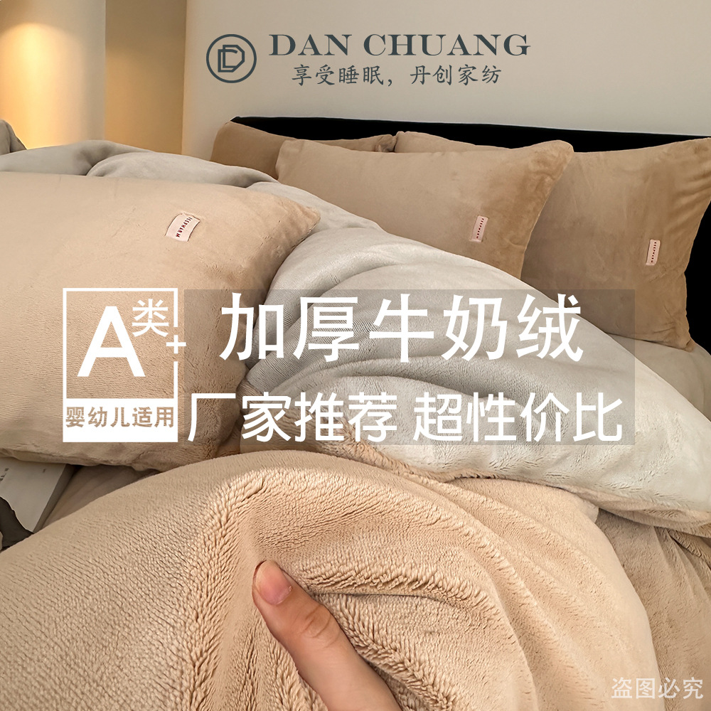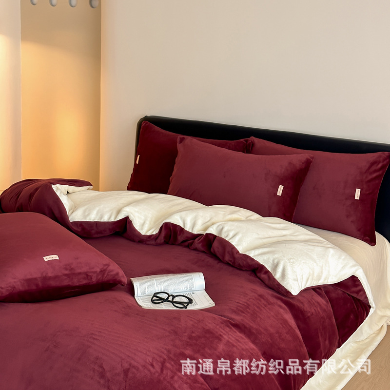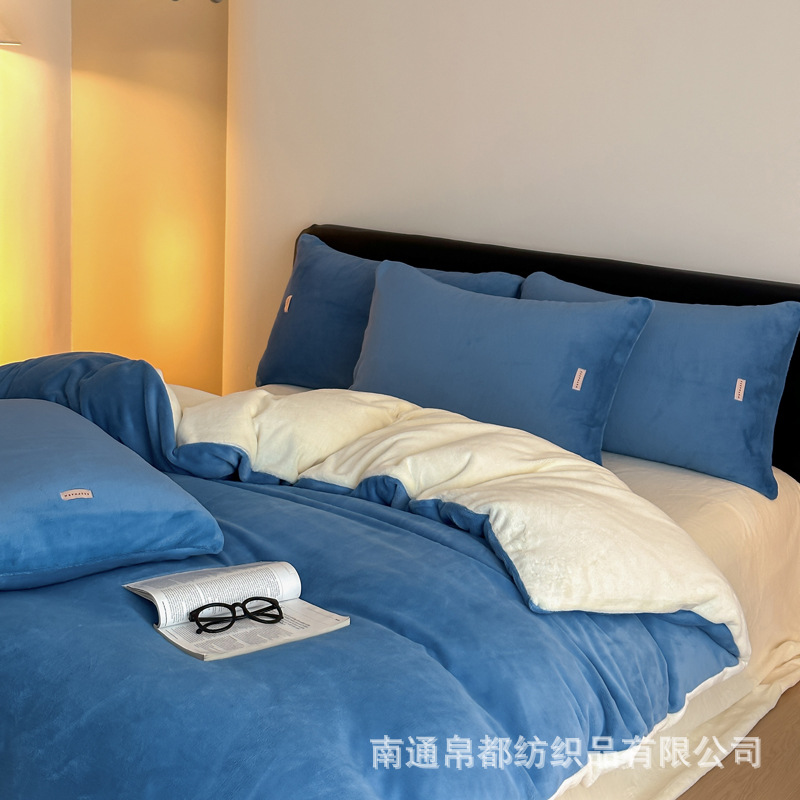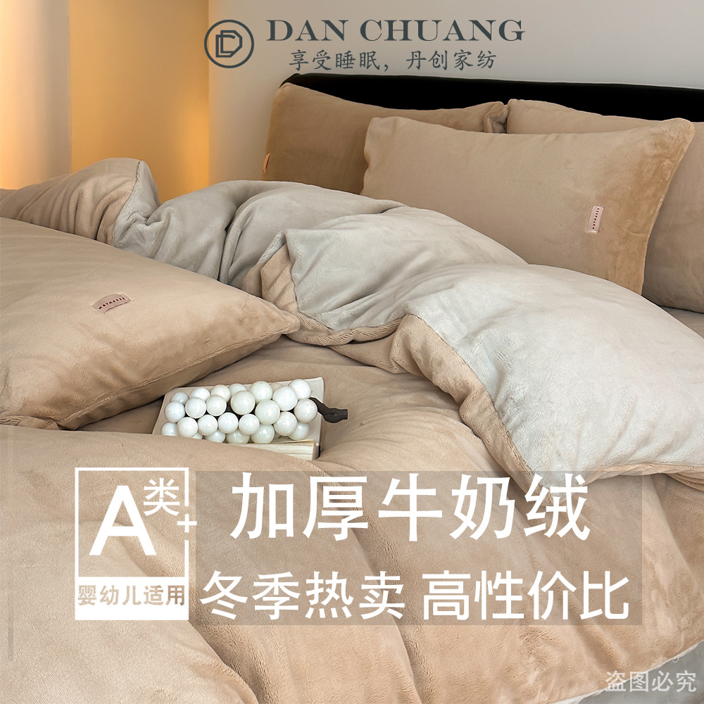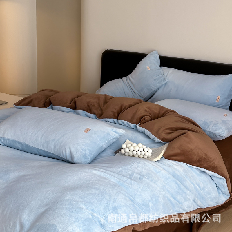 秋冬新款A类简约风高克重纯色牛奶绒四件套加厚保暖床上四件套