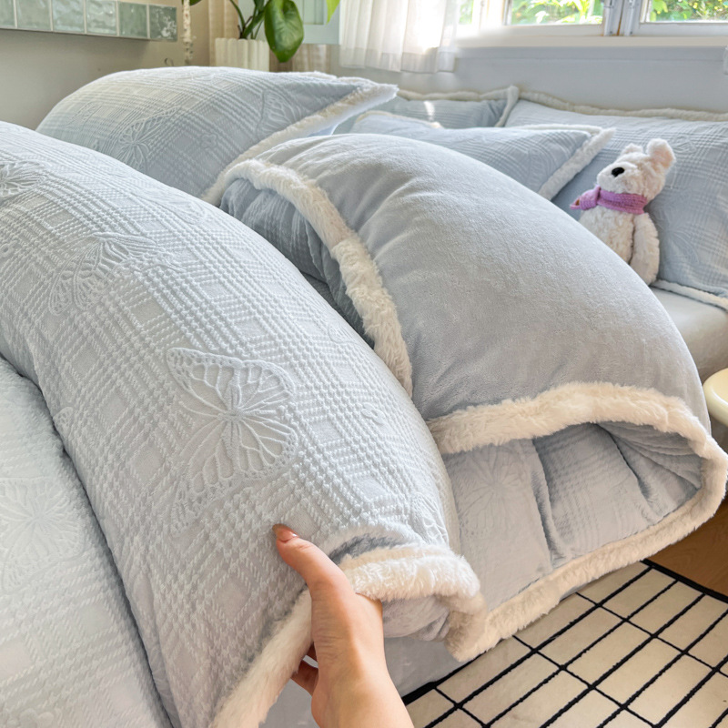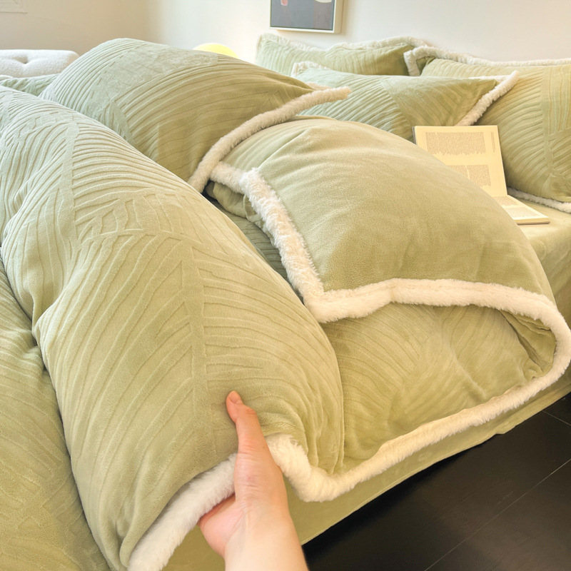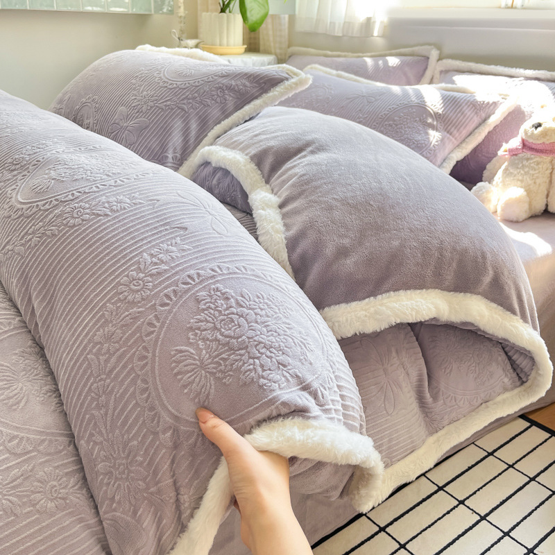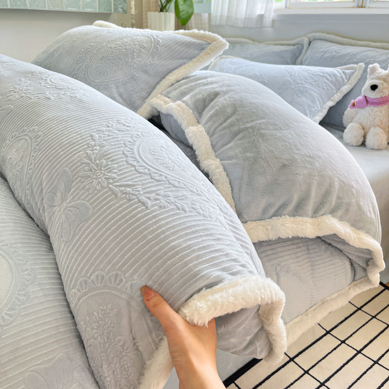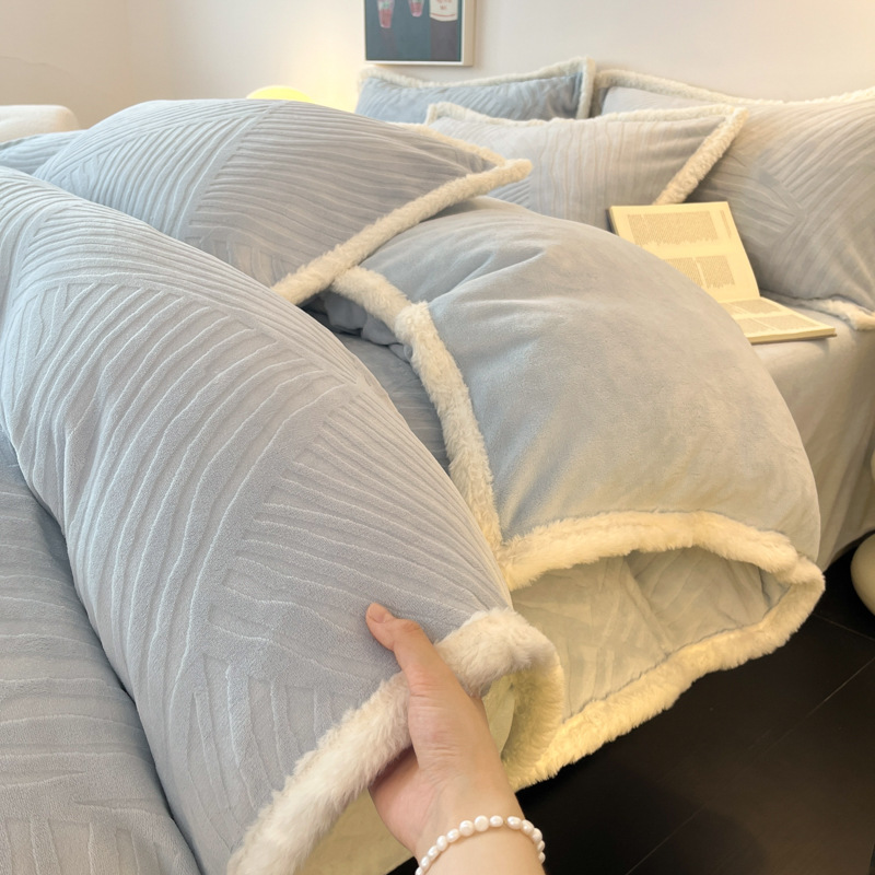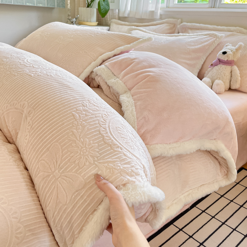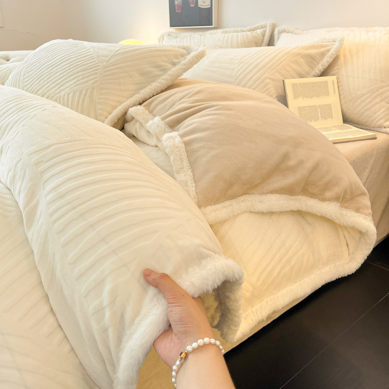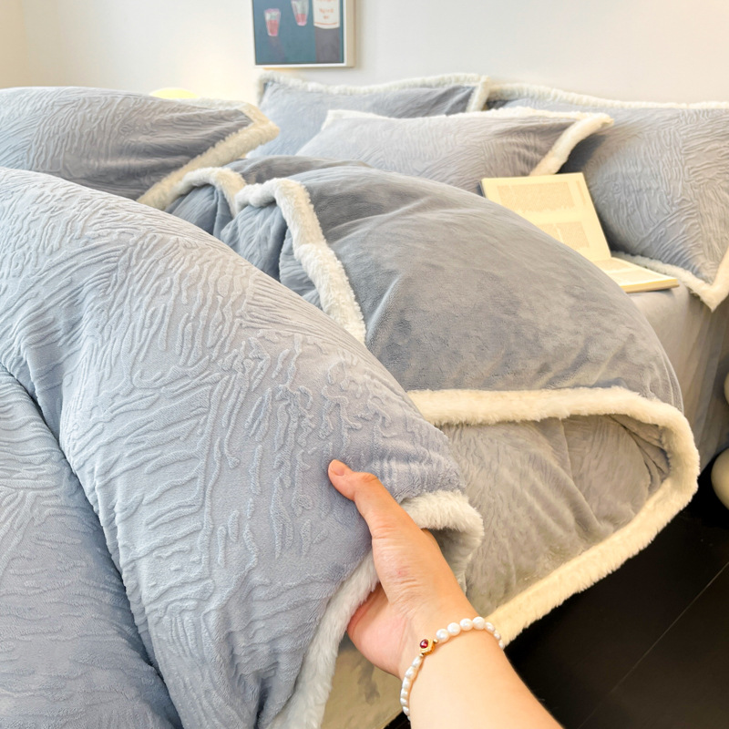 A类雕花牛奶绒四件套2025新款冬季加厚高级感被套珊瑚绒床笠床品3