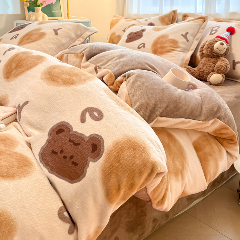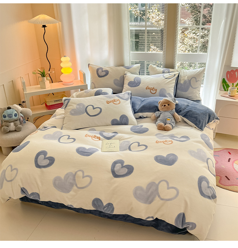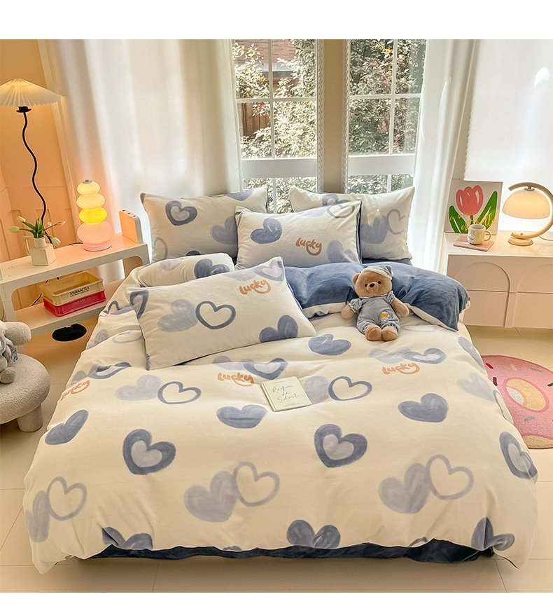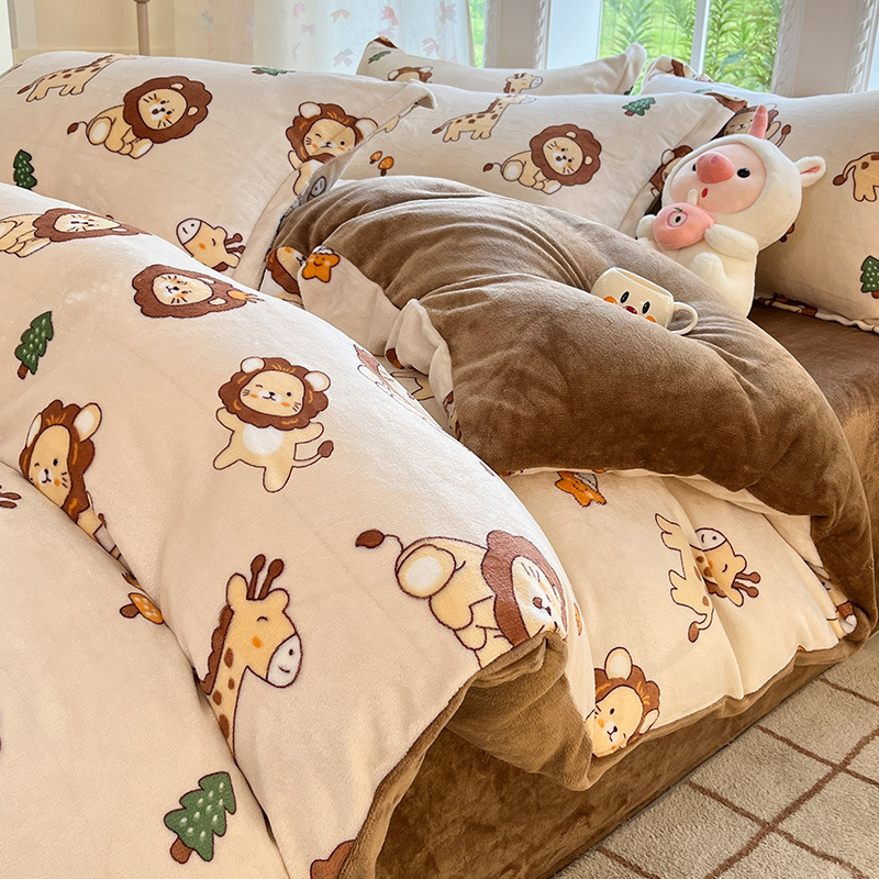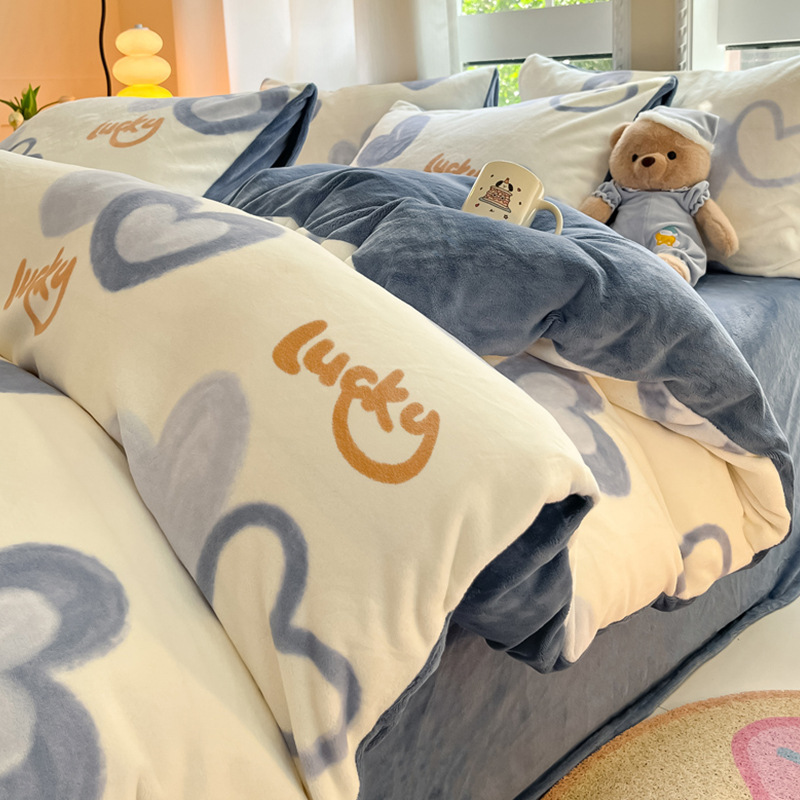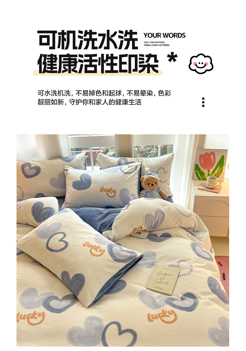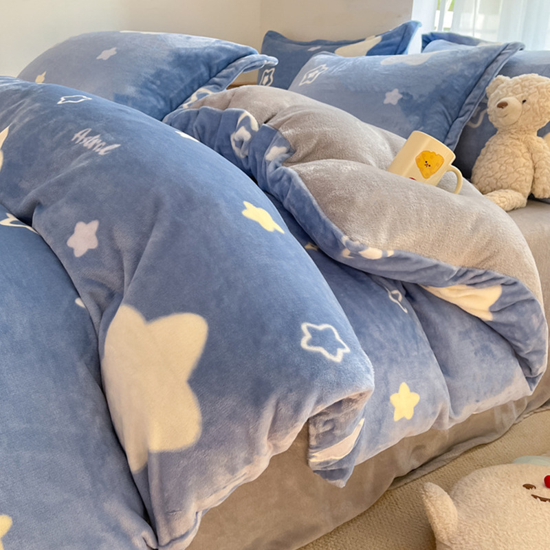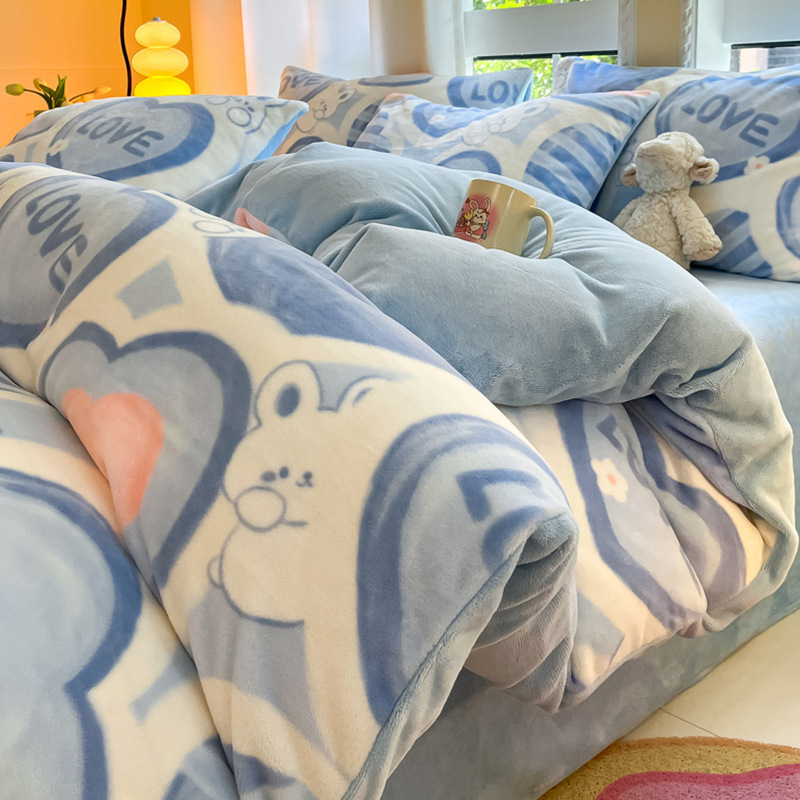 冬季加厚牛奶绒床上四件套2025新款法兰珊瑚绒床单加绒被套三件套