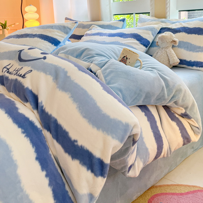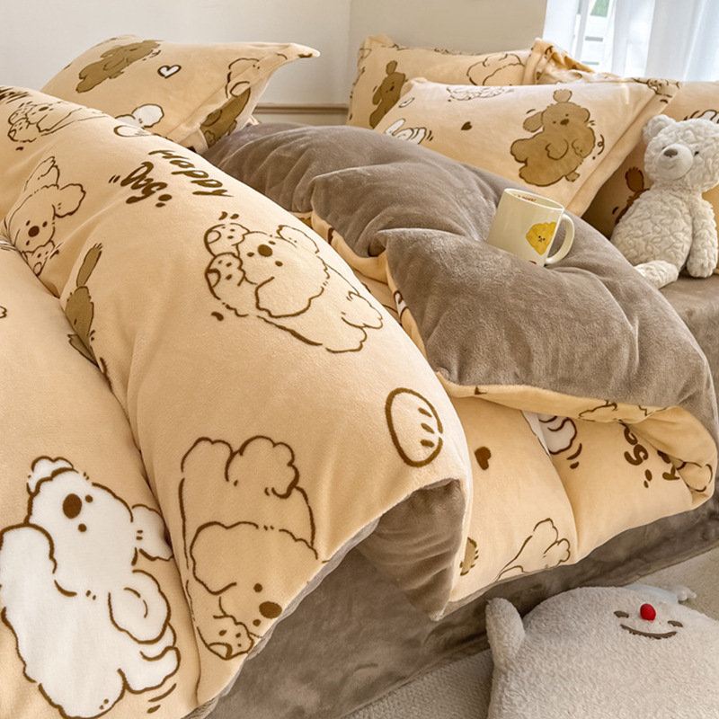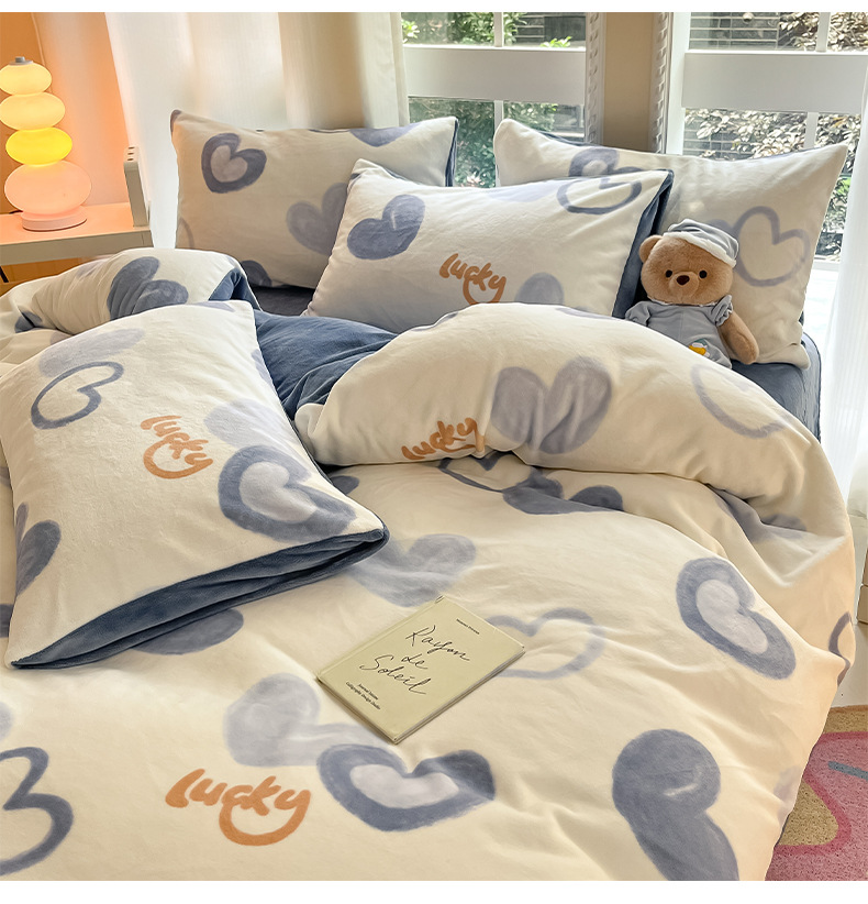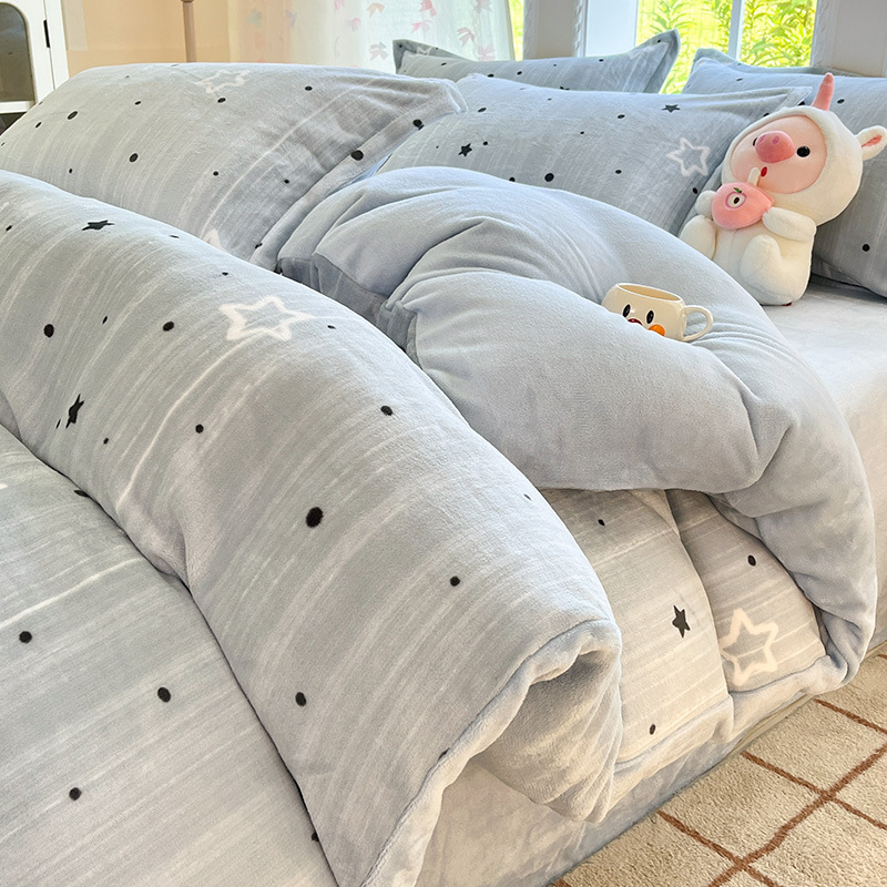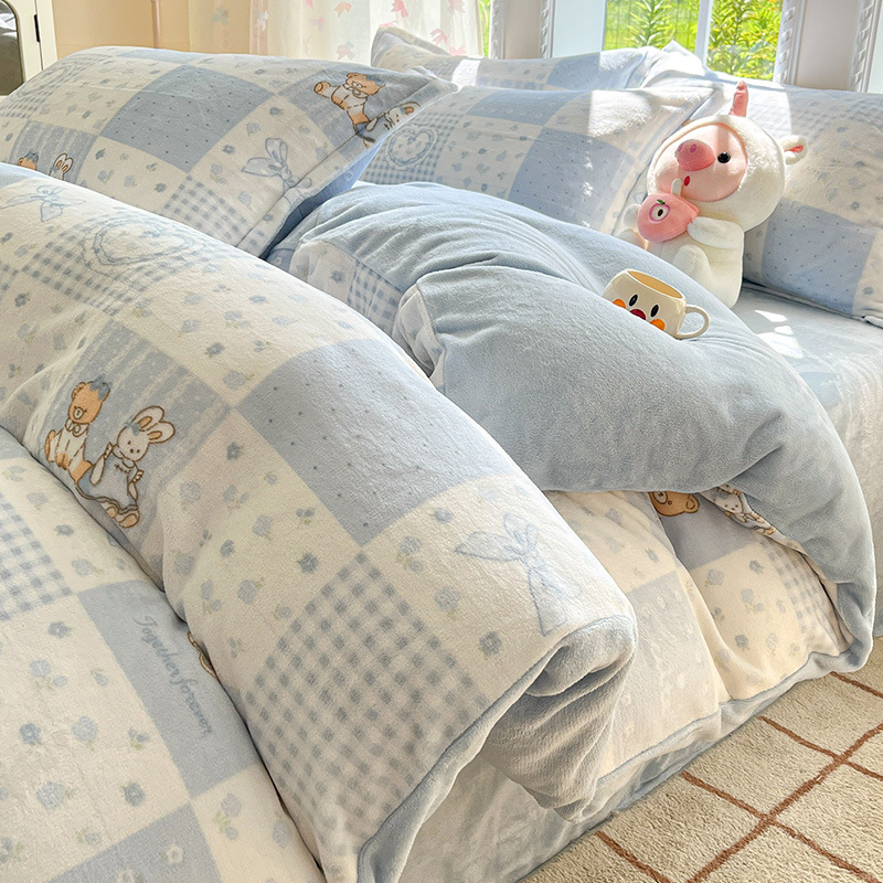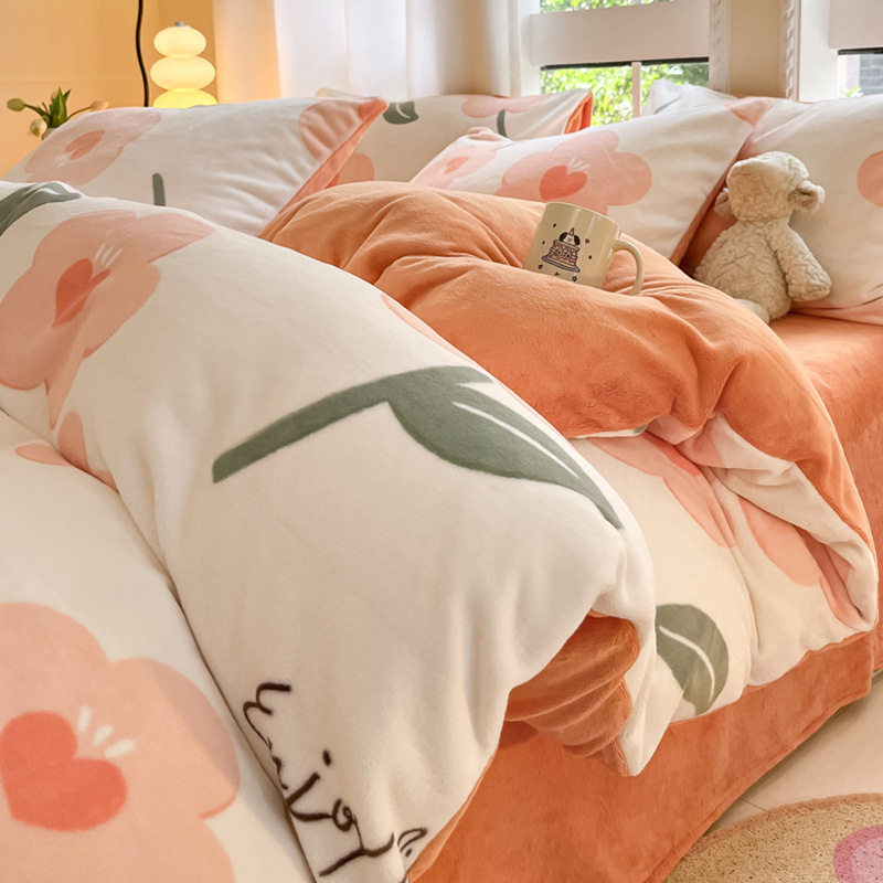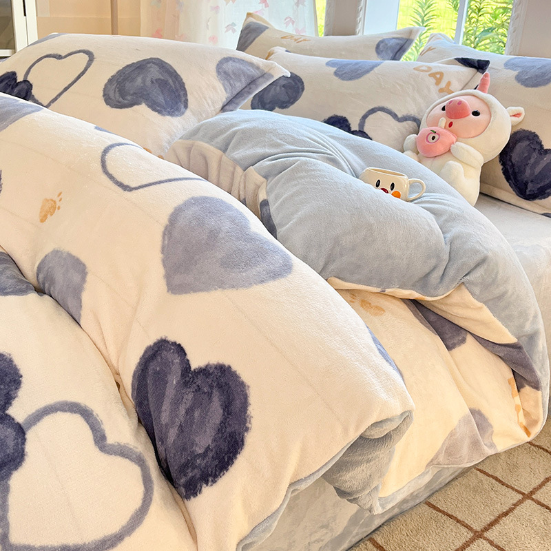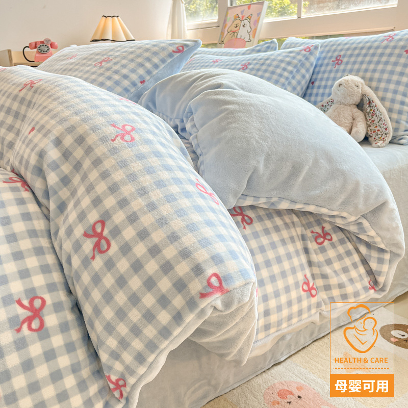 冬季加厚牛奶绒床上四件套2025新款法兰珊瑚绒床单加绒被套三件套