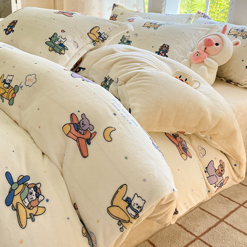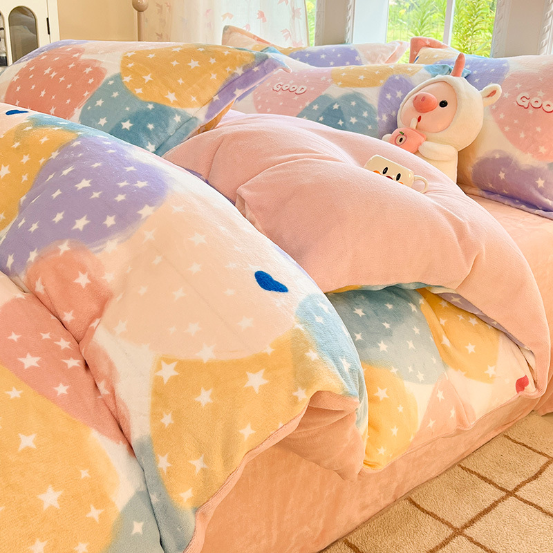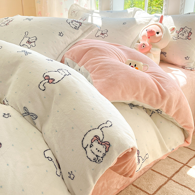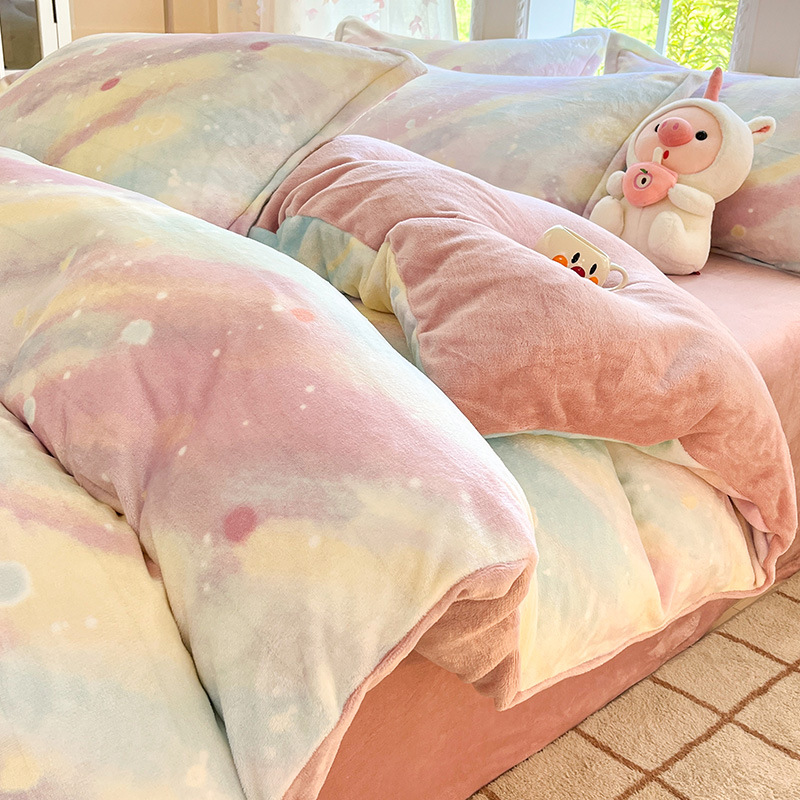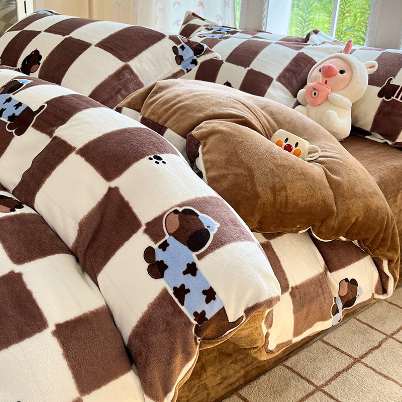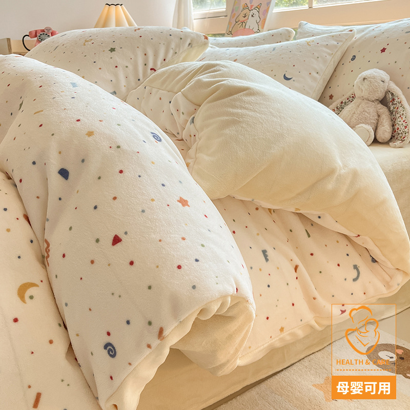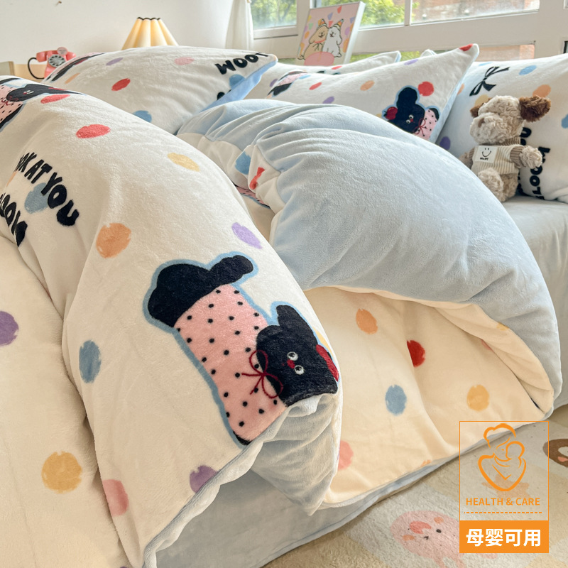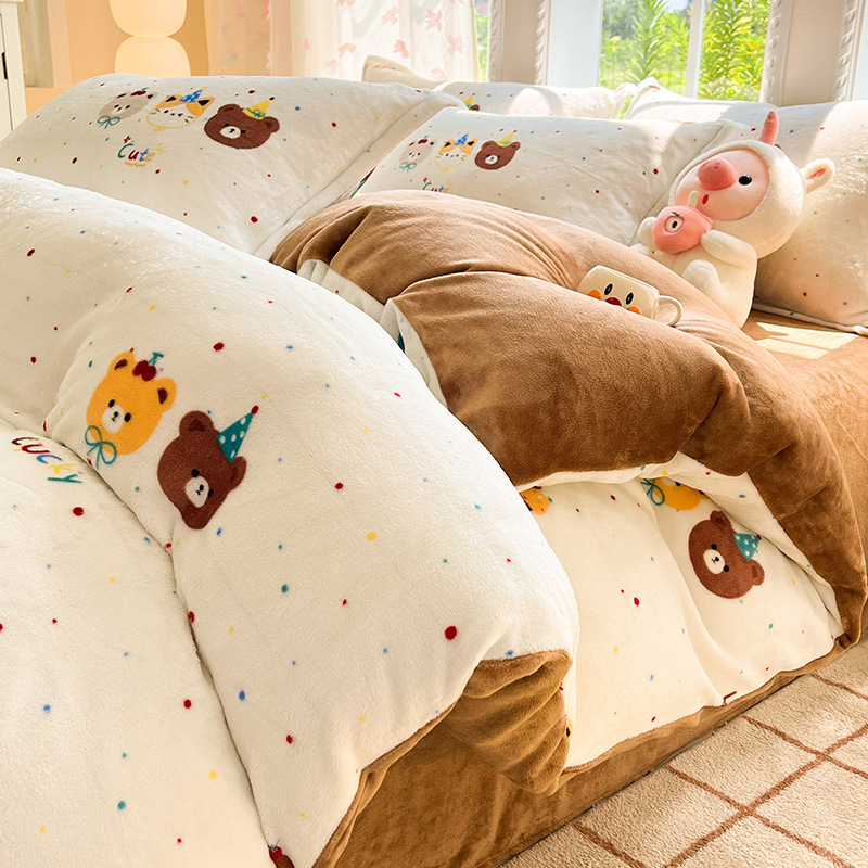 冬季加厚牛奶绒床上四件套2025新款法兰珊瑚绒床单加绒被套三件套