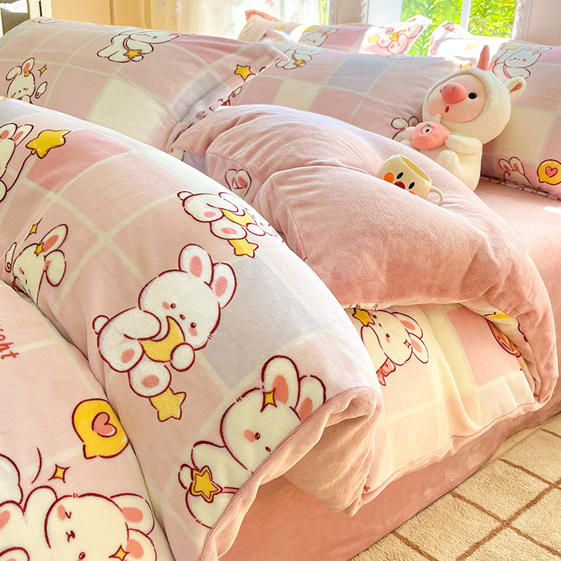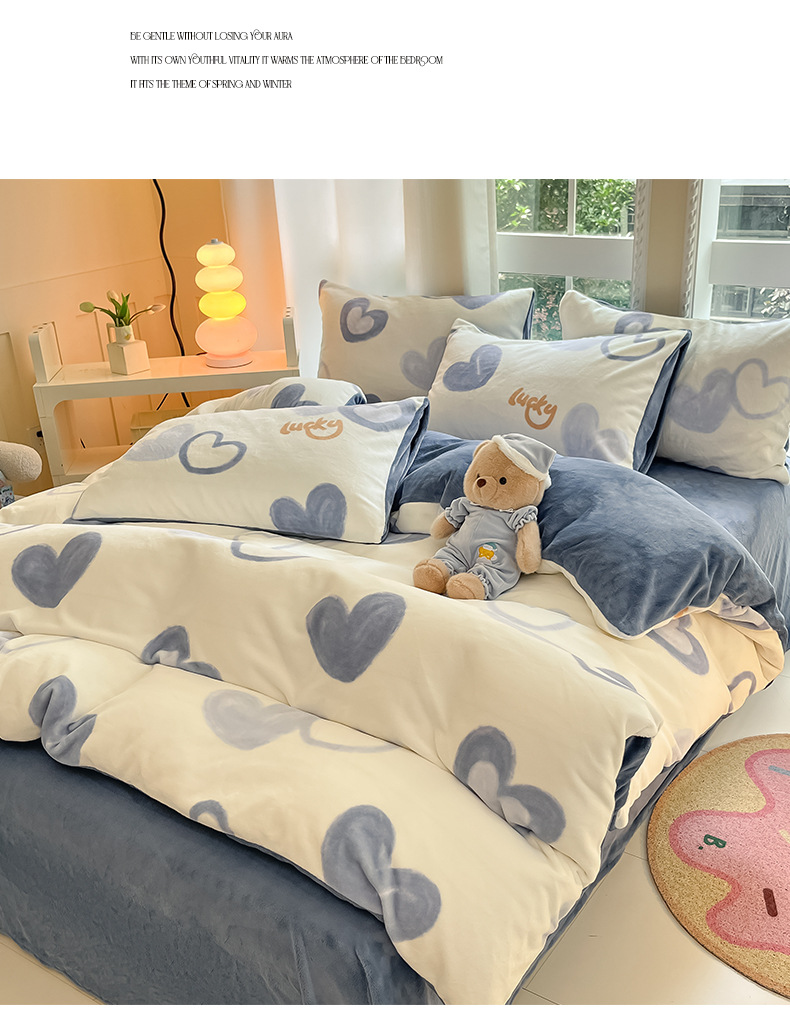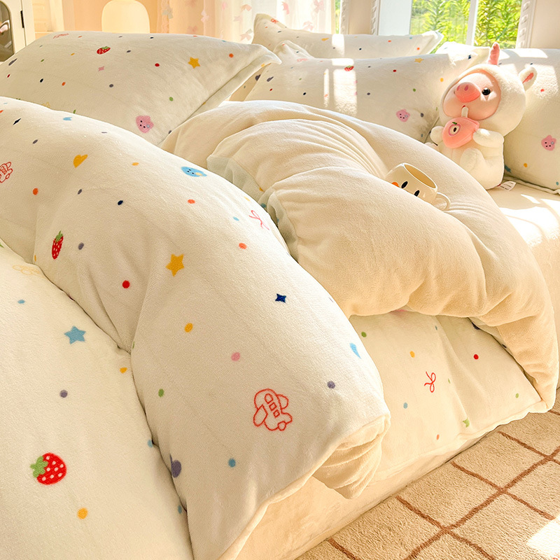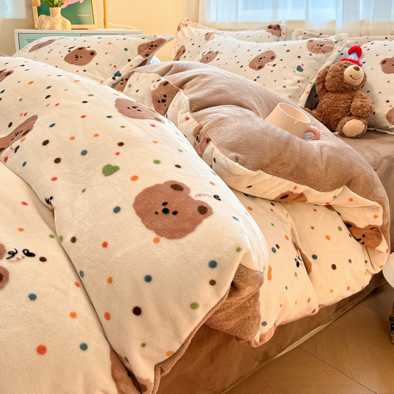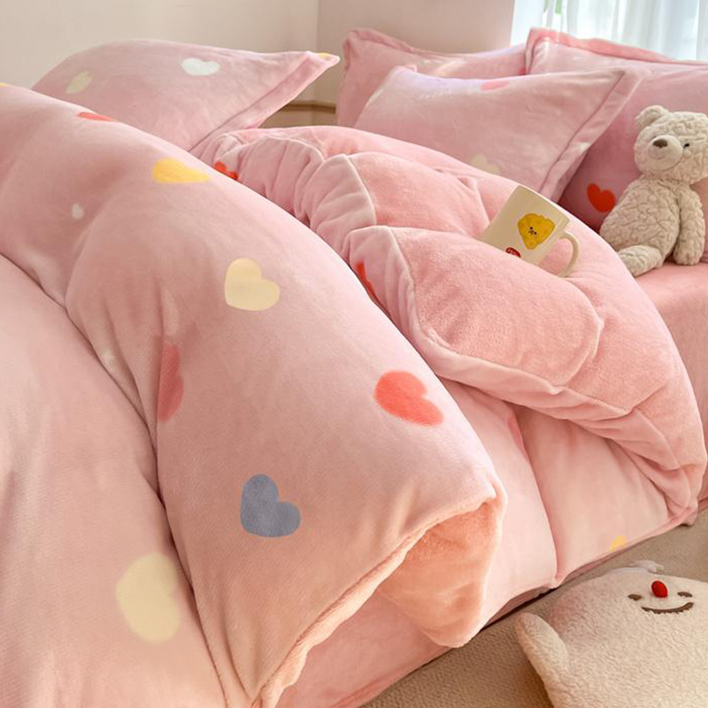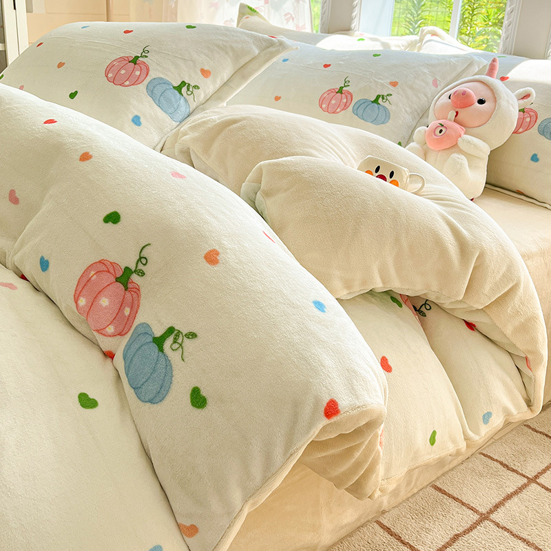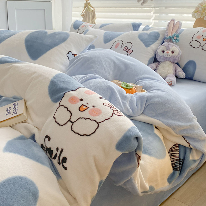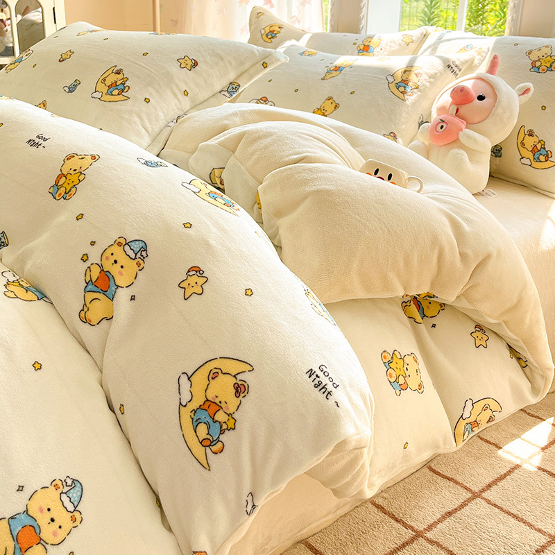 冬季加厚牛奶绒床上四件套2025新款法兰珊瑚绒床单加绒被套三件套