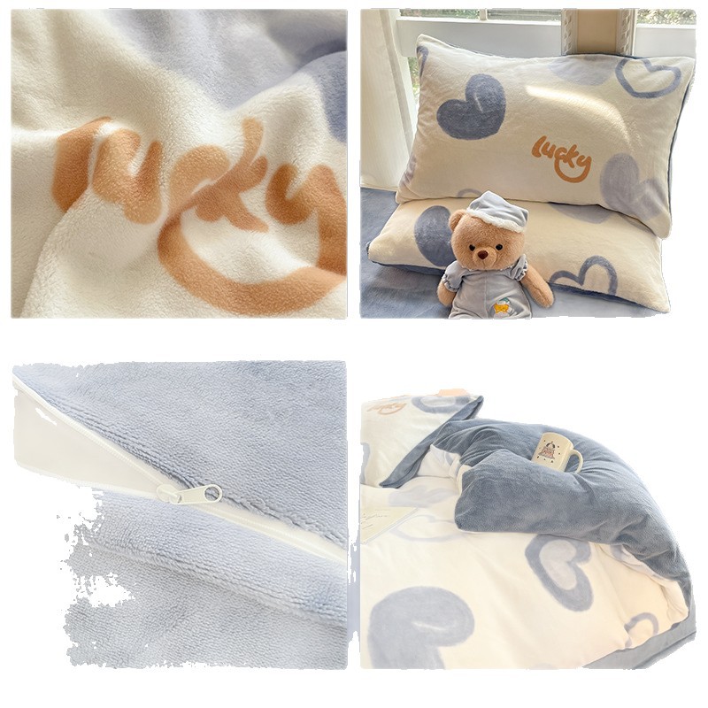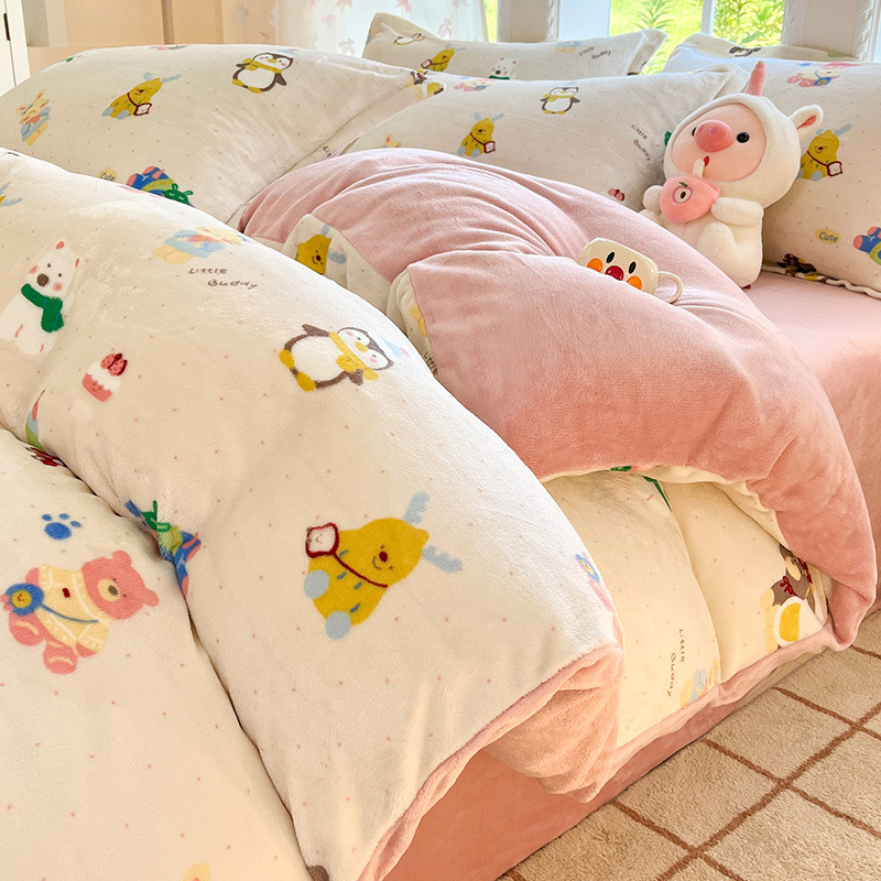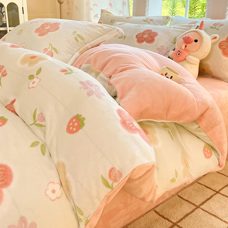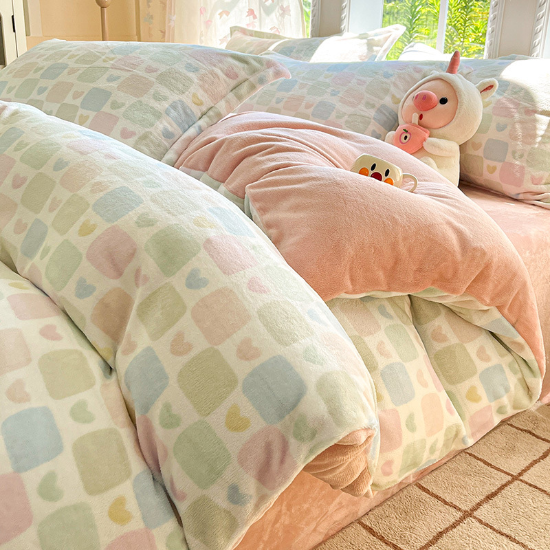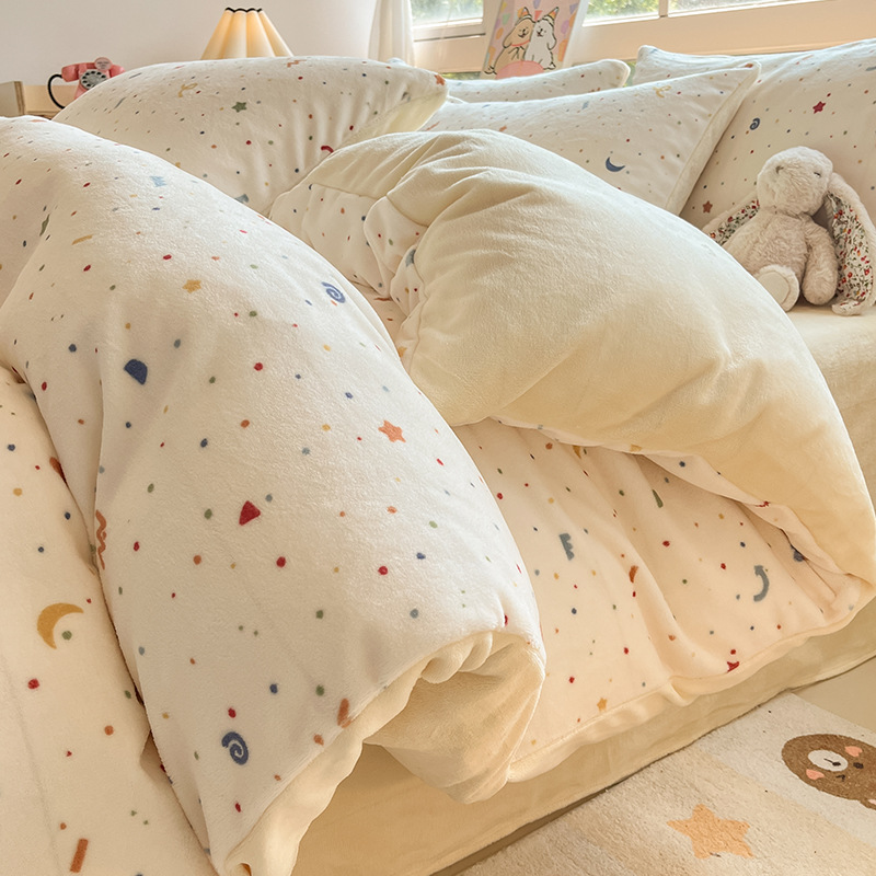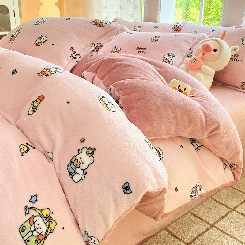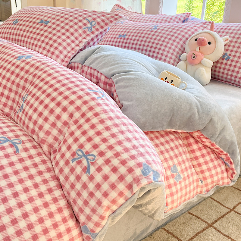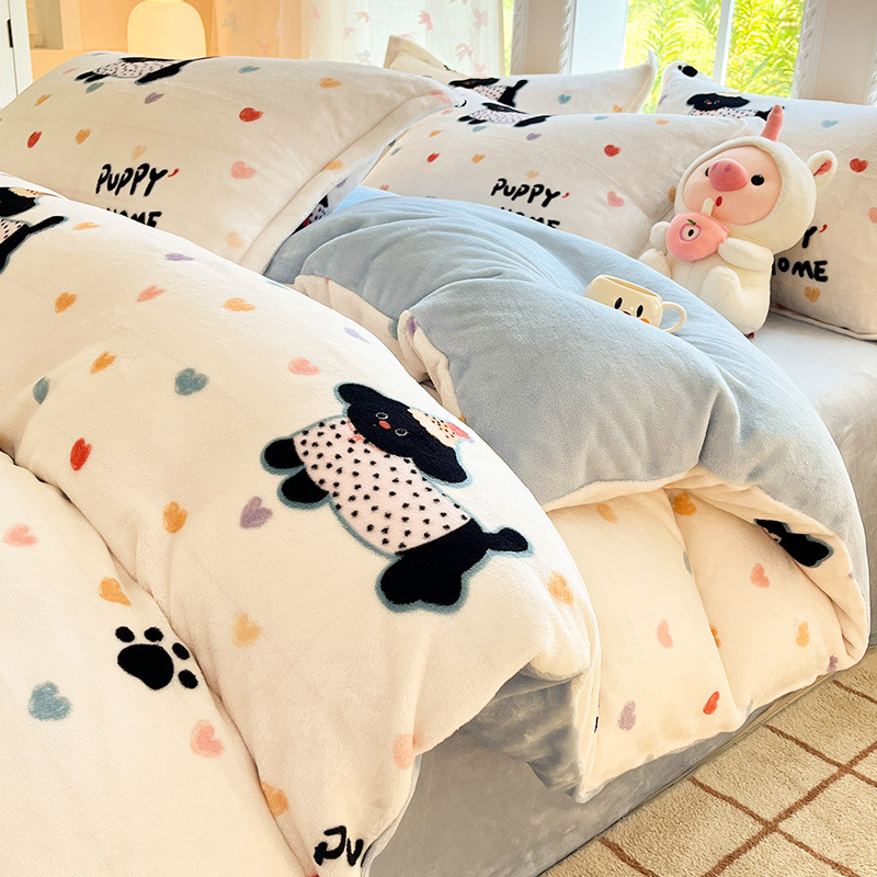 冬季加厚牛奶绒床上四件套2025新款法兰珊瑚绒床单加绒被套三件套