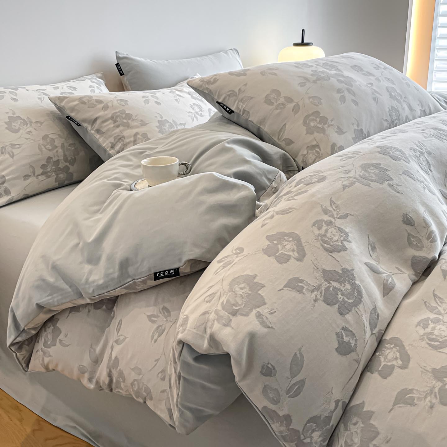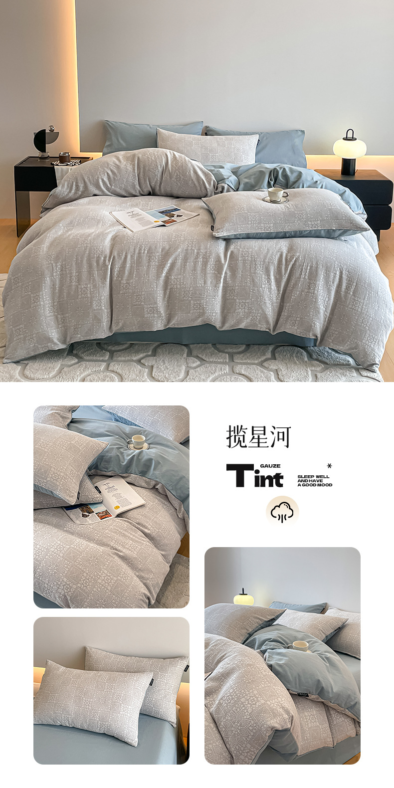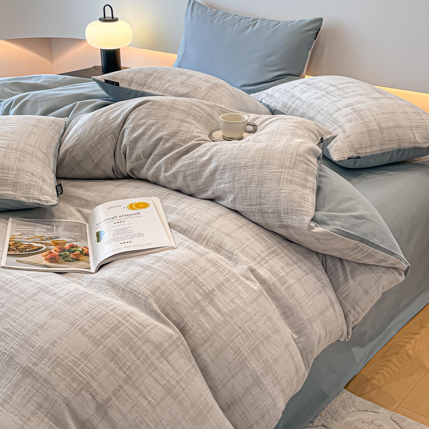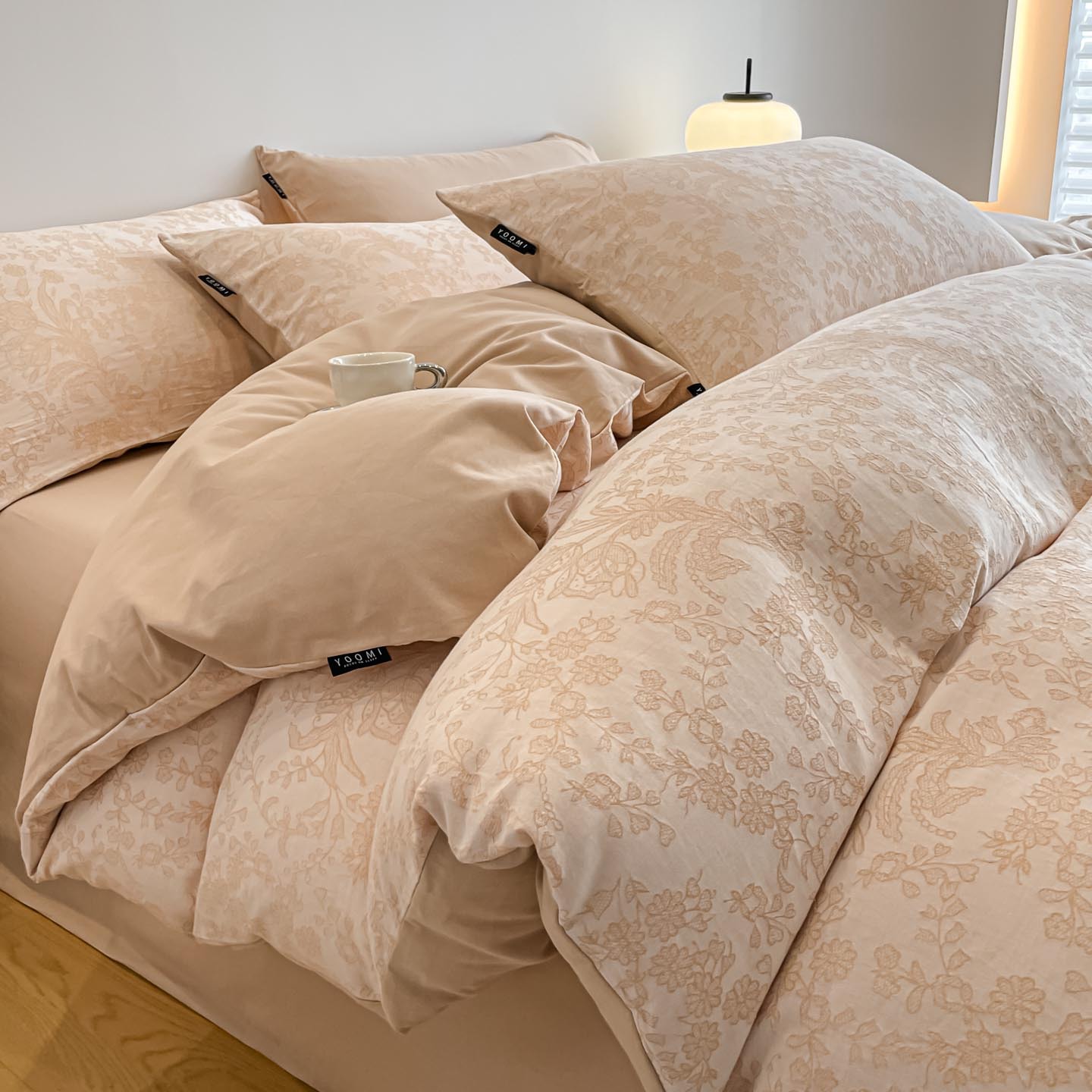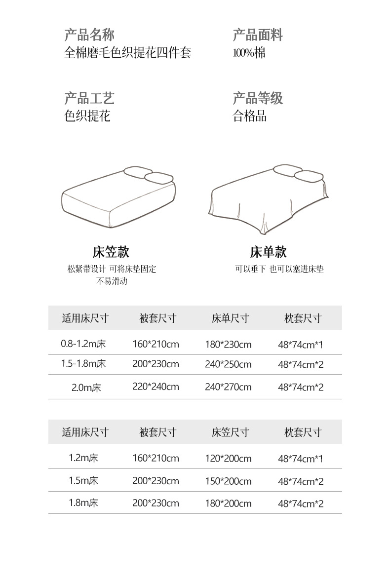 100%棉A类母婴级全棉磨毛四件套水洗色织提花纯棉被套床单床笠款