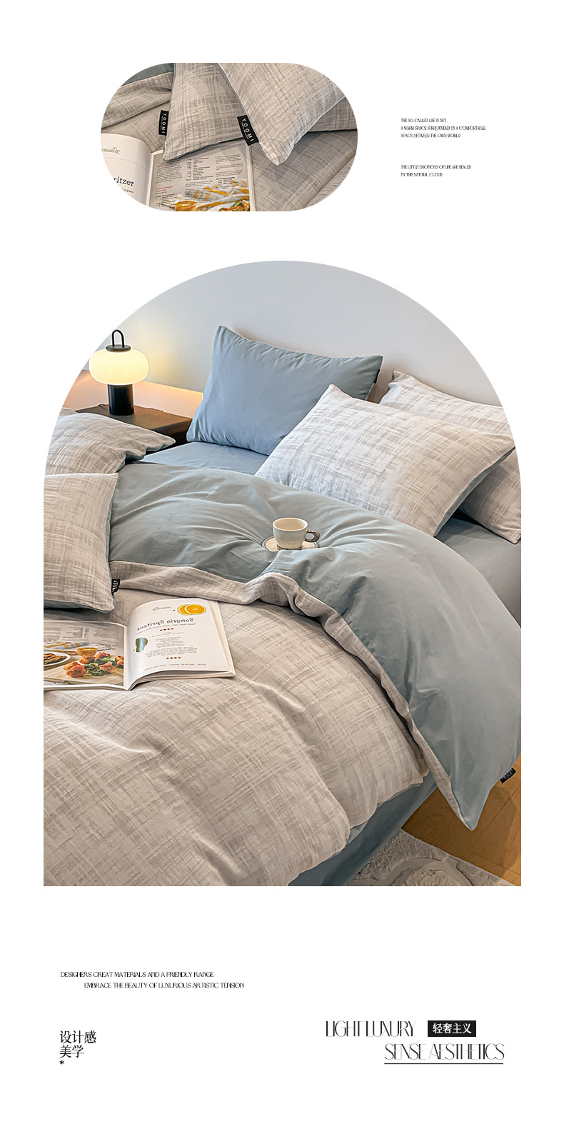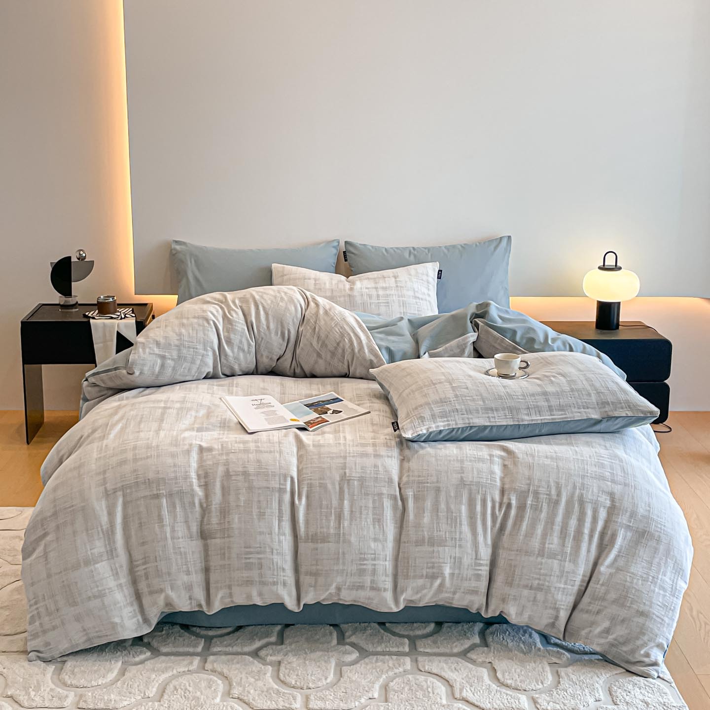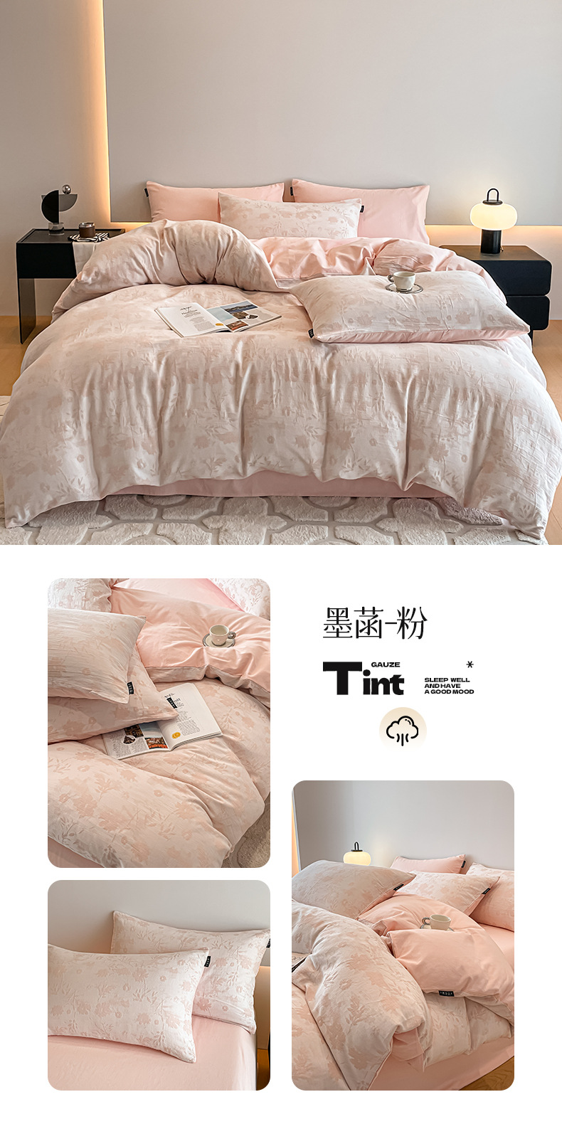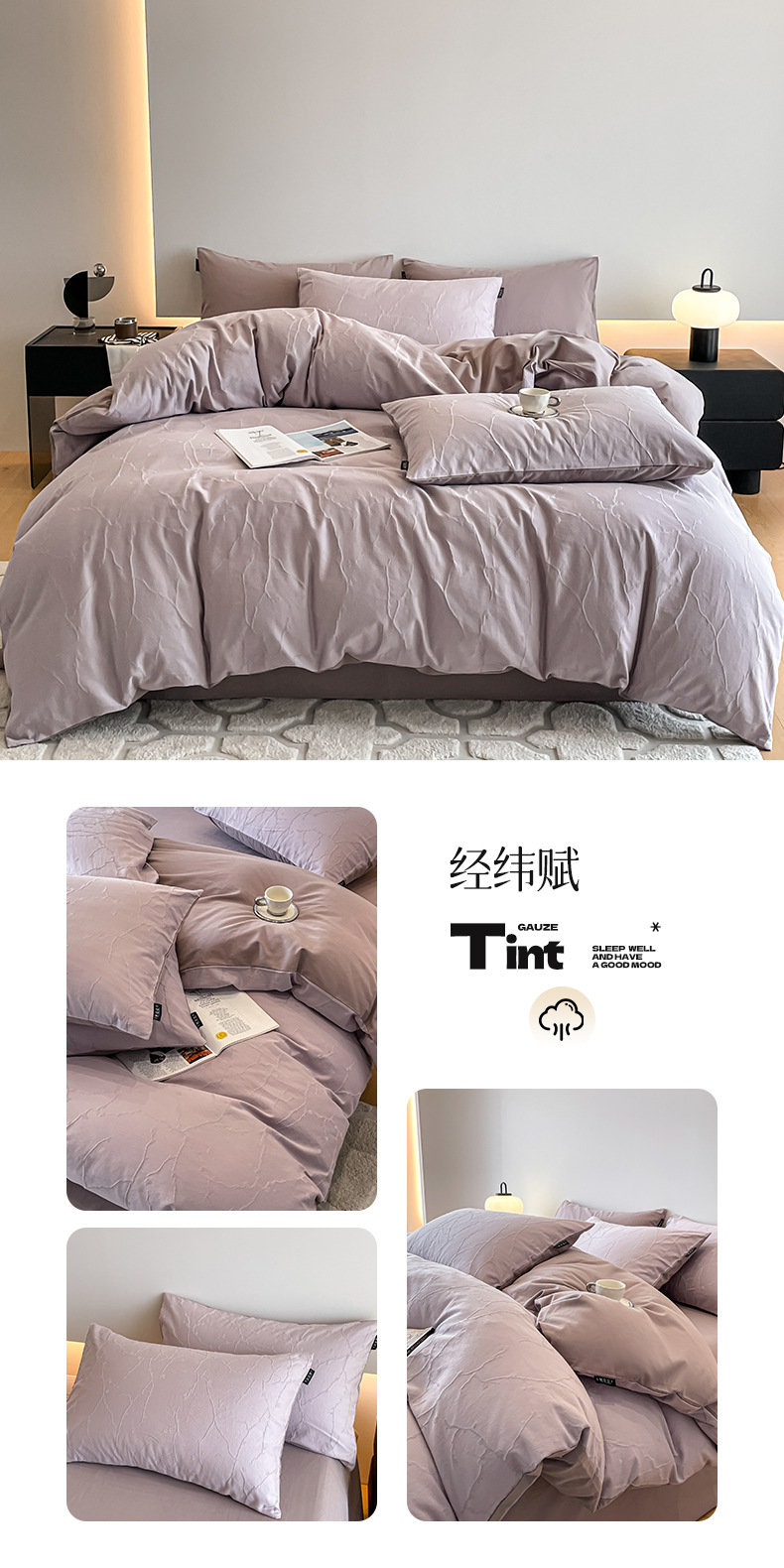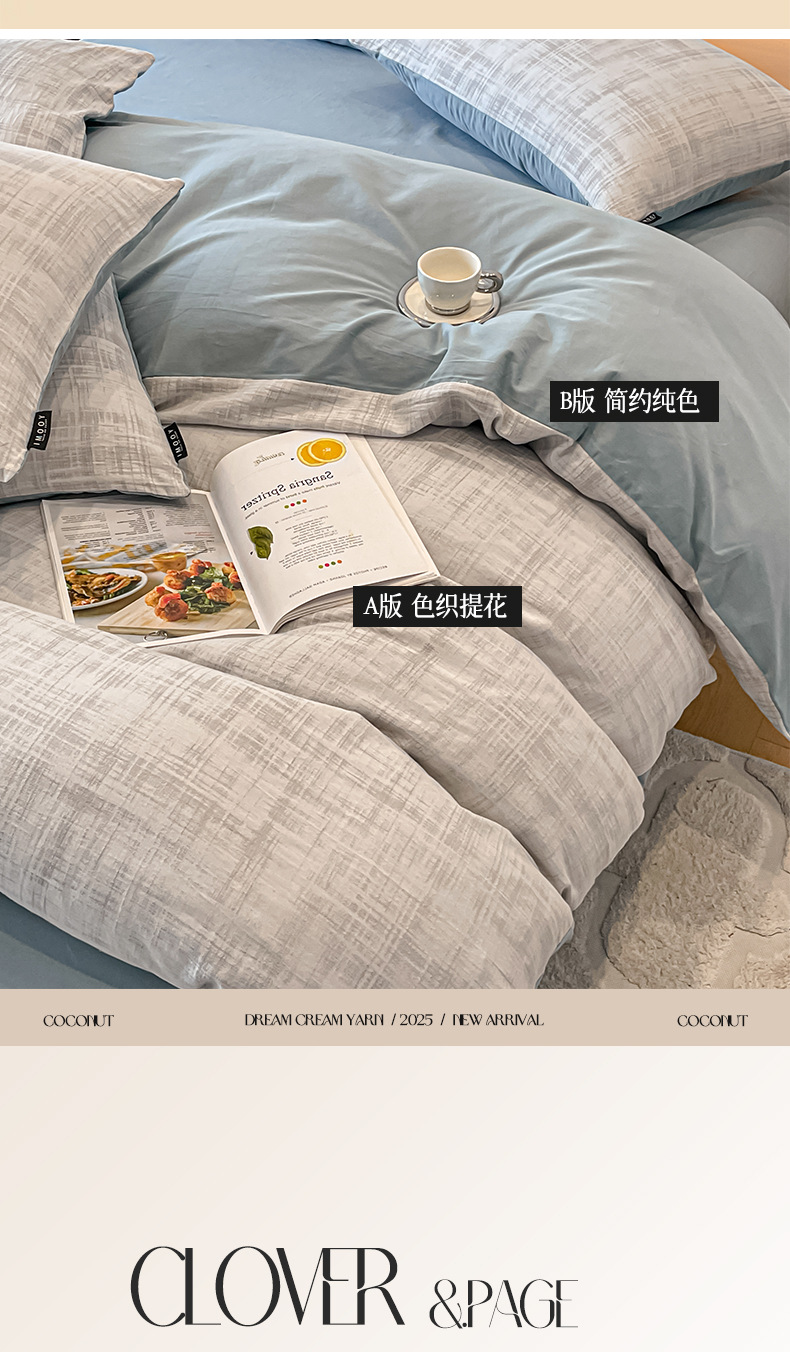 100%棉A类母婴级全棉磨毛四件套水洗色织提花纯棉被套床单床笠款