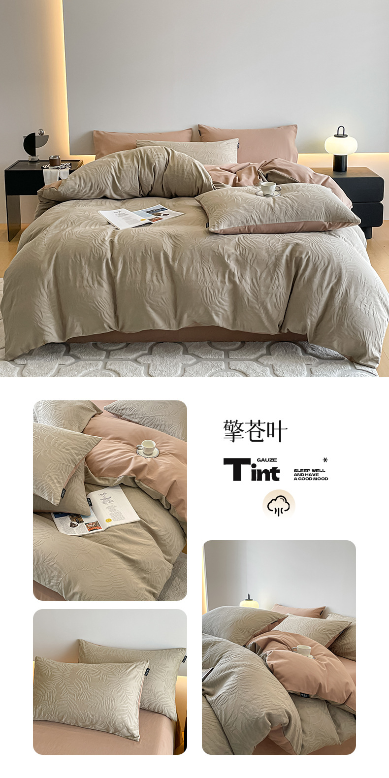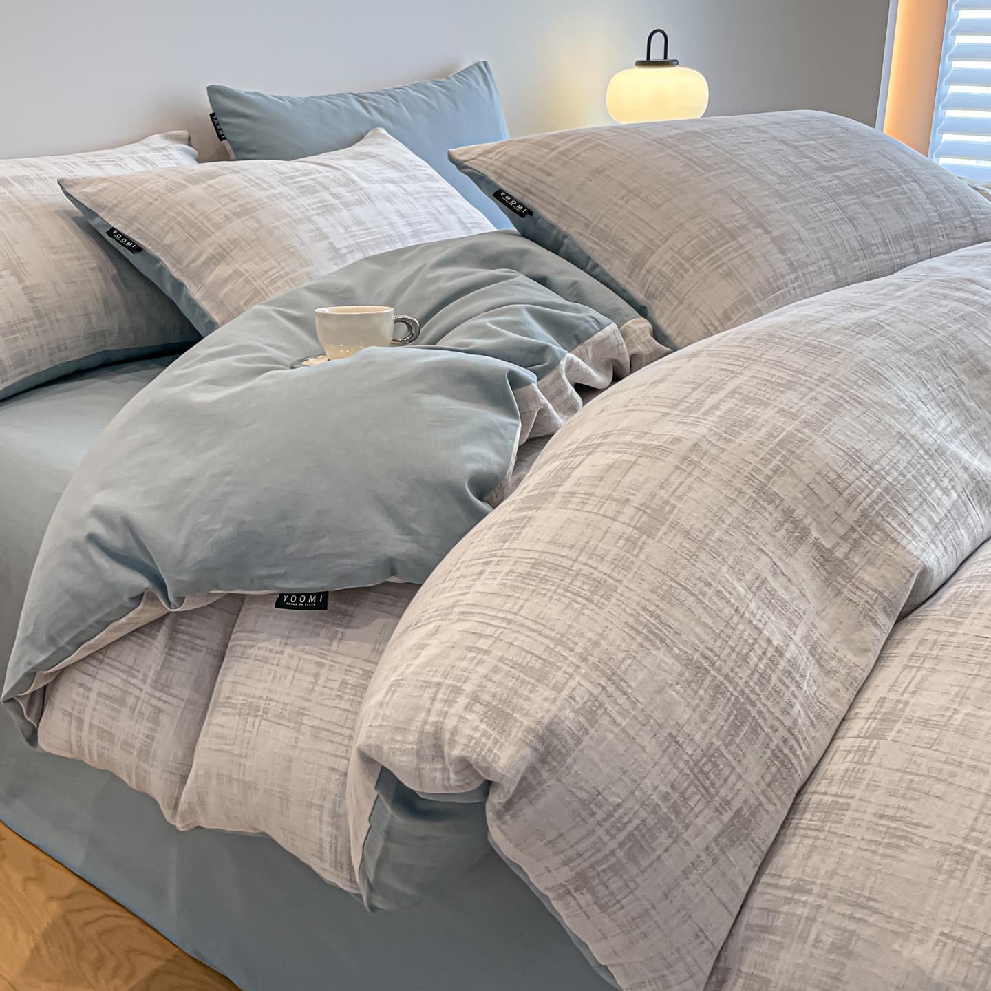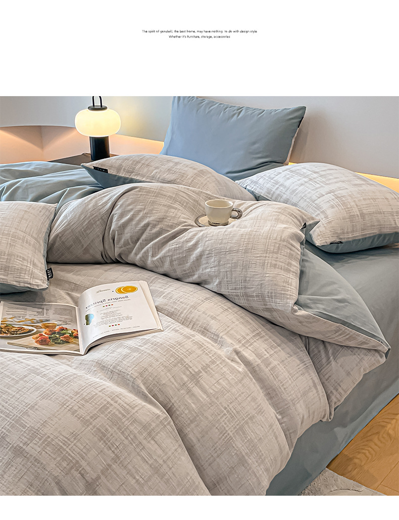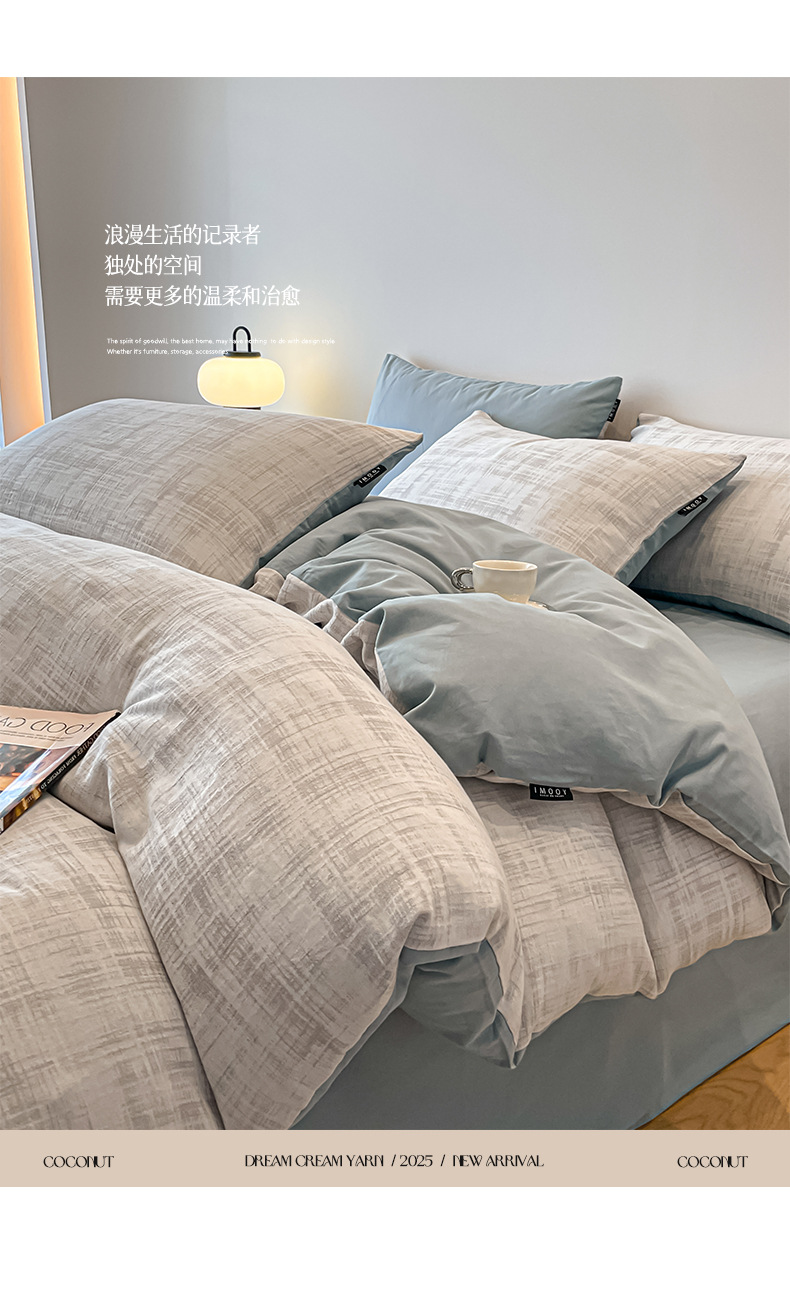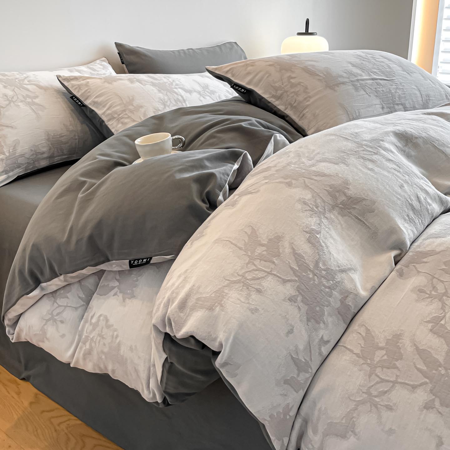 100%棉A类母婴级全棉磨毛四件套水洗色织提花纯棉被套床单床笠款