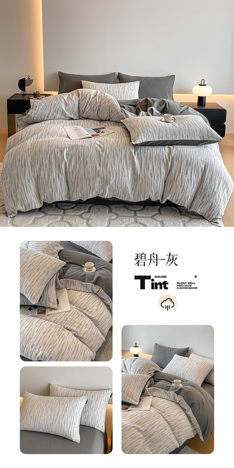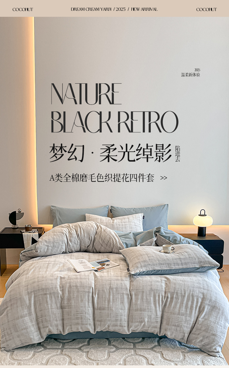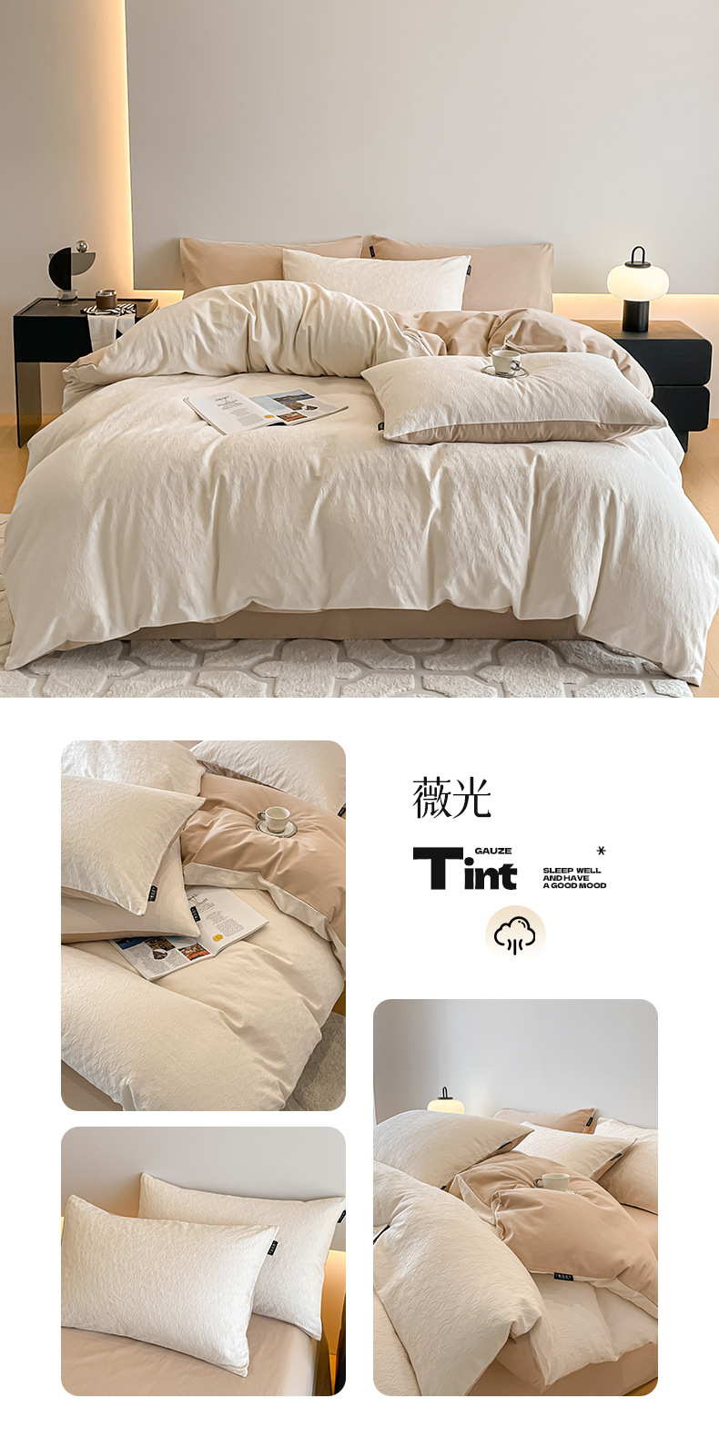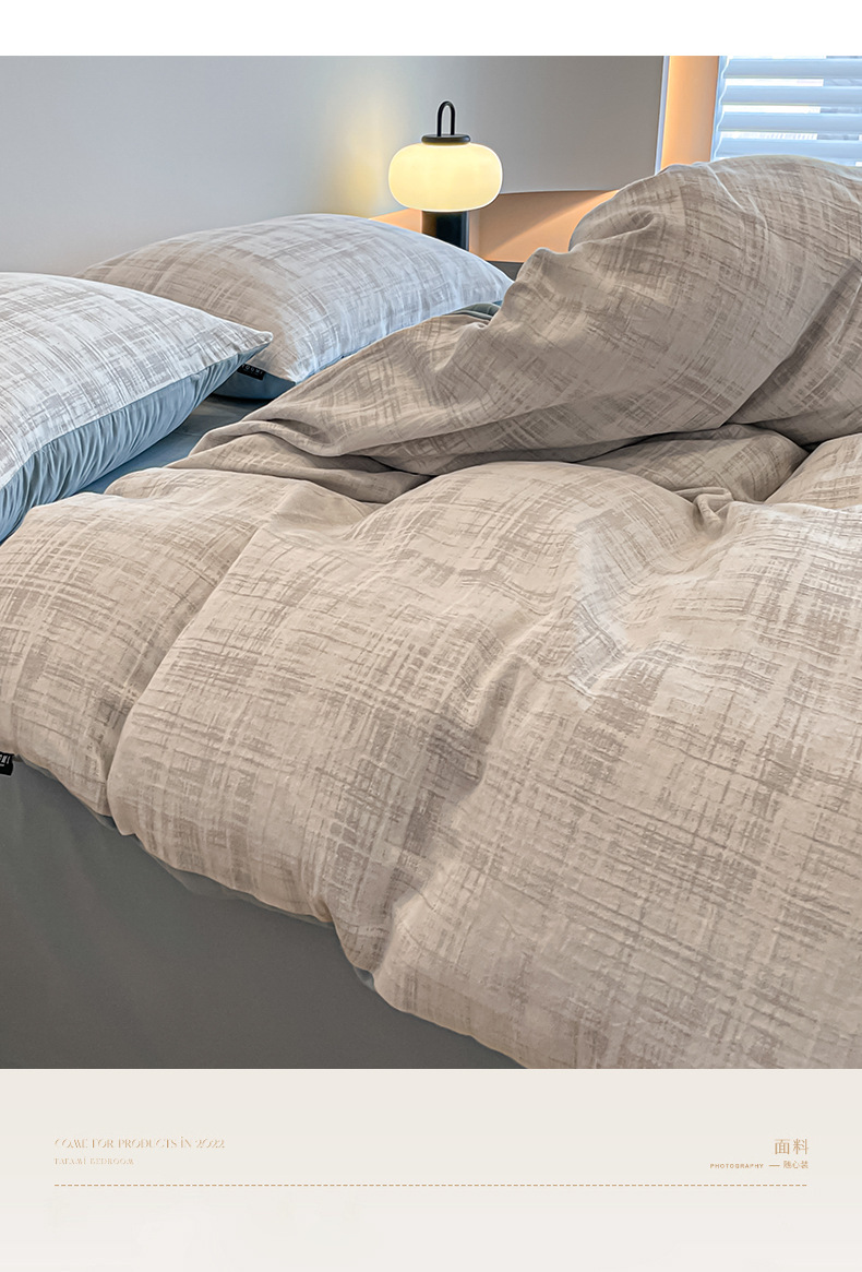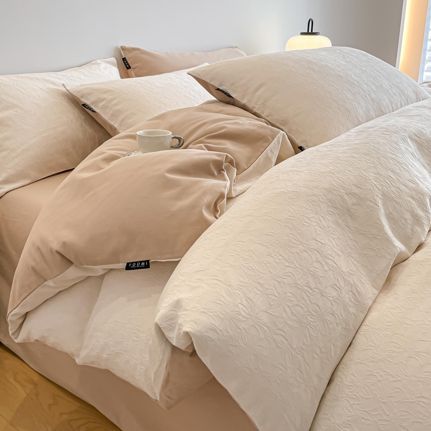 100%棉A类母婴级全棉磨毛四件套水洗色织提花纯棉被套床单床笠款