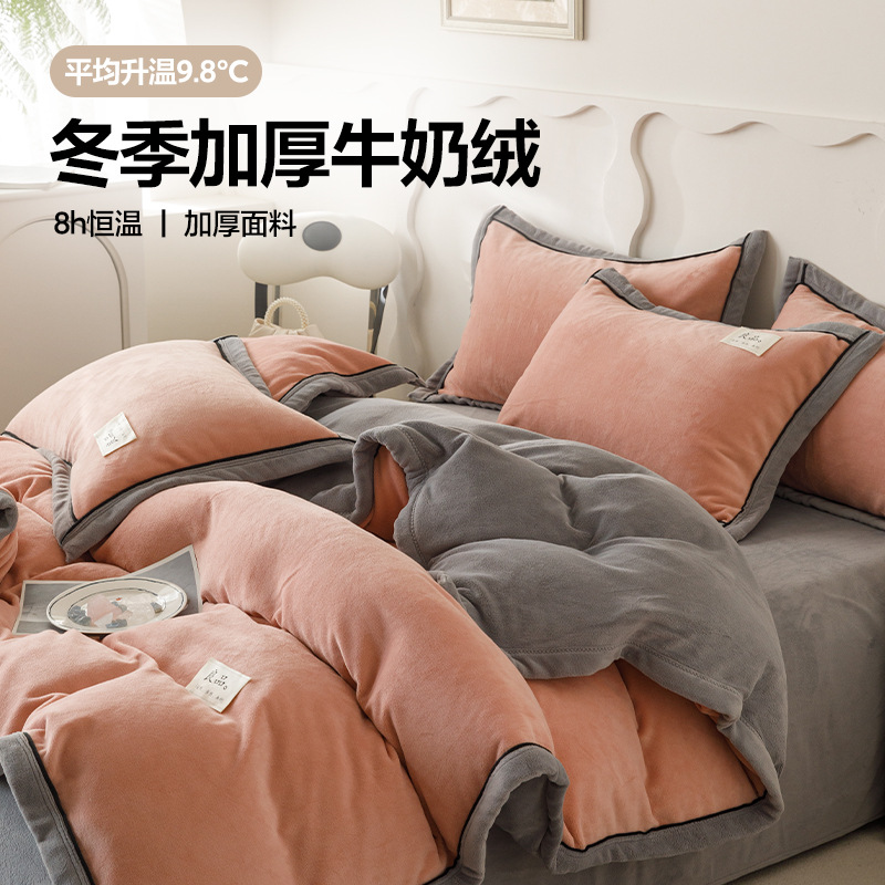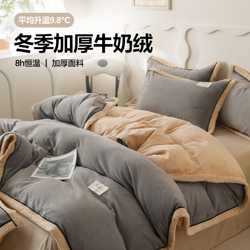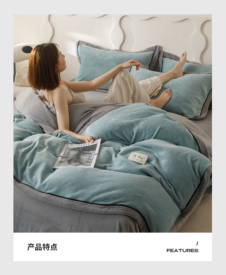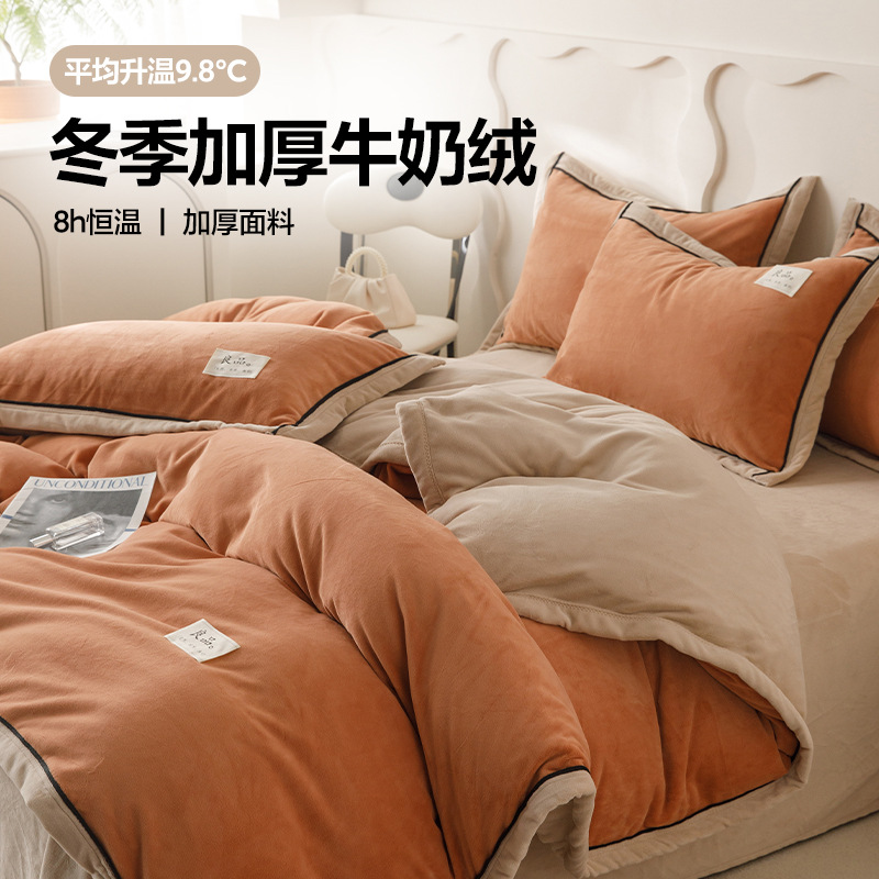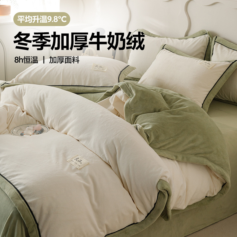A类母婴级牛奶绒四件套学生宿舍单双人款纯色