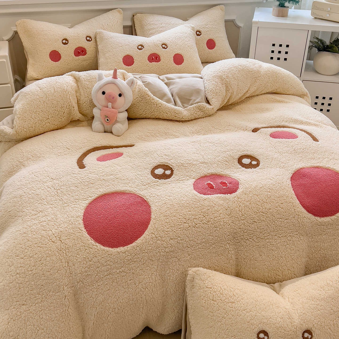 冬季羊羔绒四件套牛奶绒床上加厚珊瑚绒面床品床单被套床笠三件套
