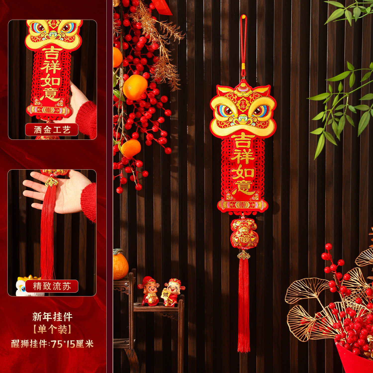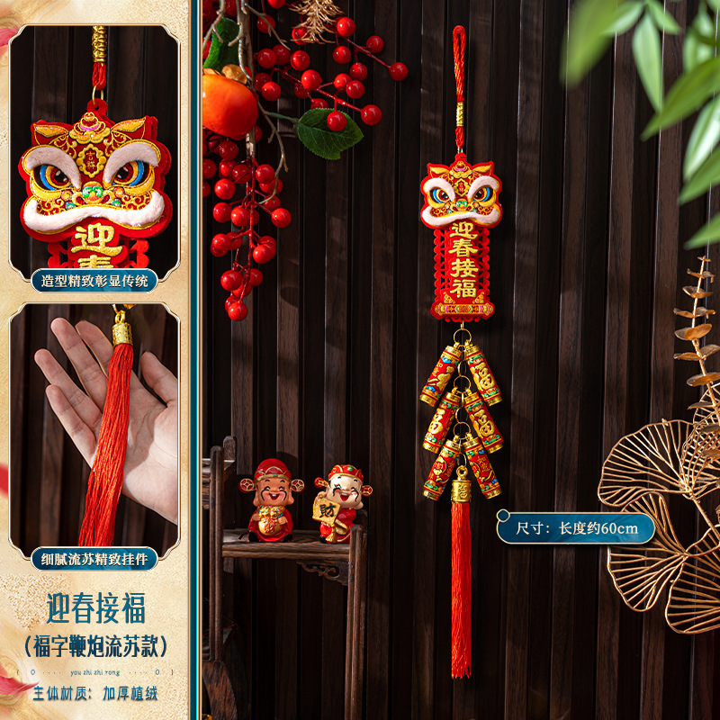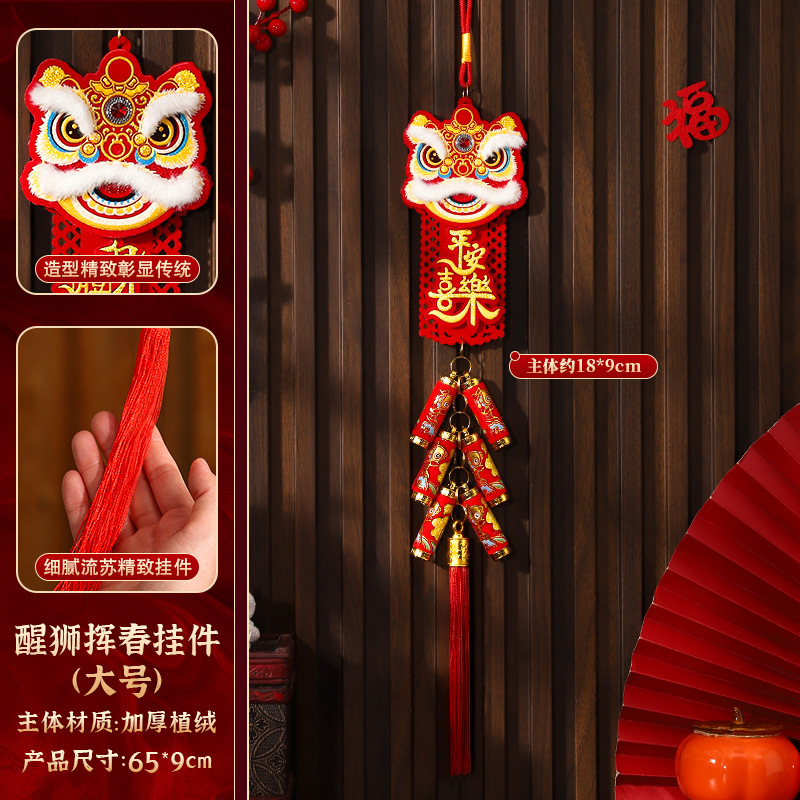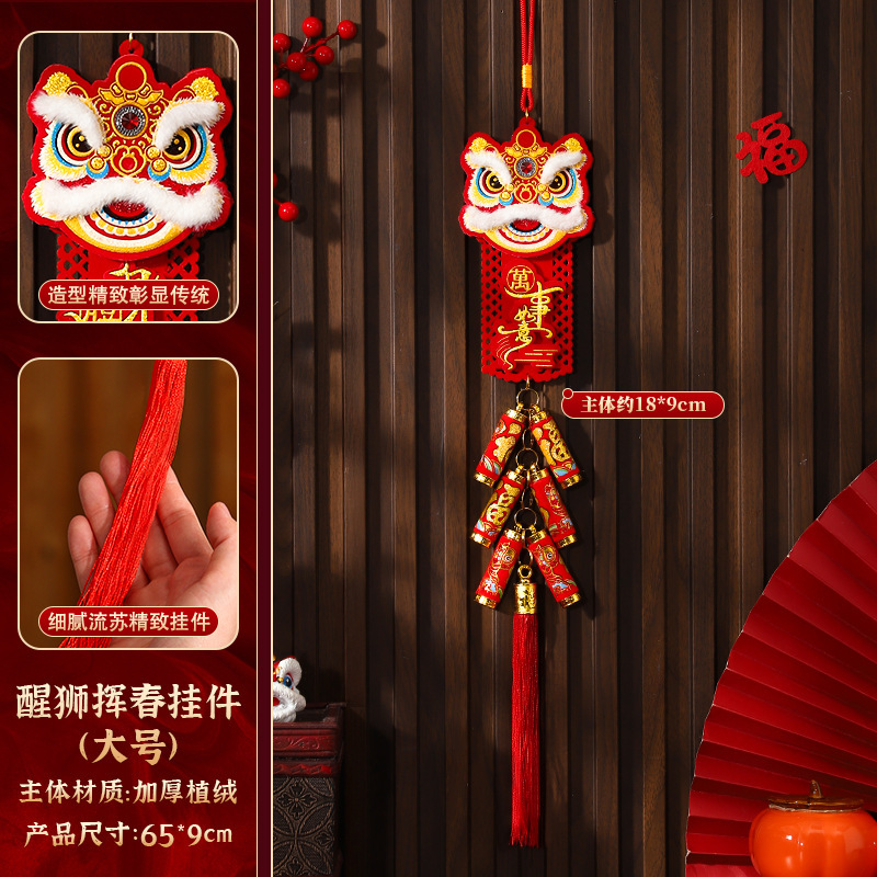 2026新年鞭炮门挂马年装饰品春节过年客厅醒狮挥春门口挂饰布置