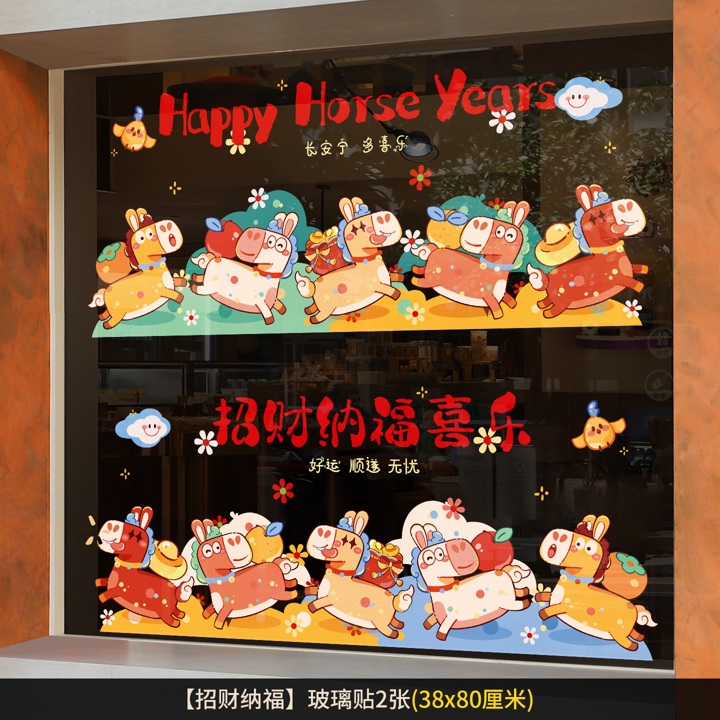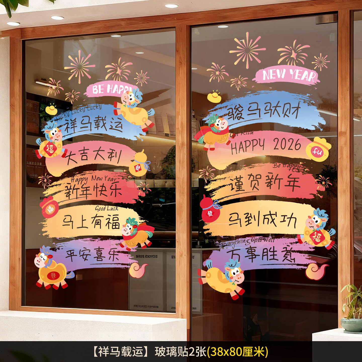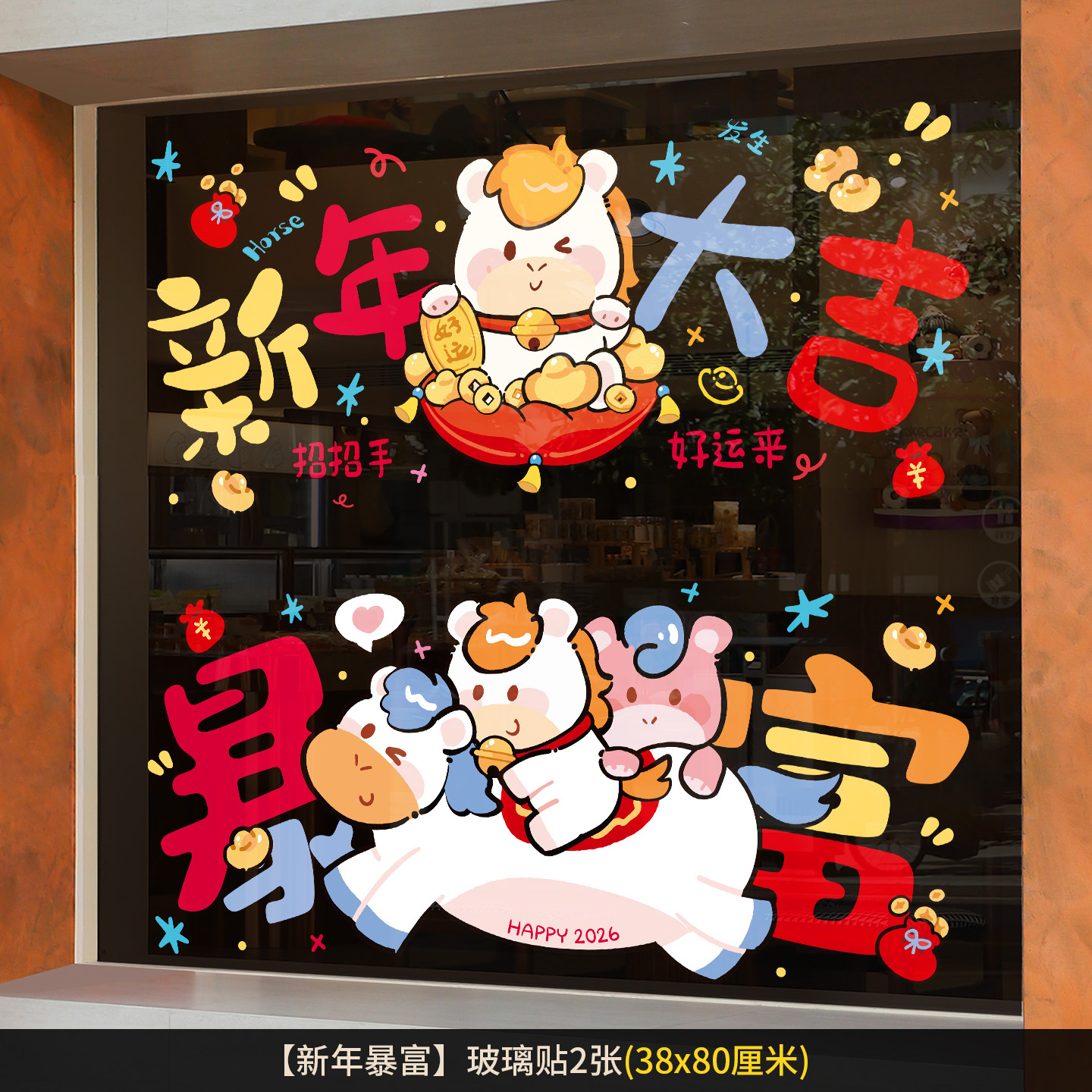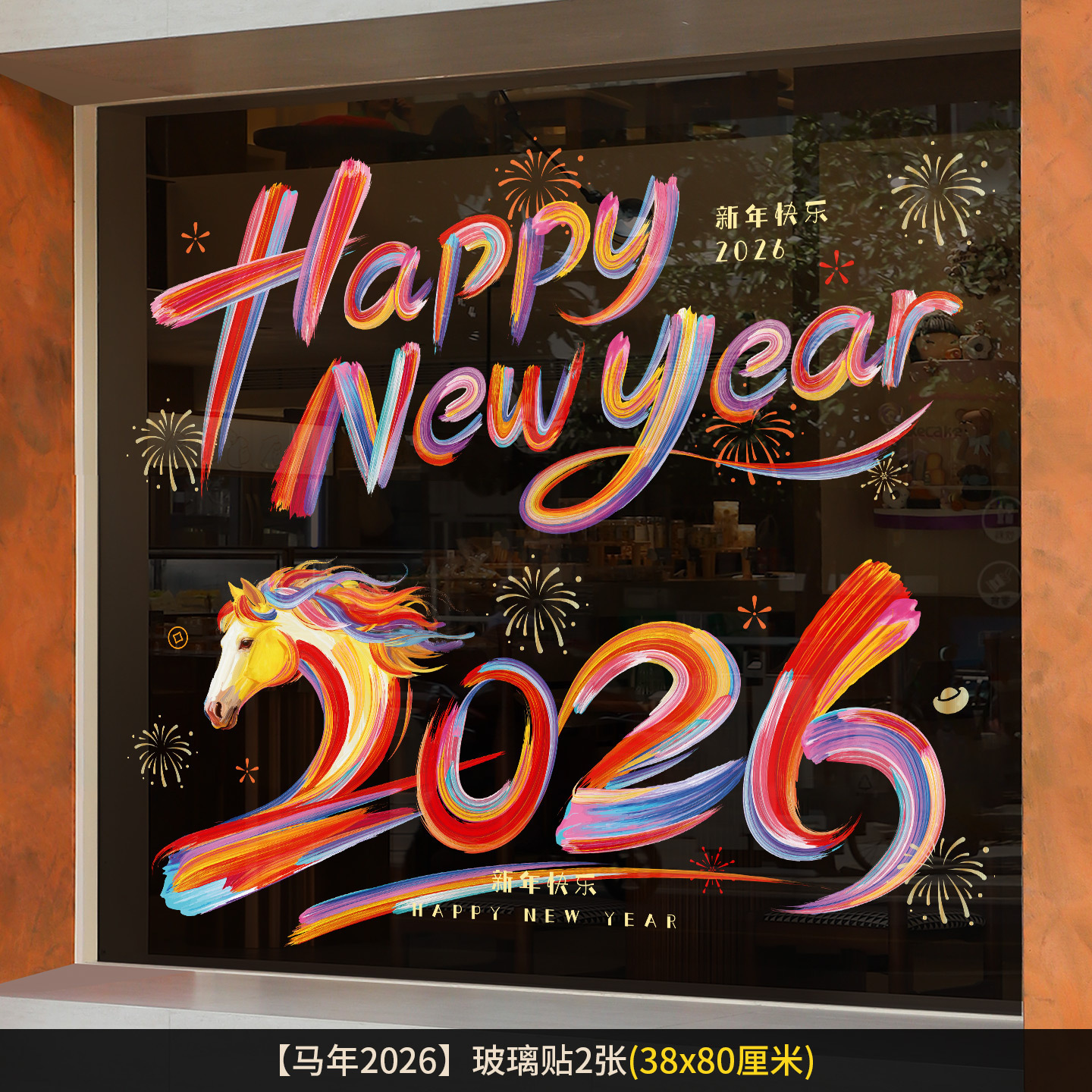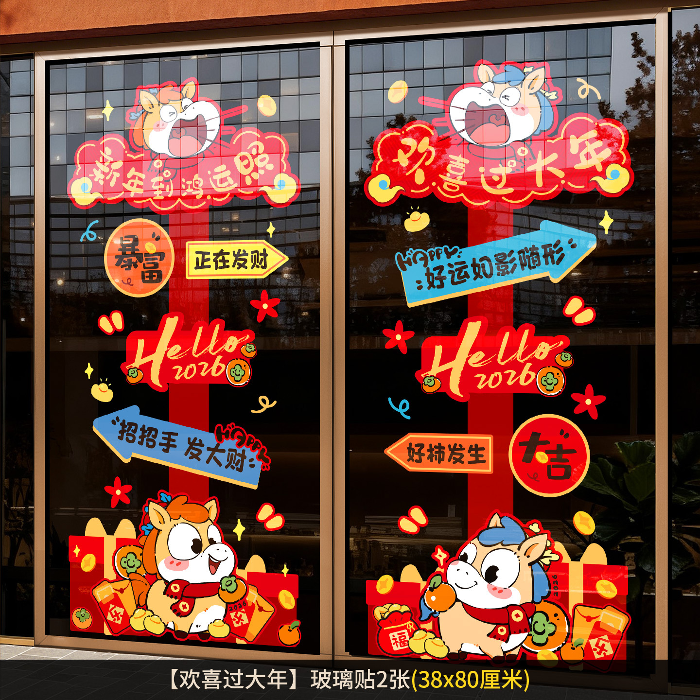 2026新年元旦玻璃贴马年窗花静电贴厨房橱窗福字对贴过年春节装饰