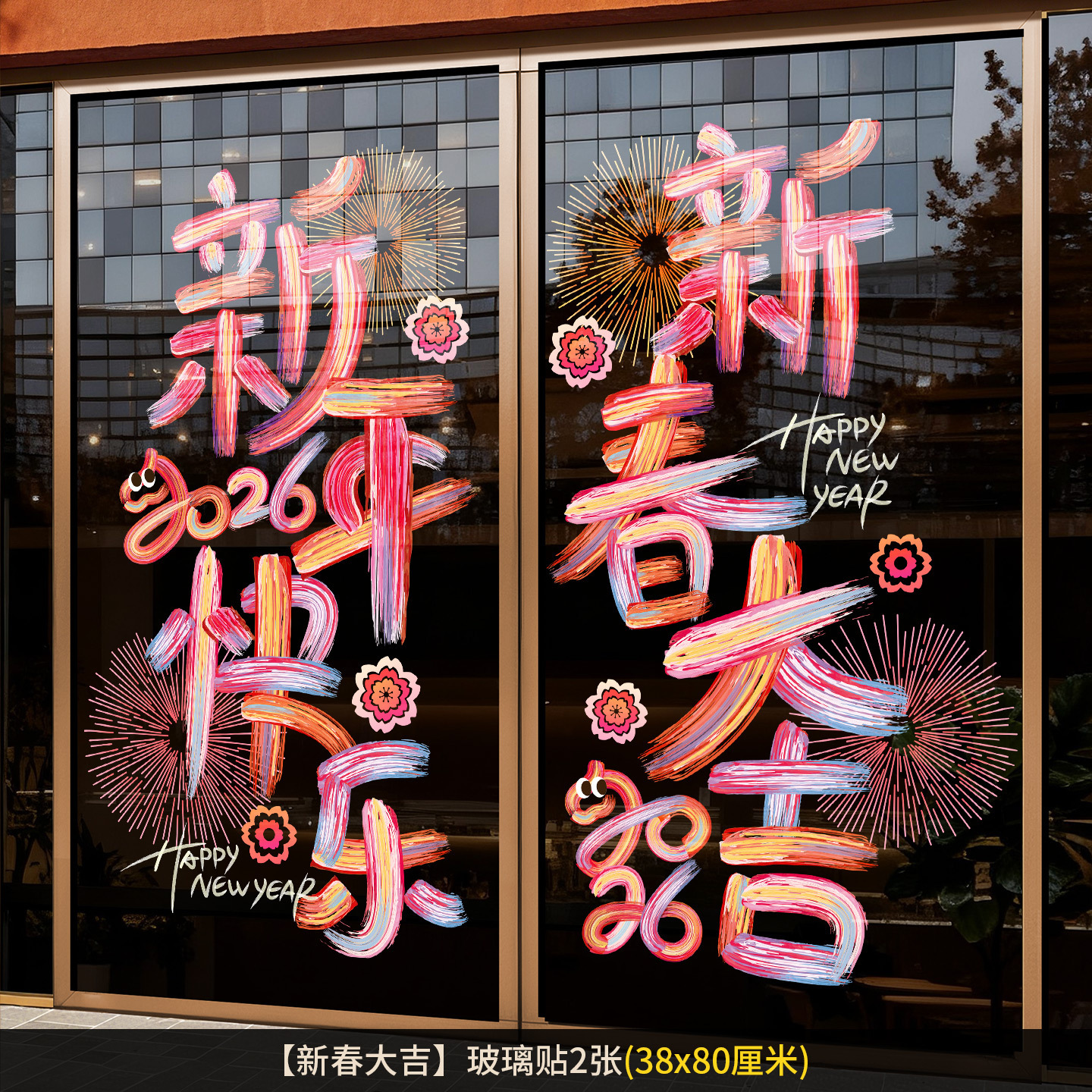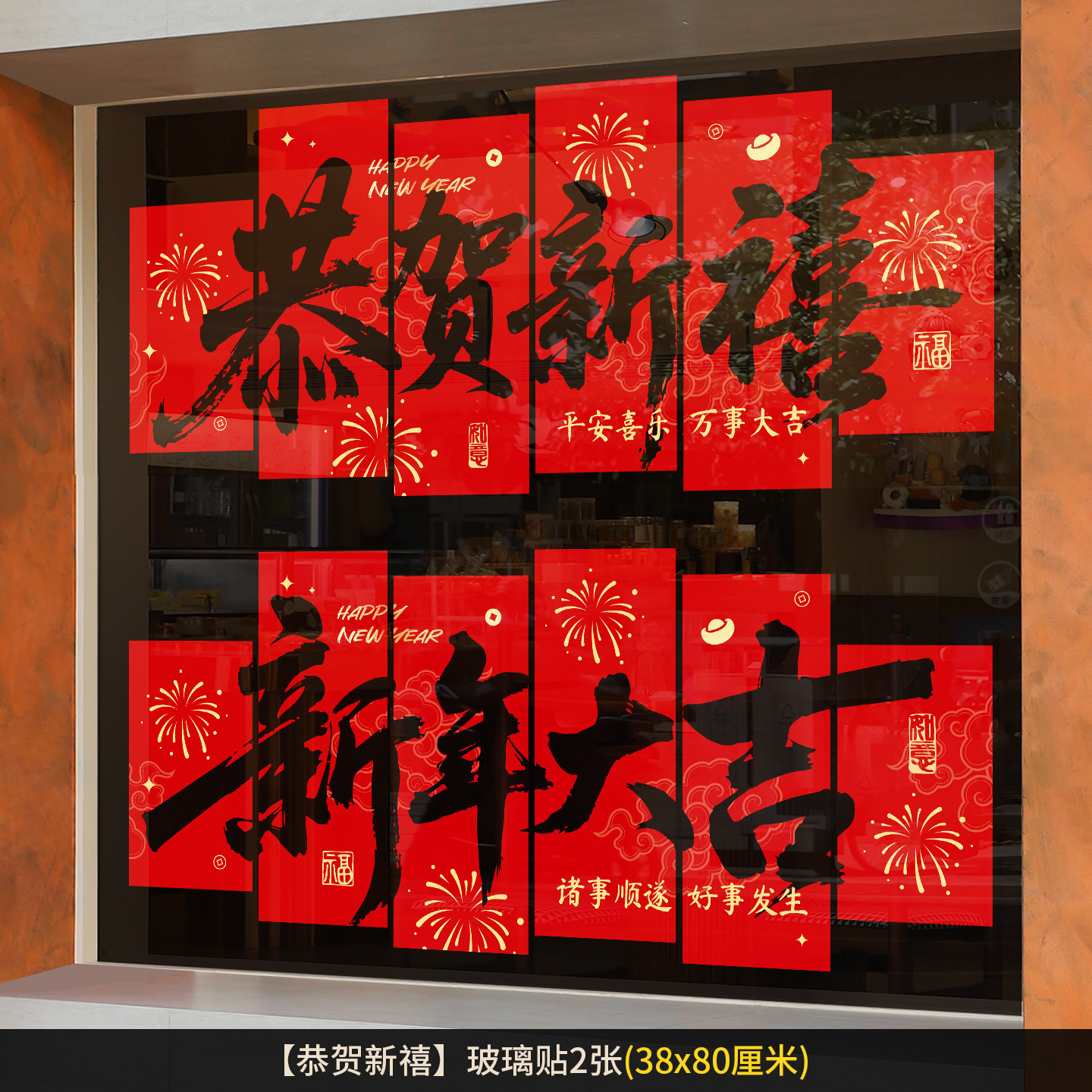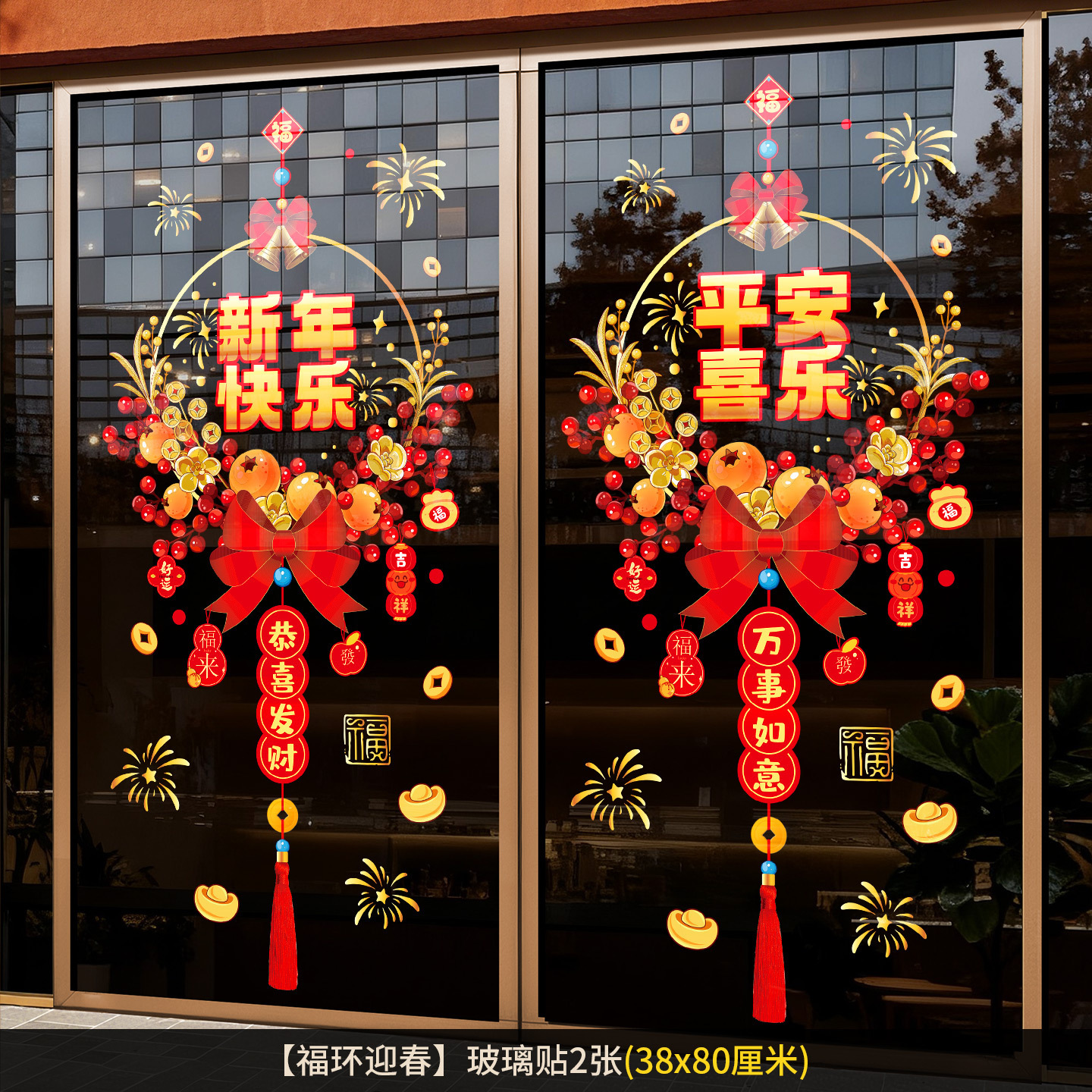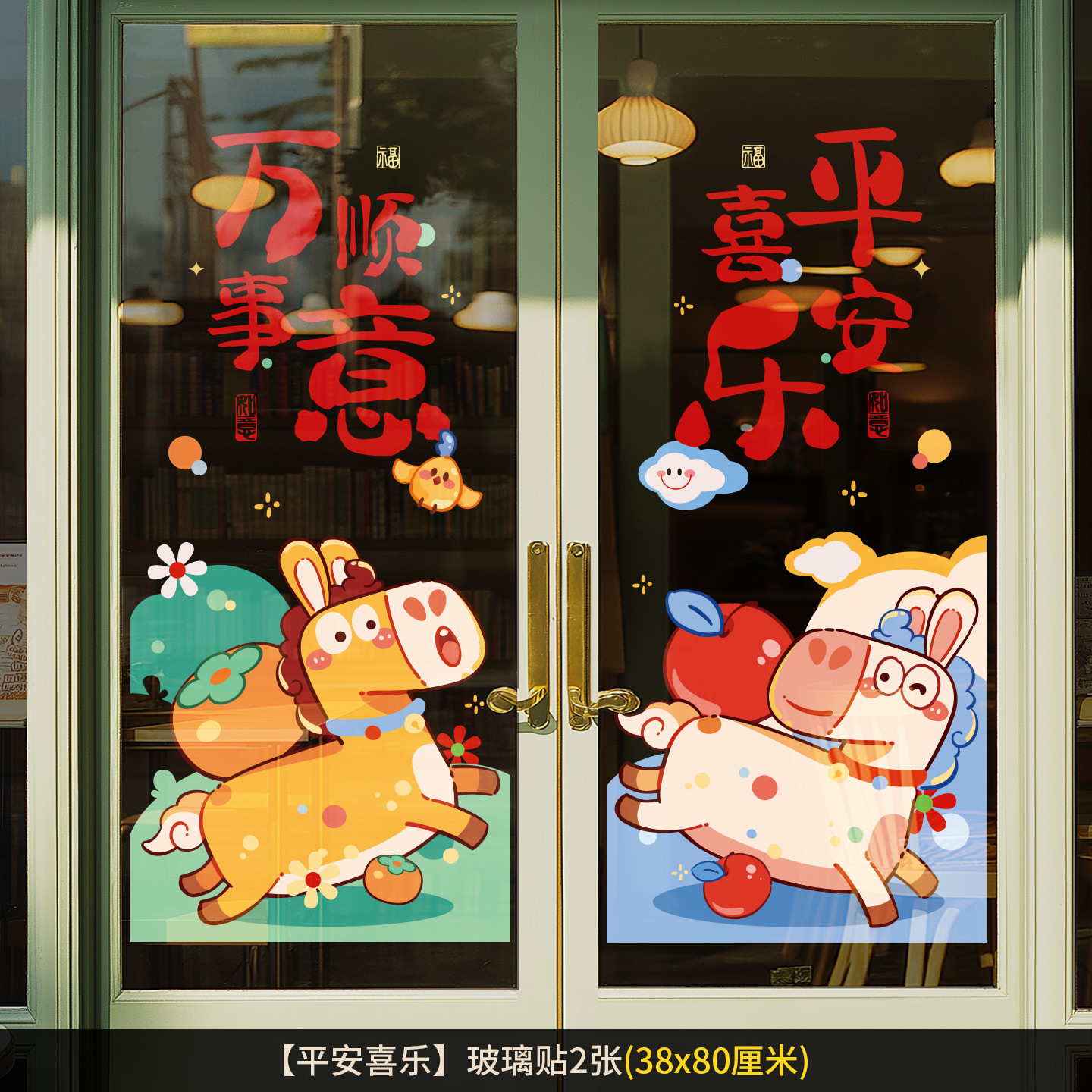 2026新年元旦玻璃贴马年窗花静电贴厨房橱窗福字对贴过年春节装饰