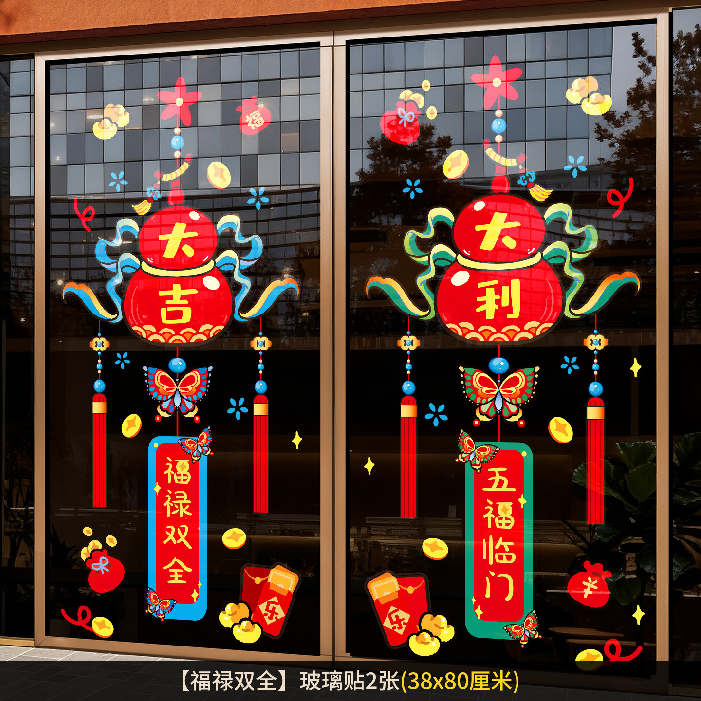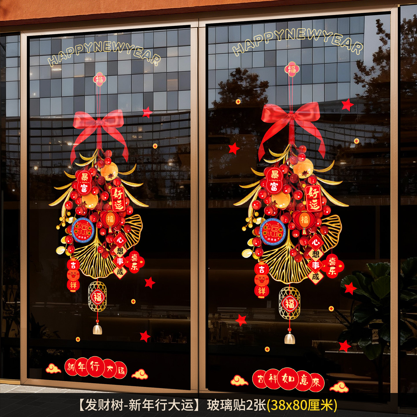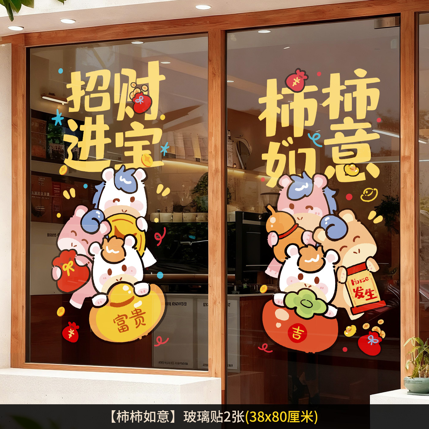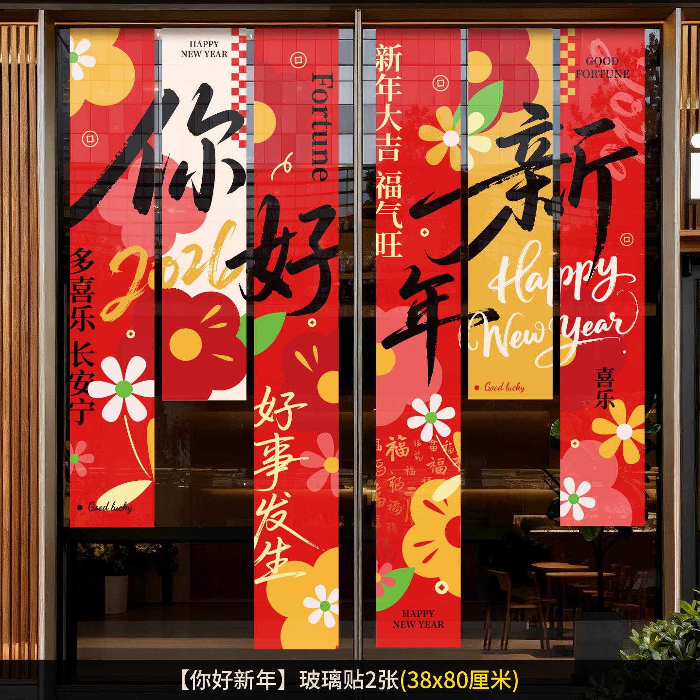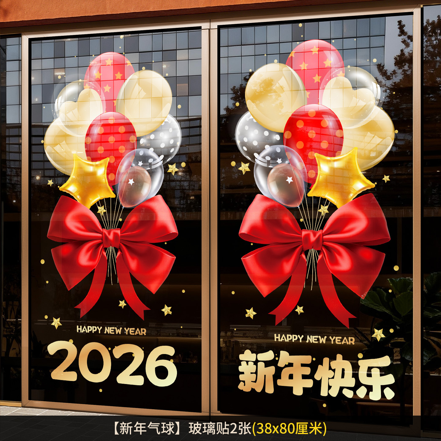 2026新年元旦玻璃贴马年窗花静电贴厨房橱窗福字对贴过年春节装饰