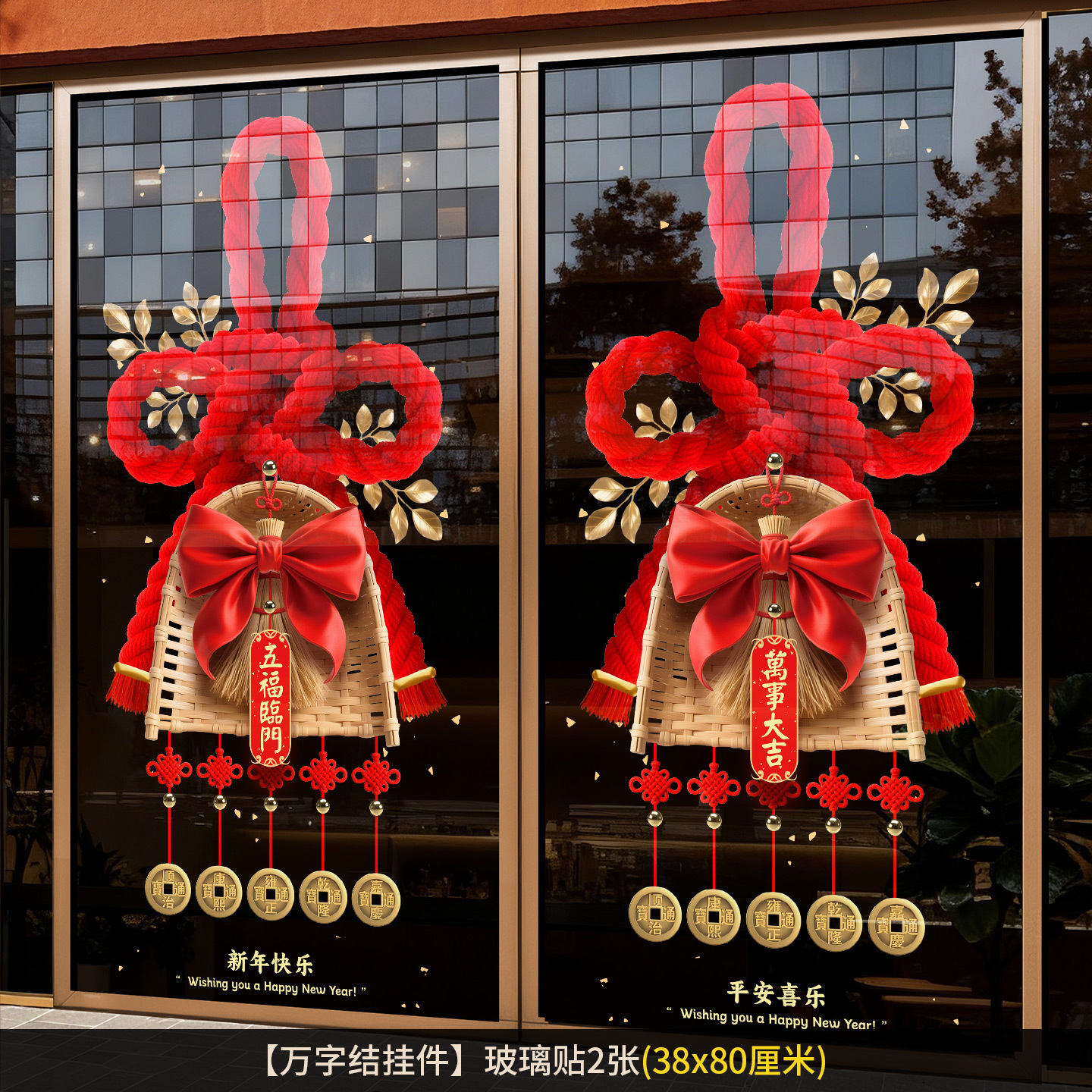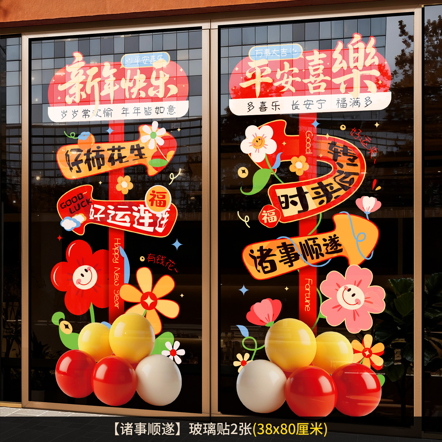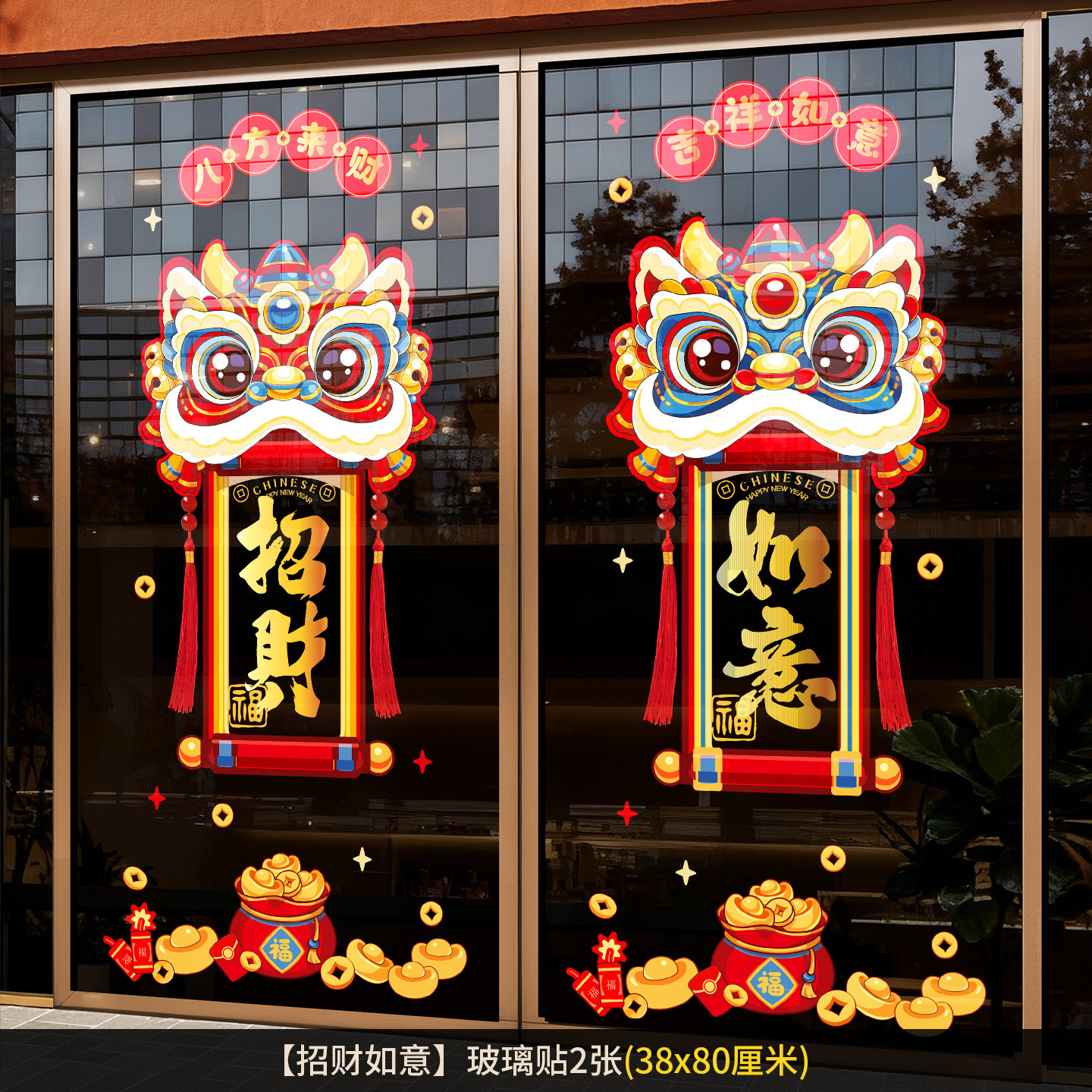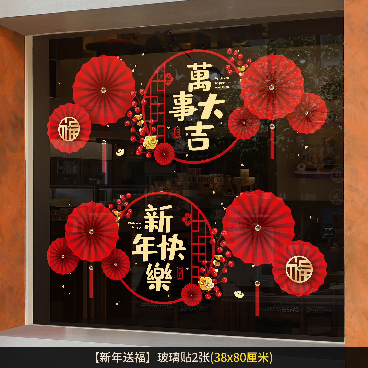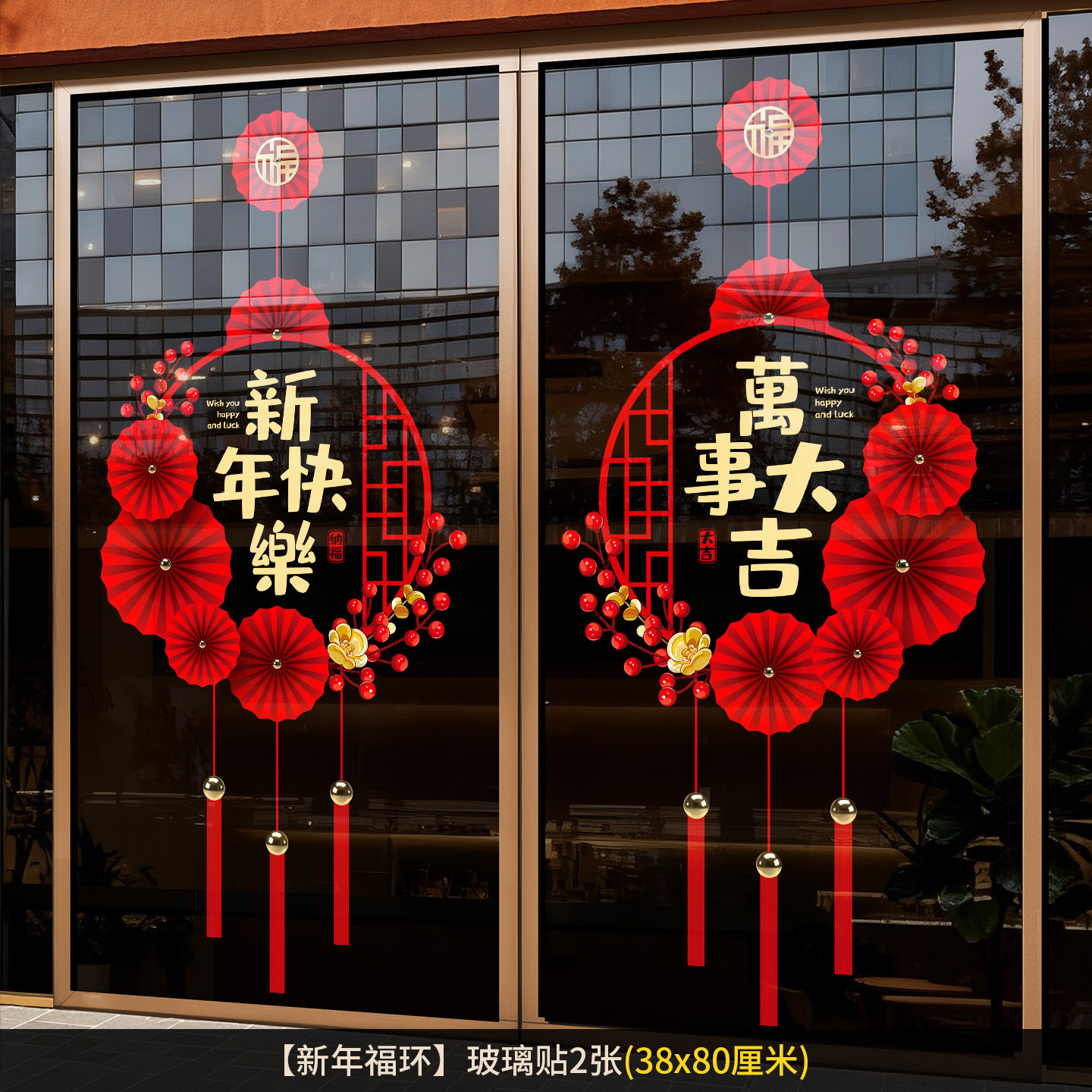 2026新年元旦玻璃贴马年窗花静电贴厨房橱窗福字对贴过年春节装饰