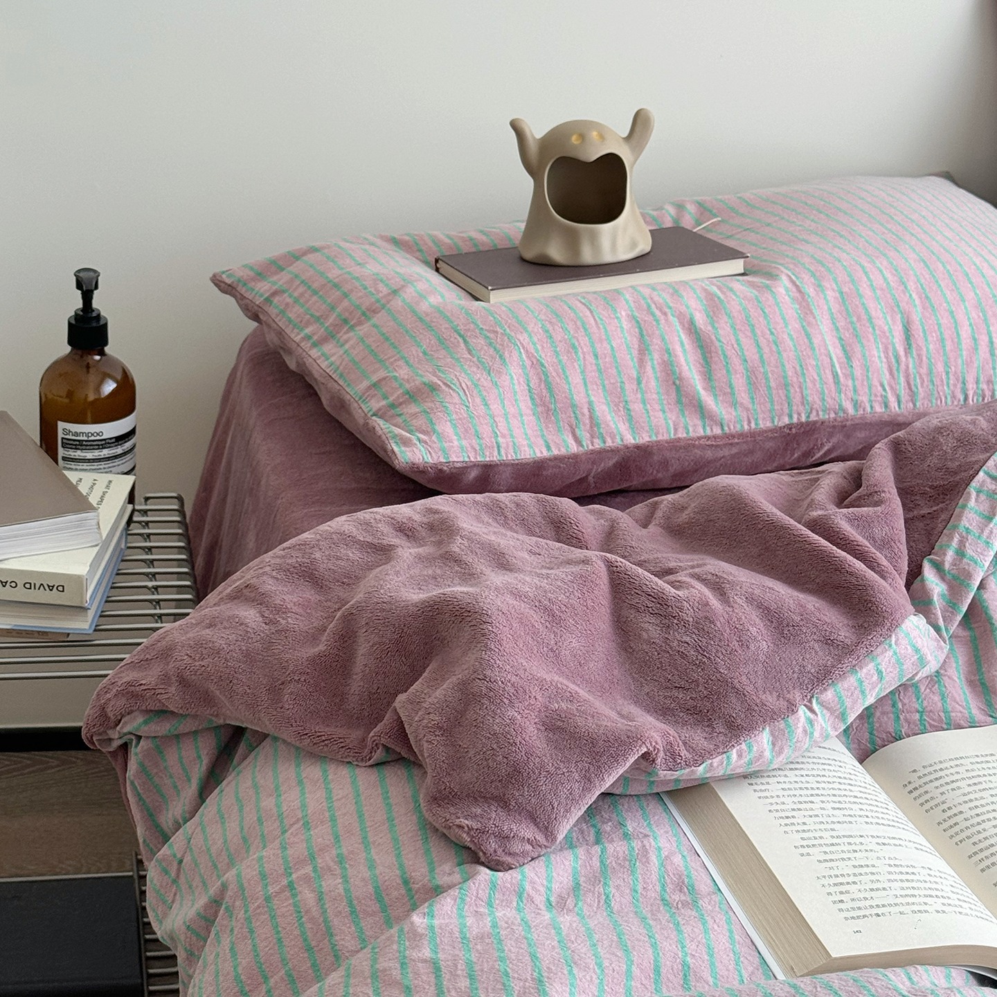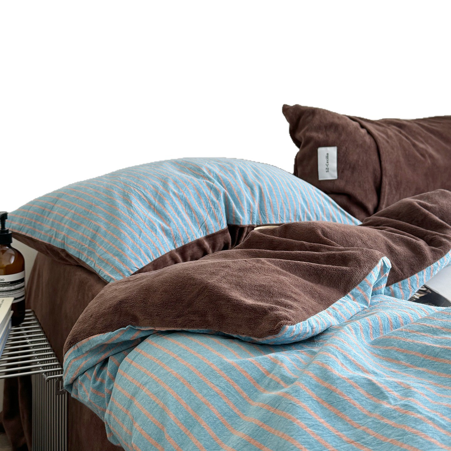 纯棉加绒四件套A棉B绒色织水洗棉ins风冬季保暖加厚绒被套四件套