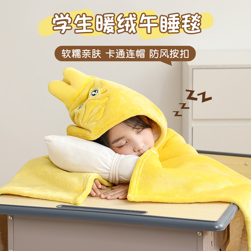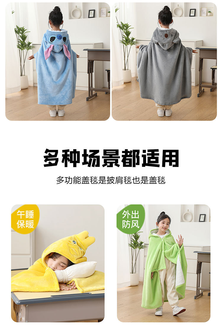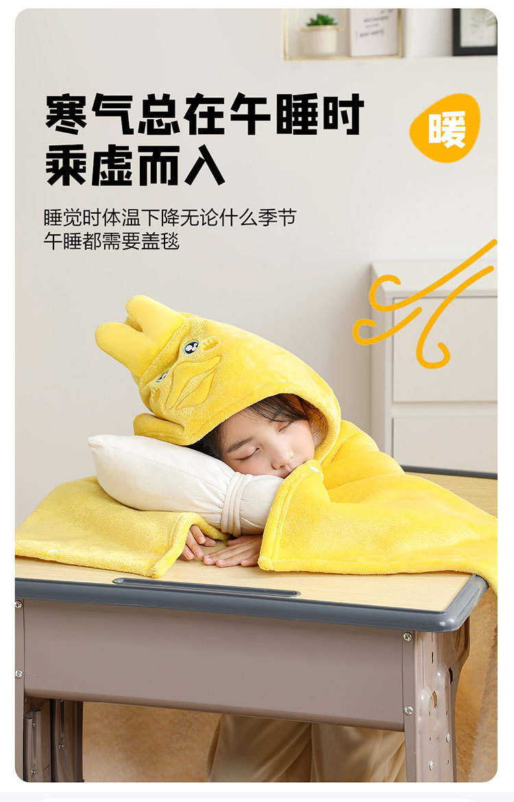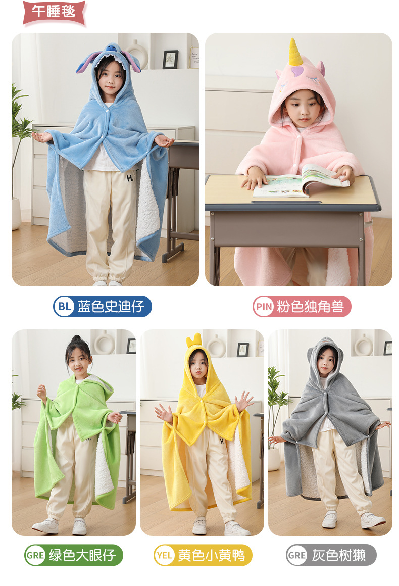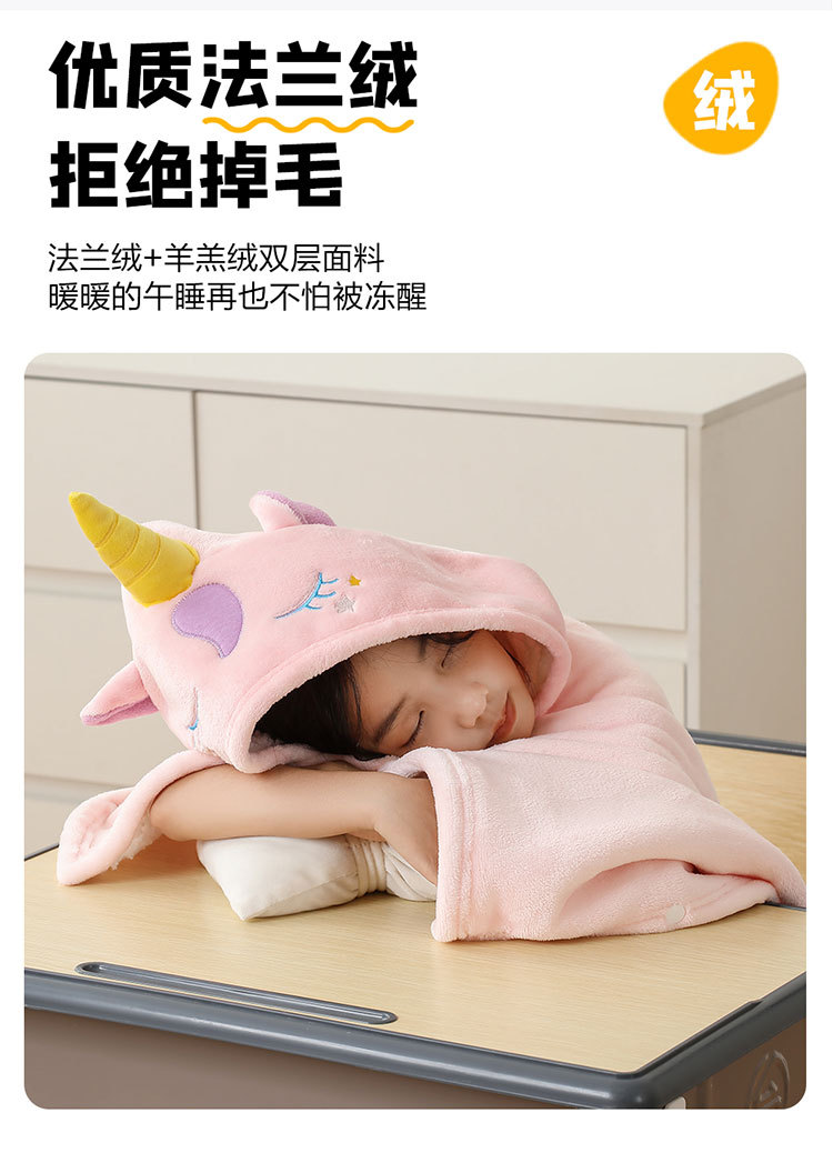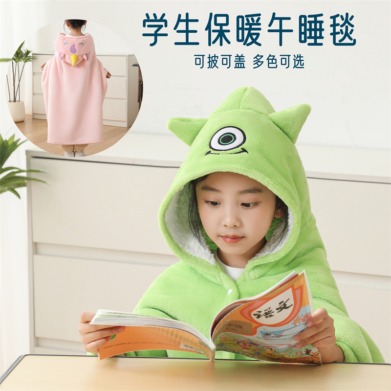 儿童午睡毯冬加厚幼儿园小学生教室办公室趴睡法兰绒披肩毛毯斗篷