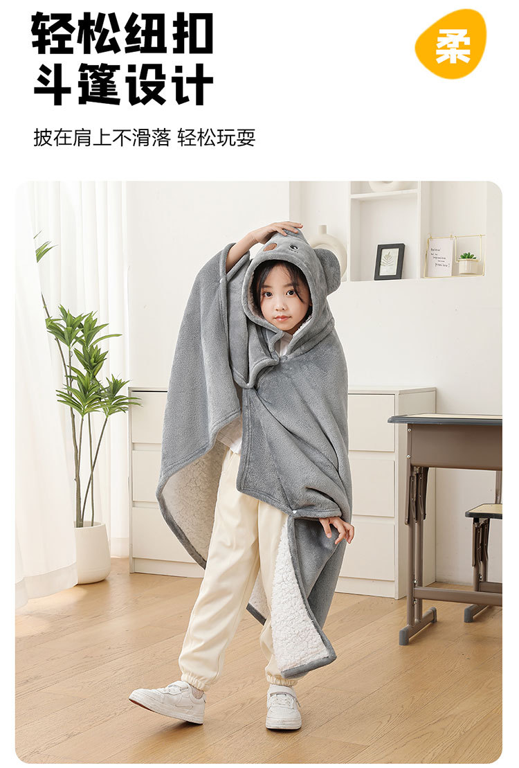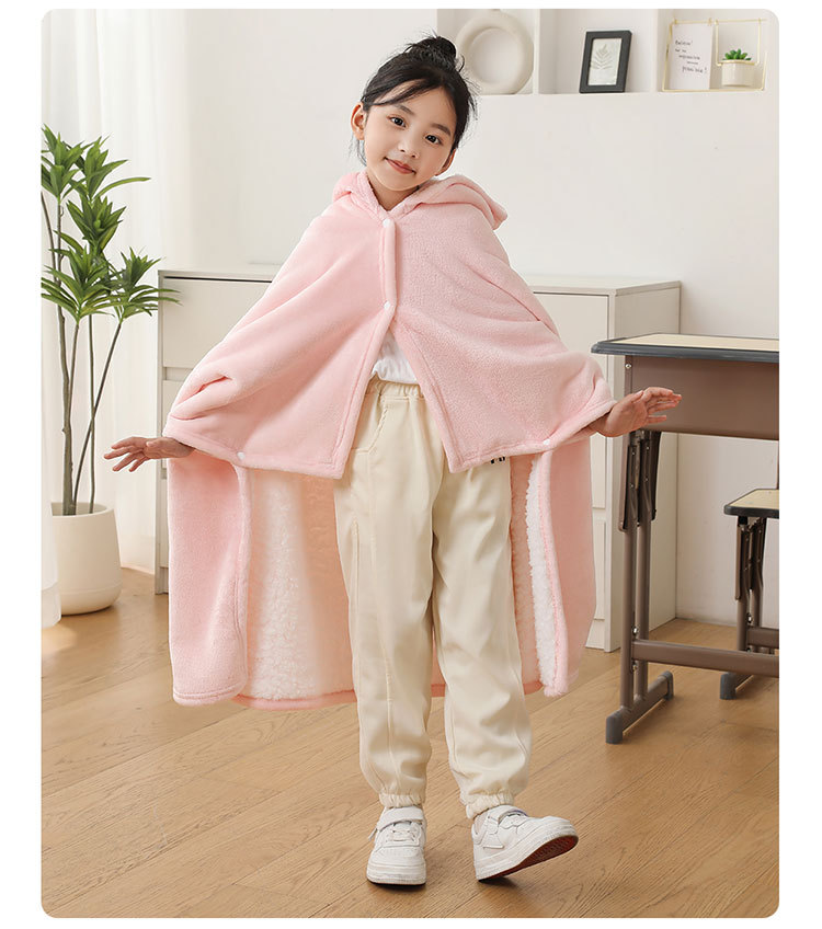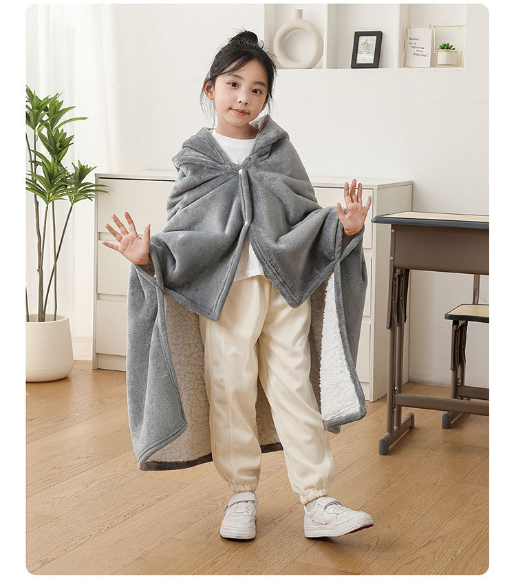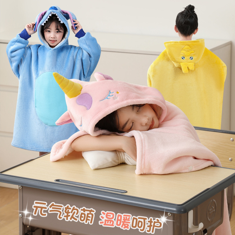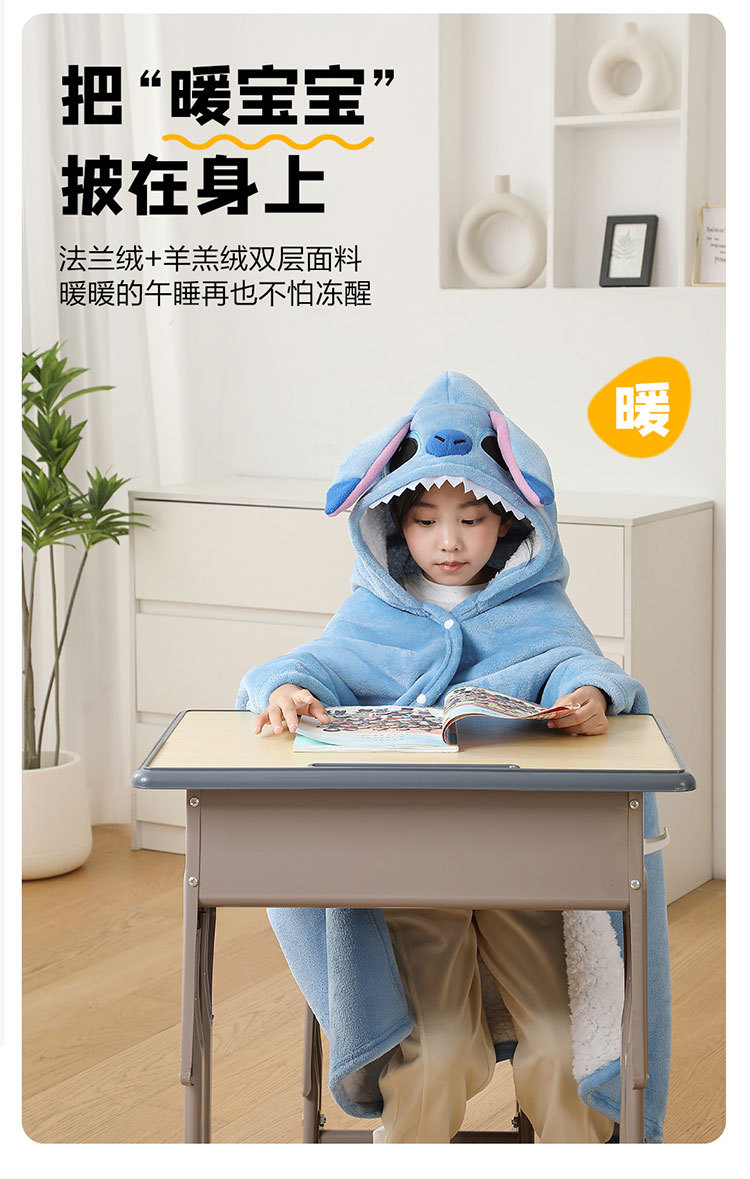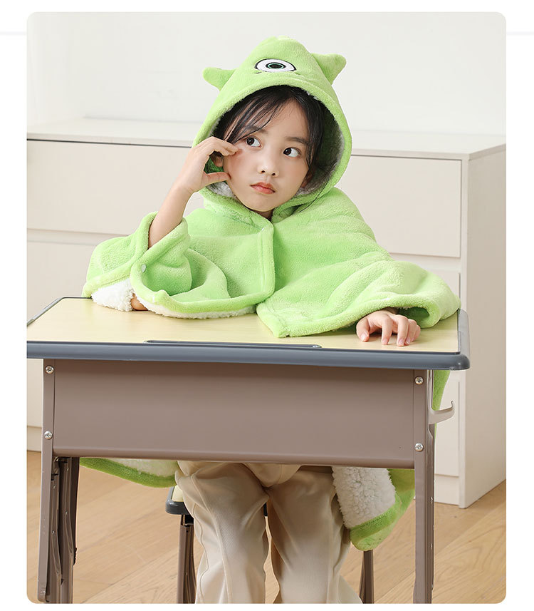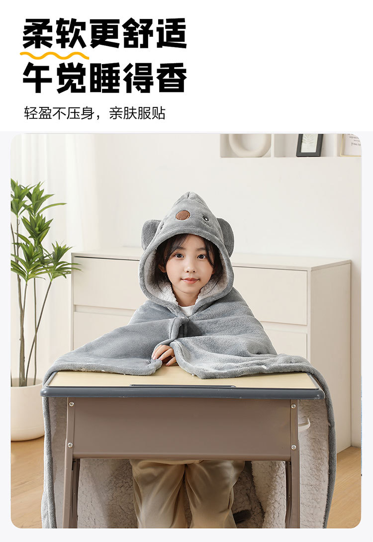 儿童午睡毯冬加厚幼儿园小学生教室办公室趴睡法兰绒披肩毛毯斗篷