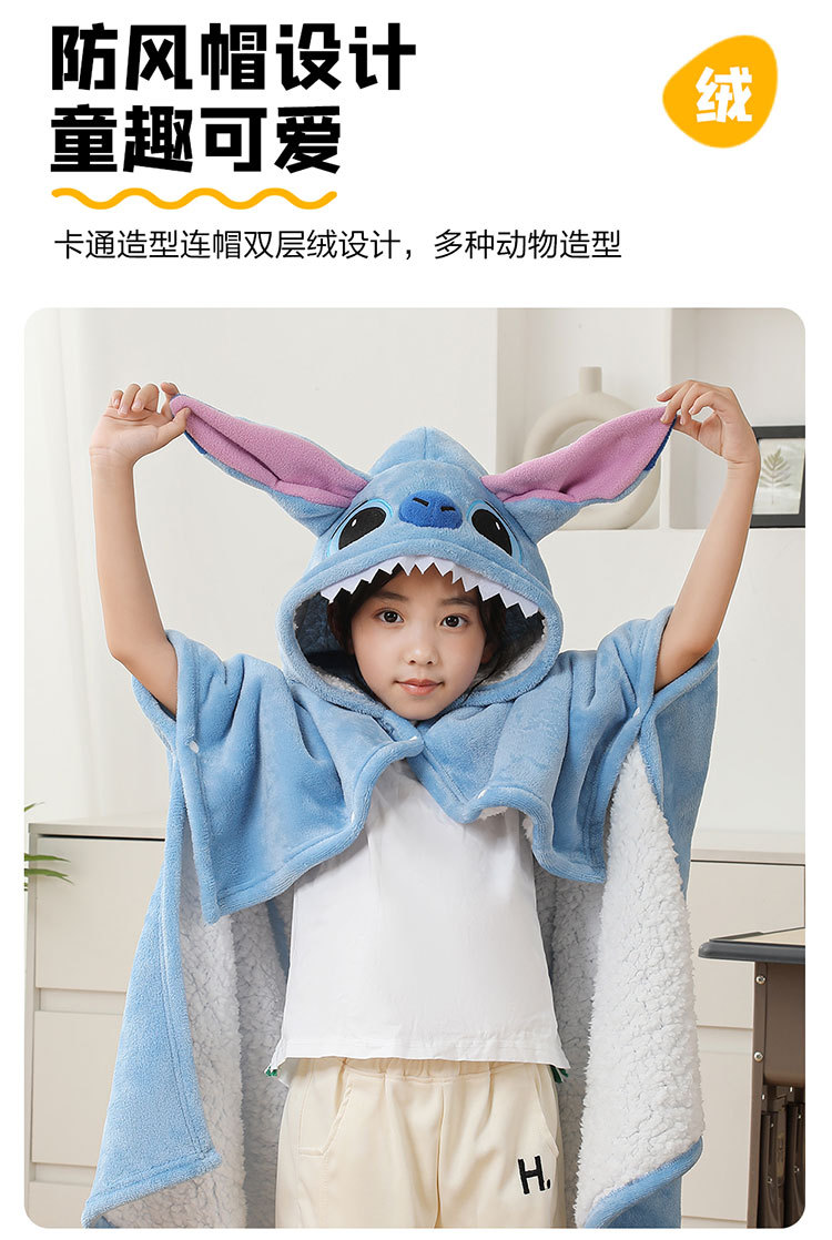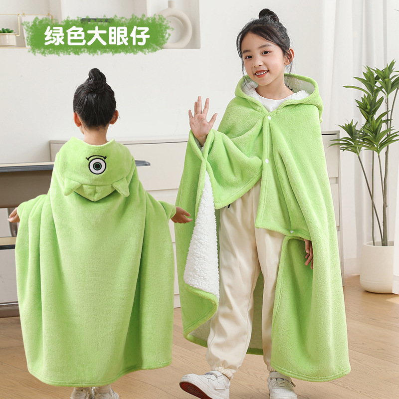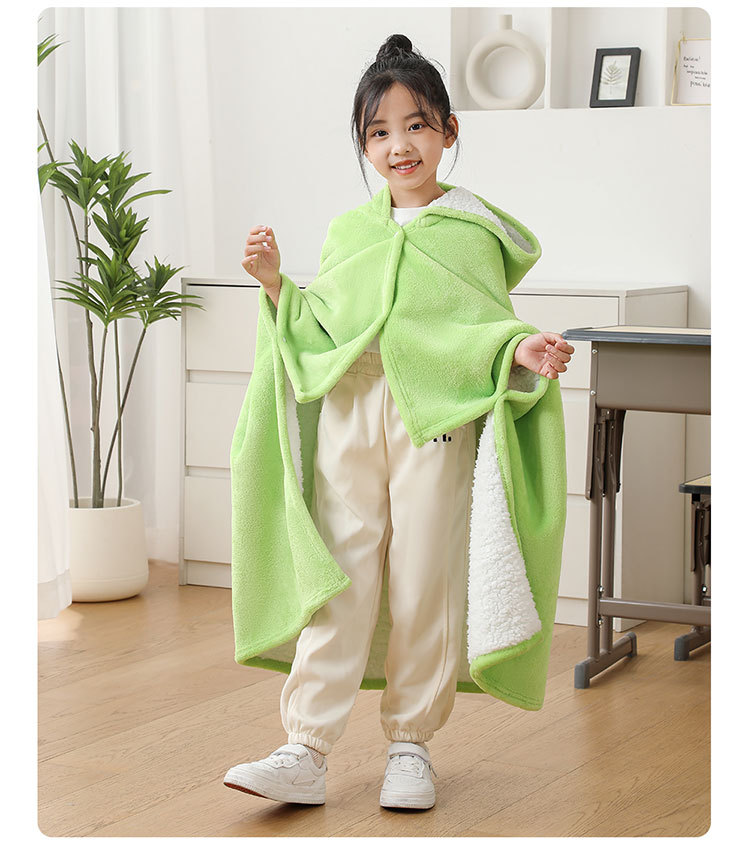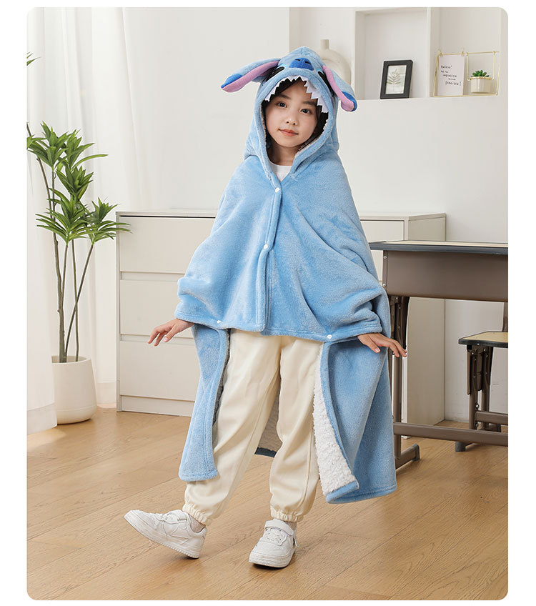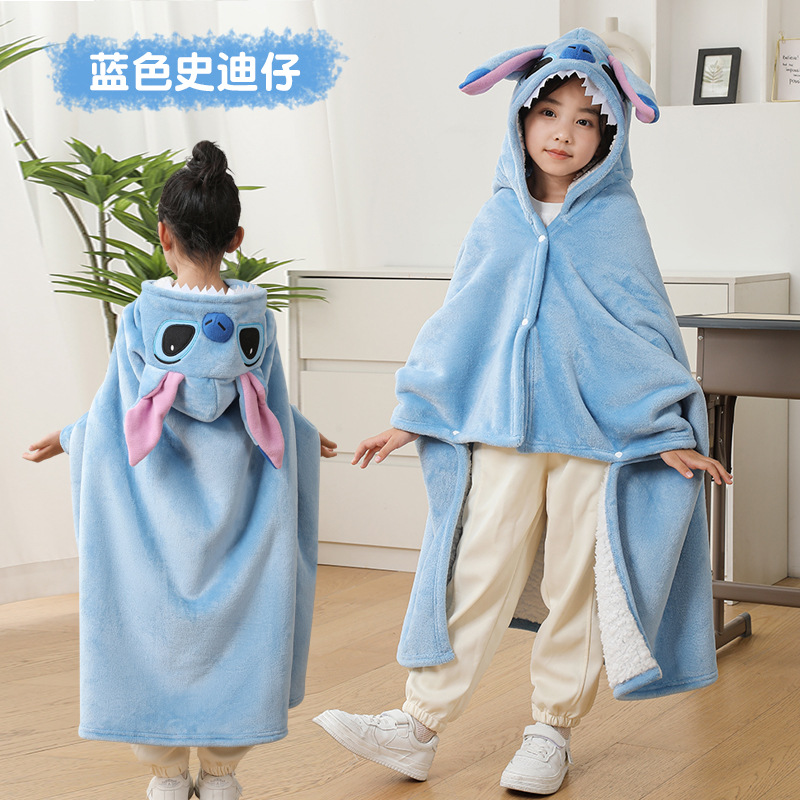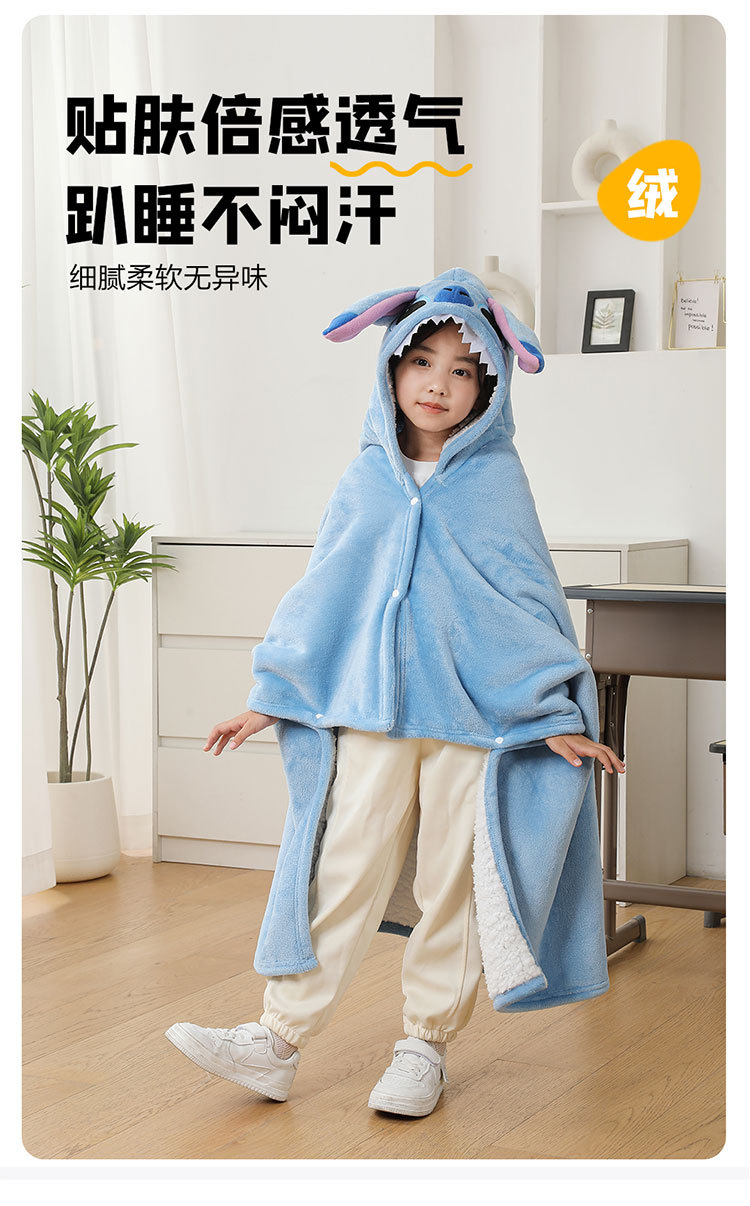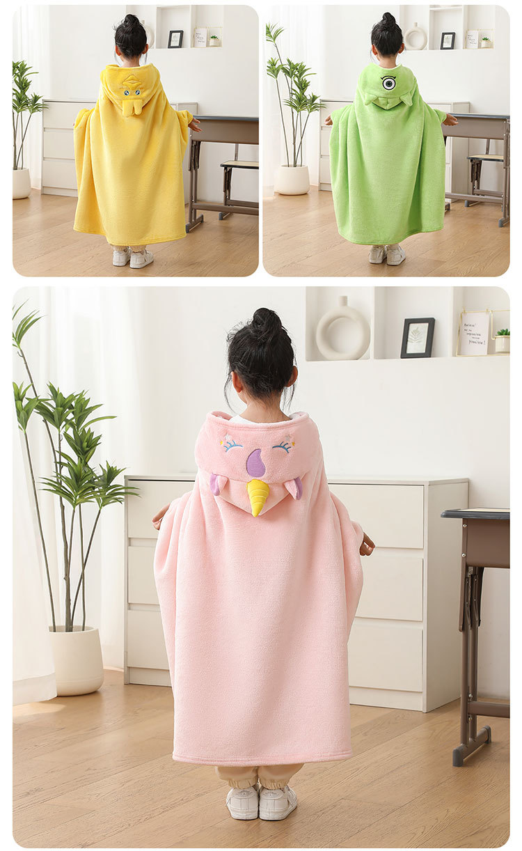 儿童午睡毯冬加厚幼儿园小学生教室办公室趴睡法兰绒披肩毛毯斗篷