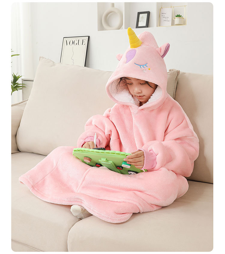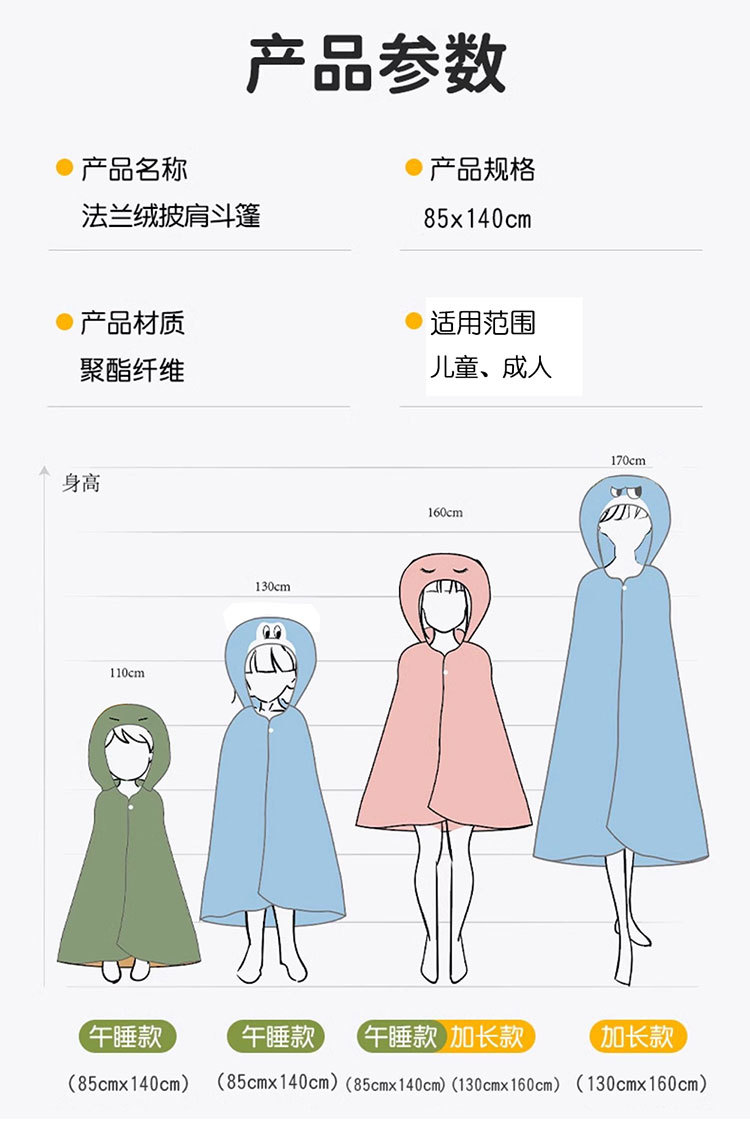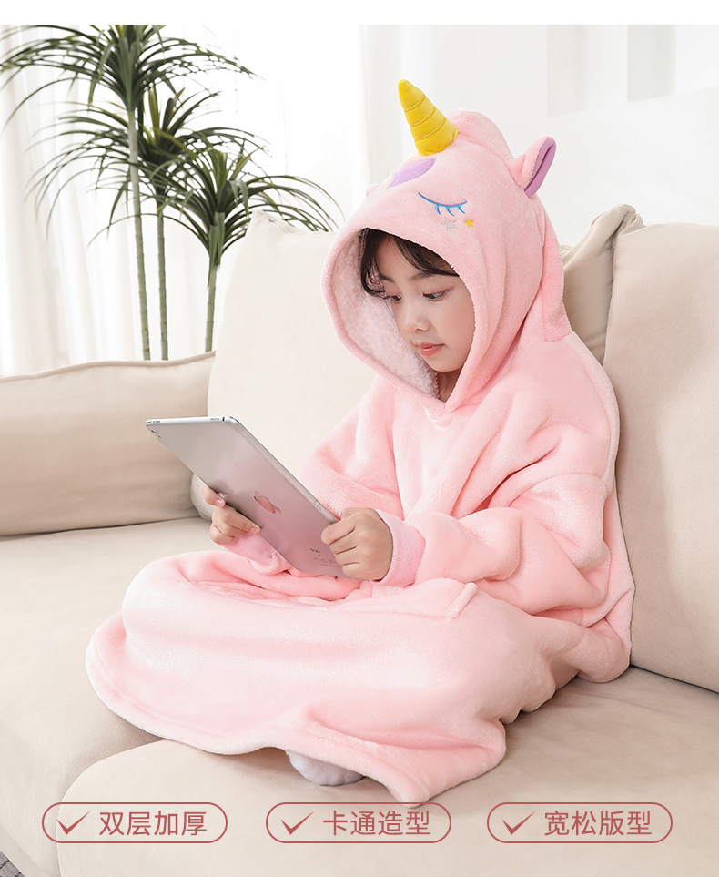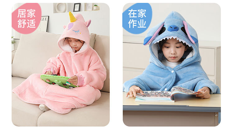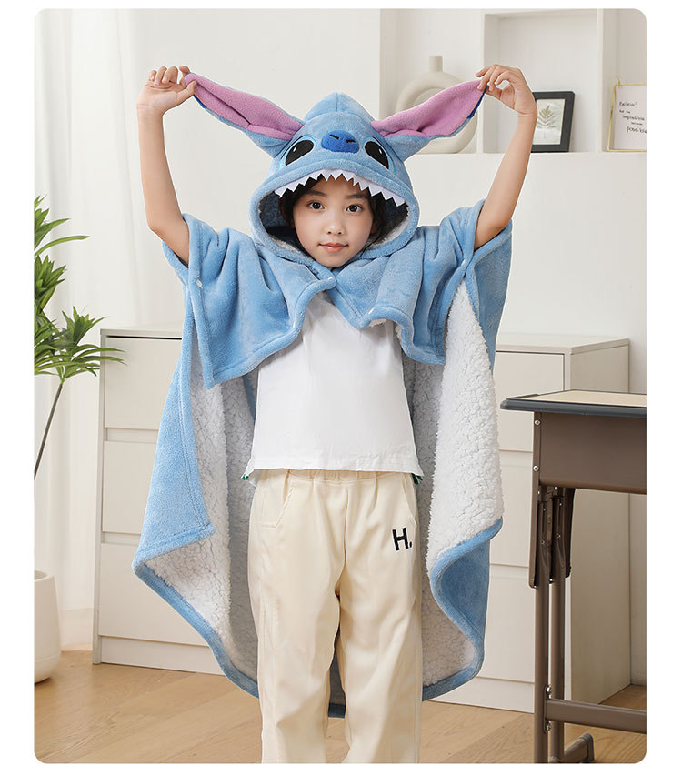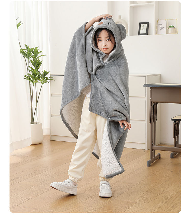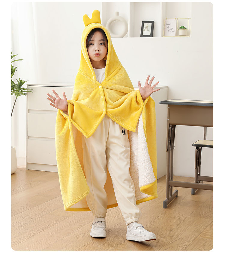 儿童午睡毯冬加厚幼儿园小学生教室办公室趴睡法兰绒披肩毛毯斗篷