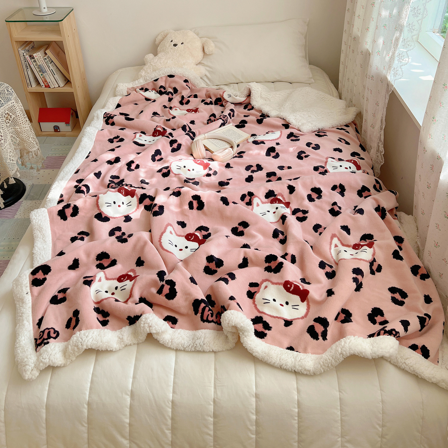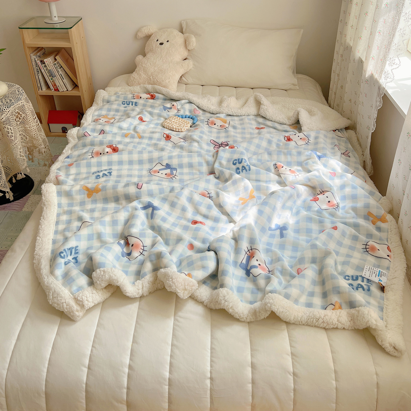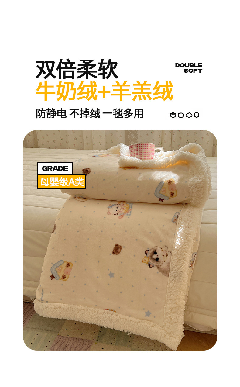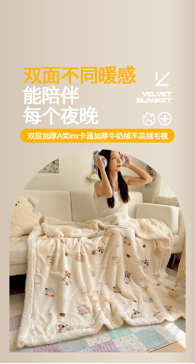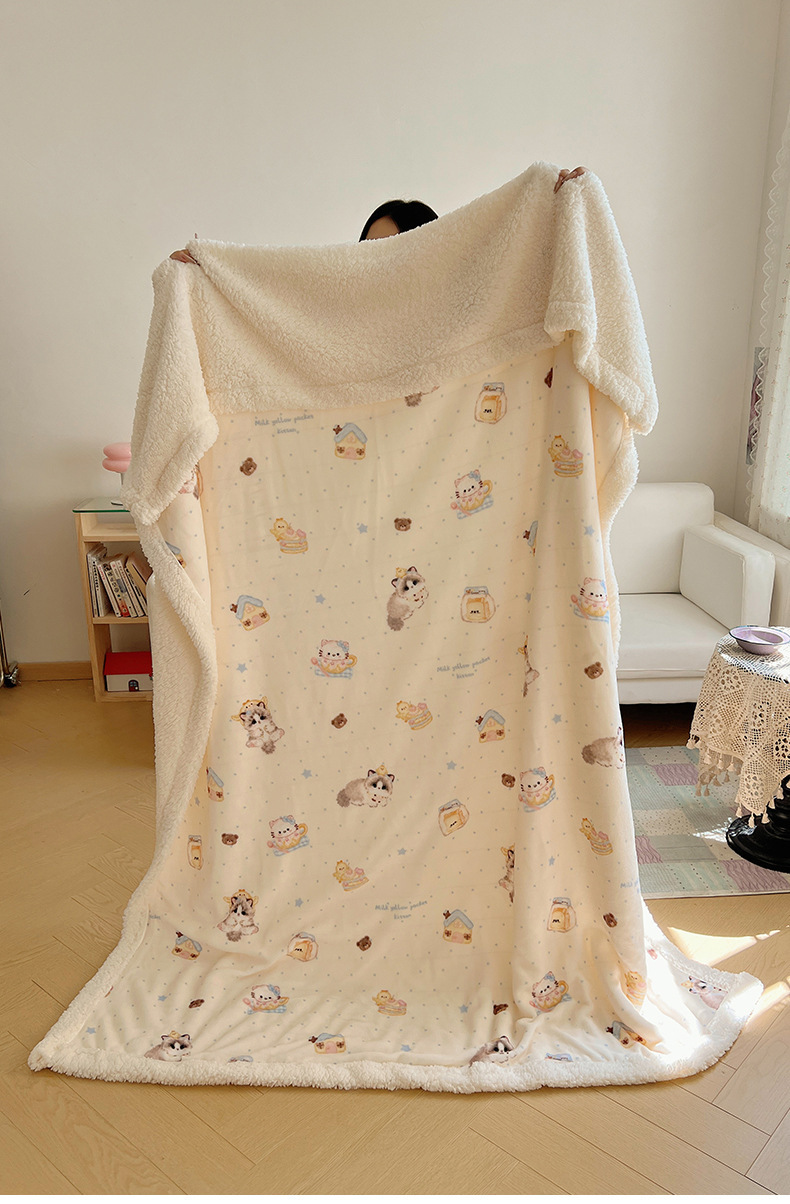 可爱猫咪羊羔绒牛奶绒休闲毛毯秋冬加厚珊瑚绒沙发盖毯少女午睡毯