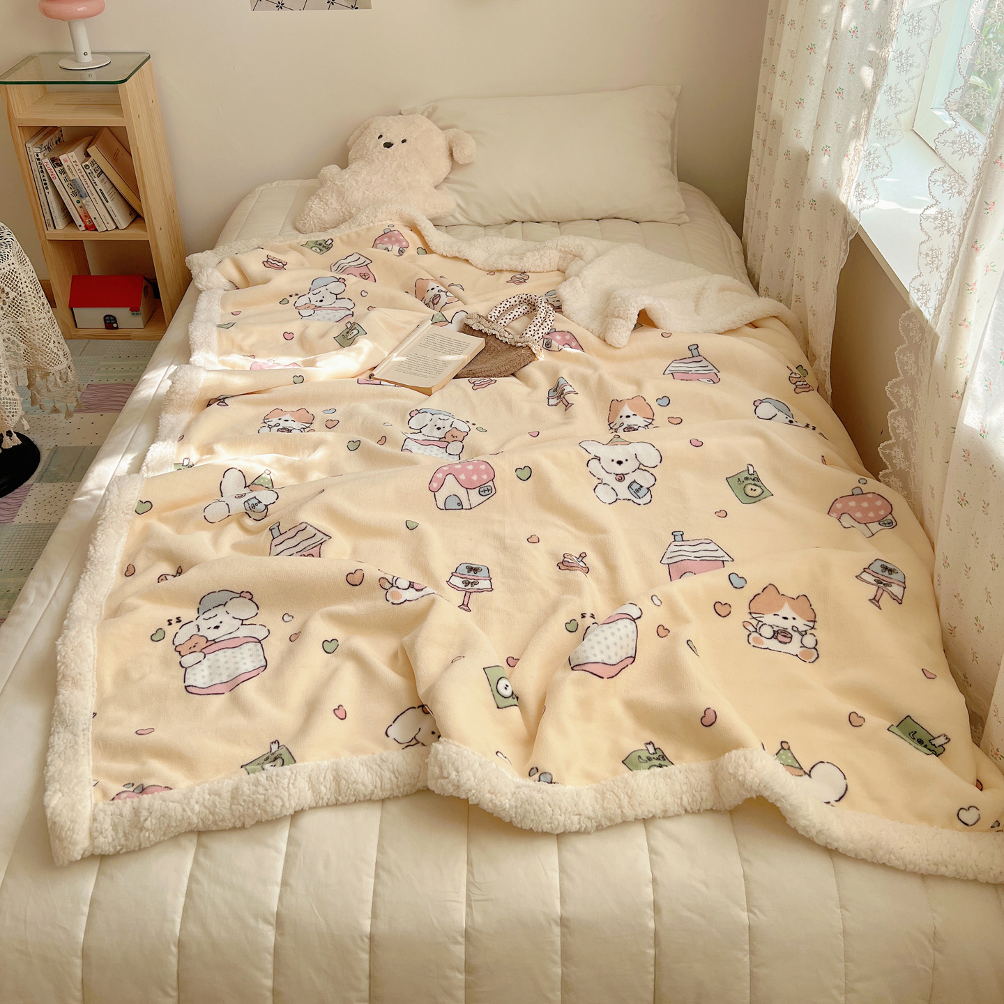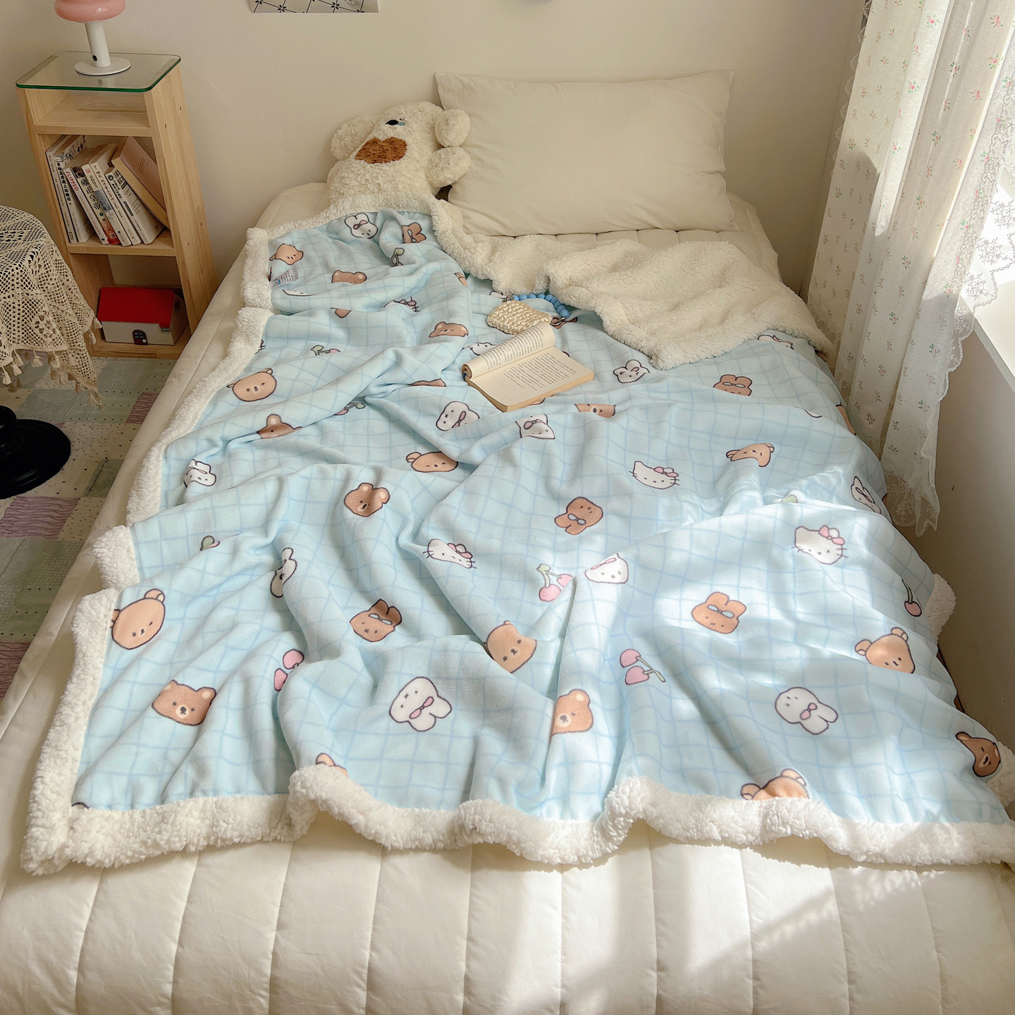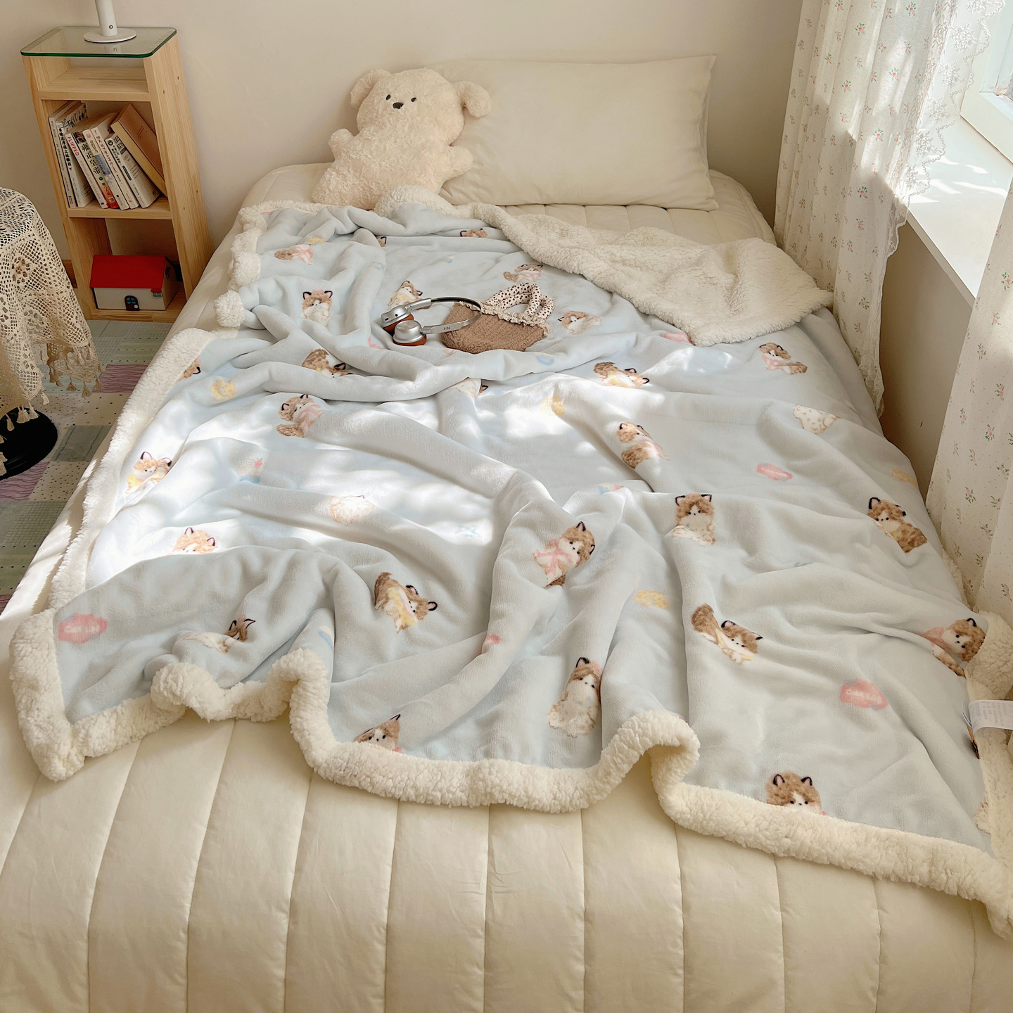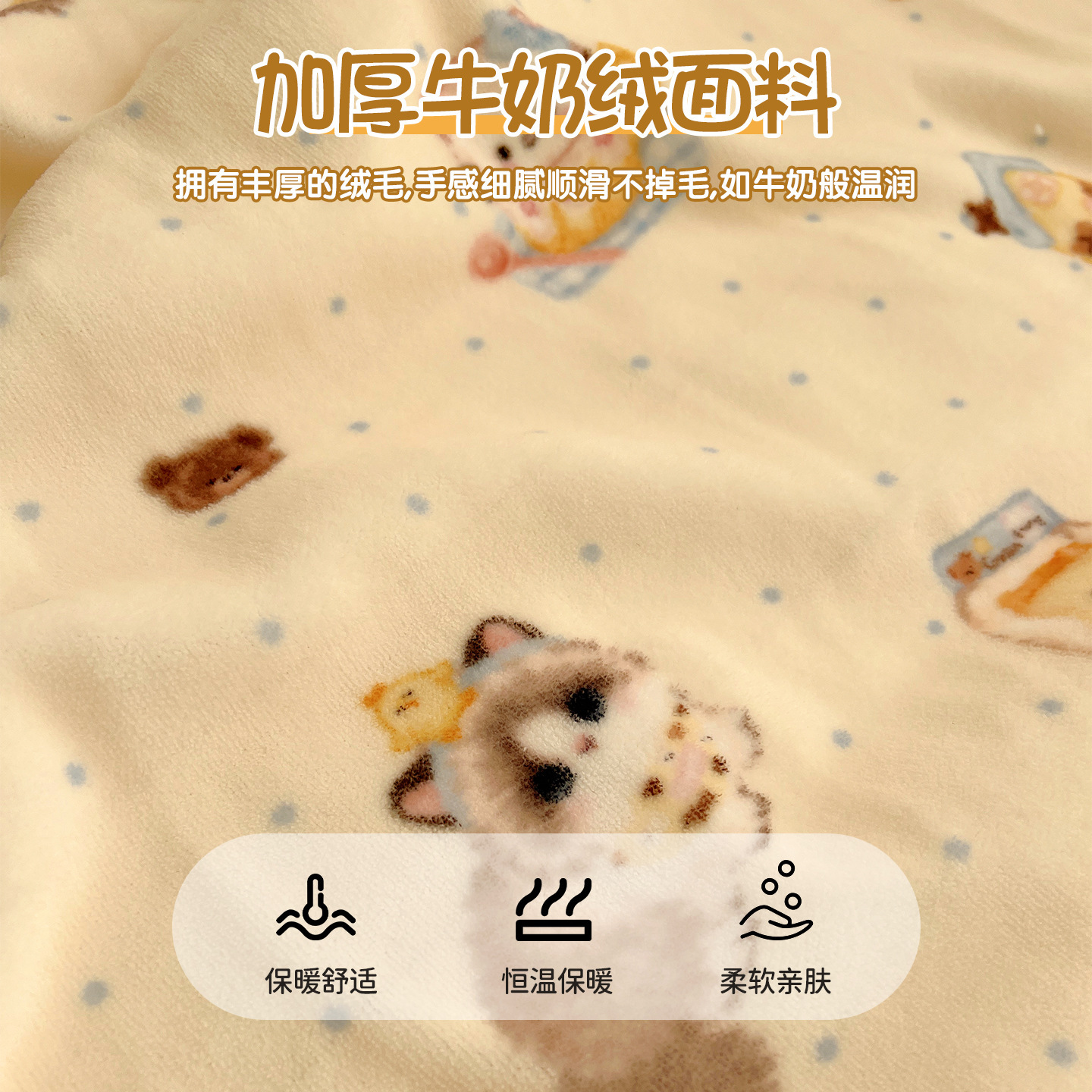 可爱猫咪羊羔绒牛奶绒休闲毛毯秋冬加厚珊瑚绒沙发盖毯少女午睡毯