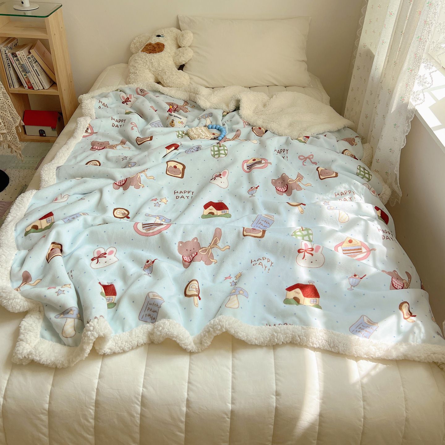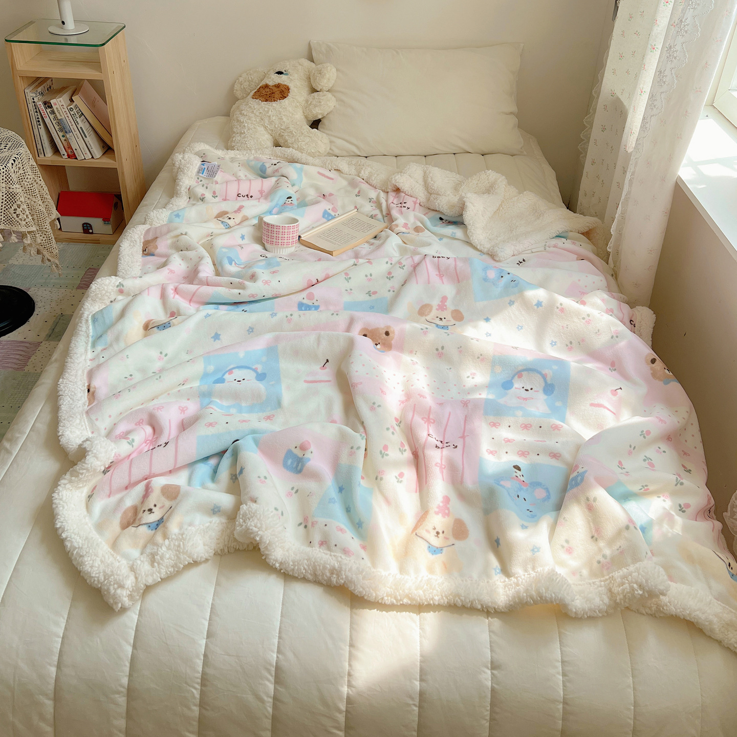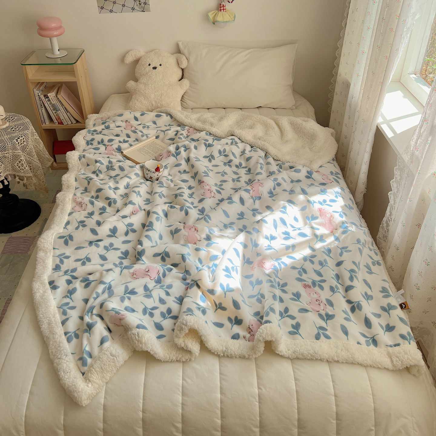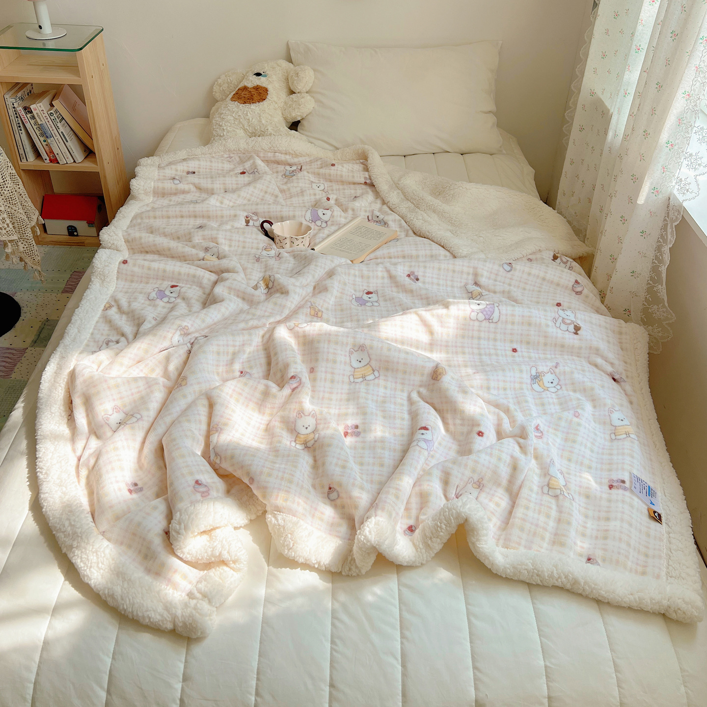 可爱猫咪羊羔绒牛奶绒休闲毛毯秋冬加厚珊瑚绒沙发盖毯少女午睡毯