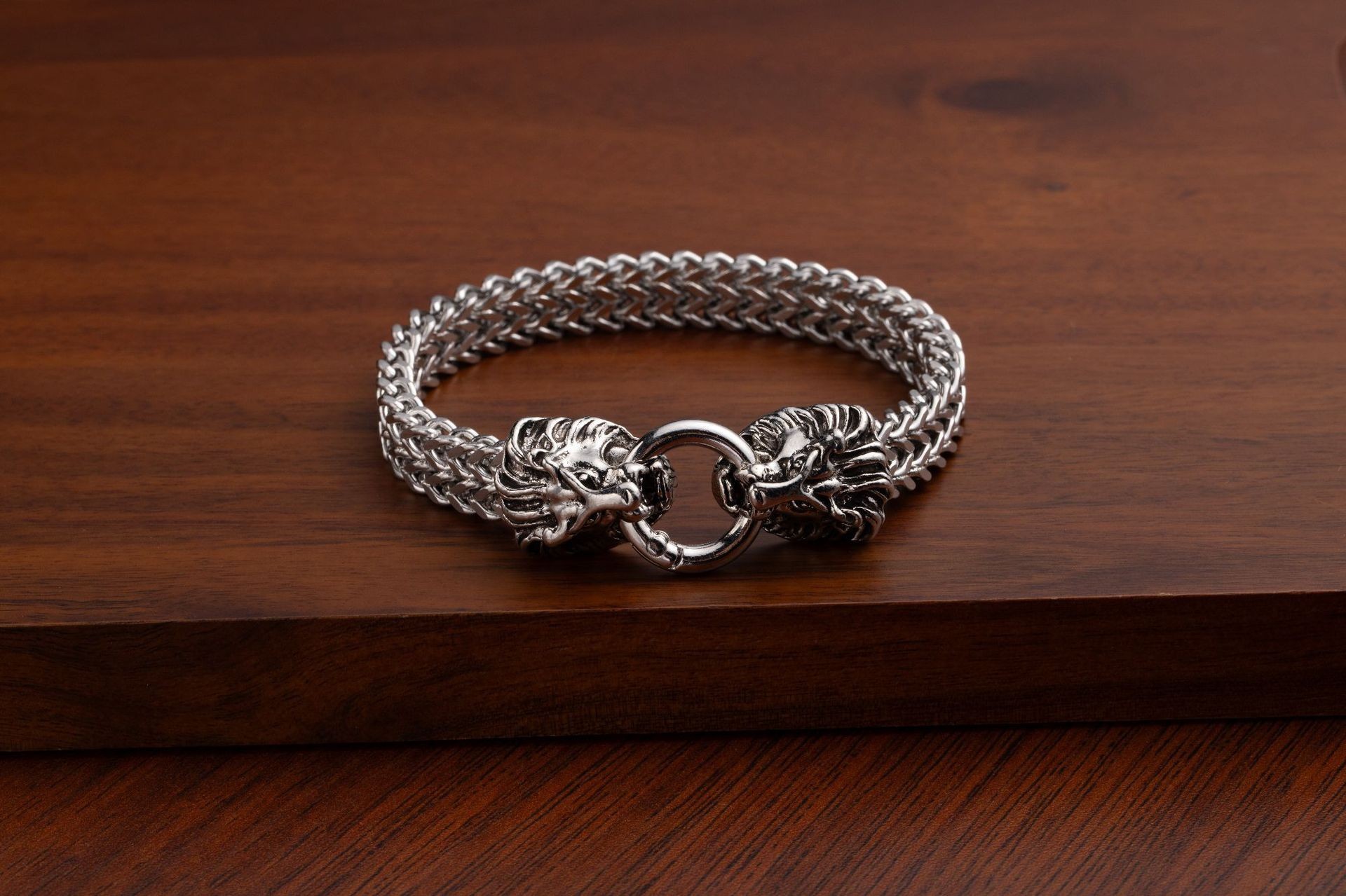 欧美跨境爆款男士手链复古朋克风不锈钢蛇头兽头骷髅头手饰不掉色