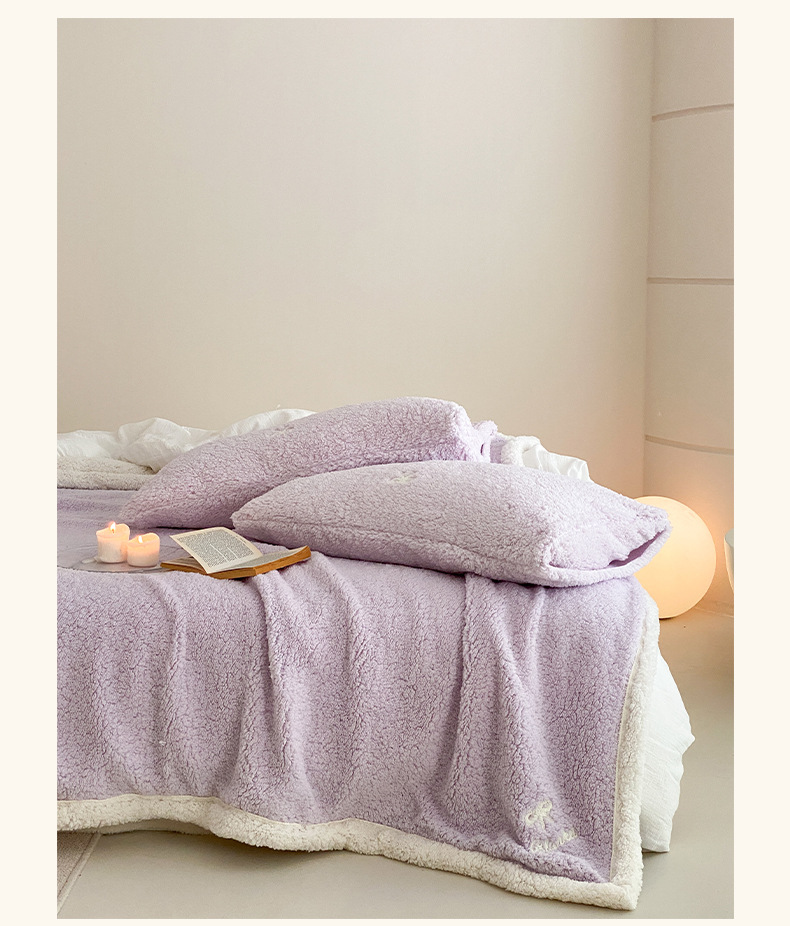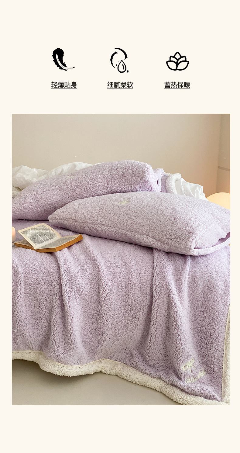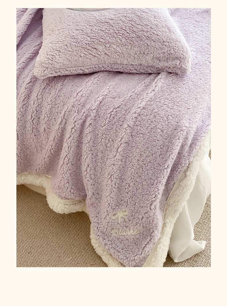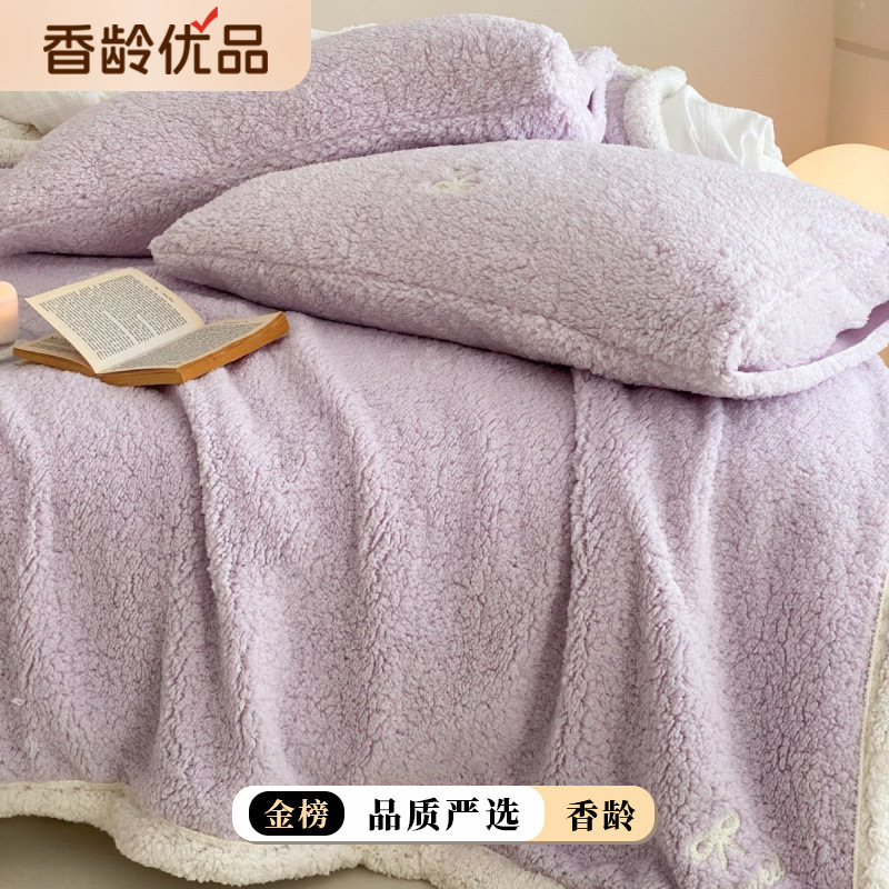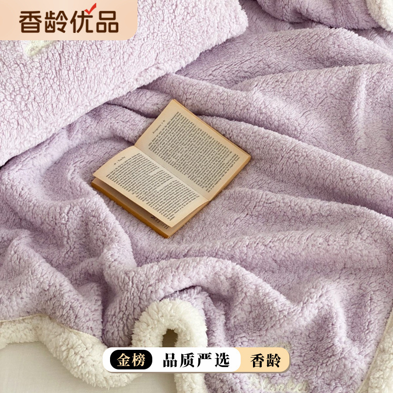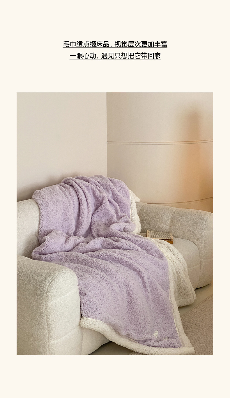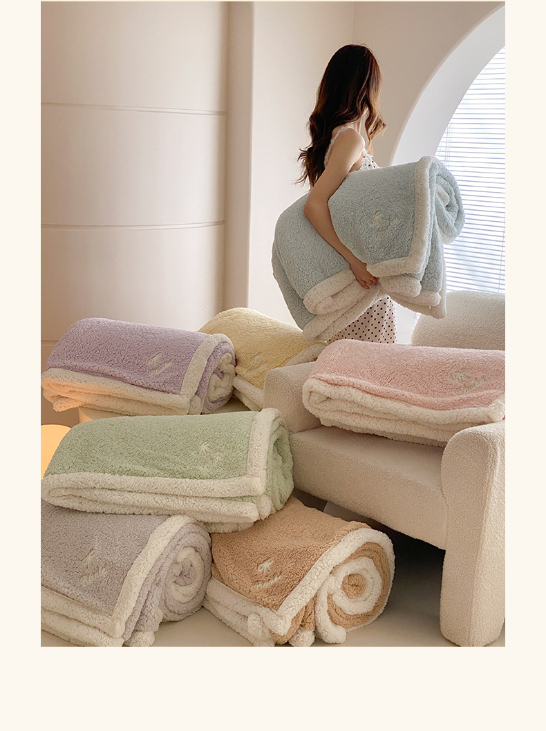 【香龄优品】简约纯色ins风加厚保暖羊羔绒毛巾绣毯沙发毯披肩毯