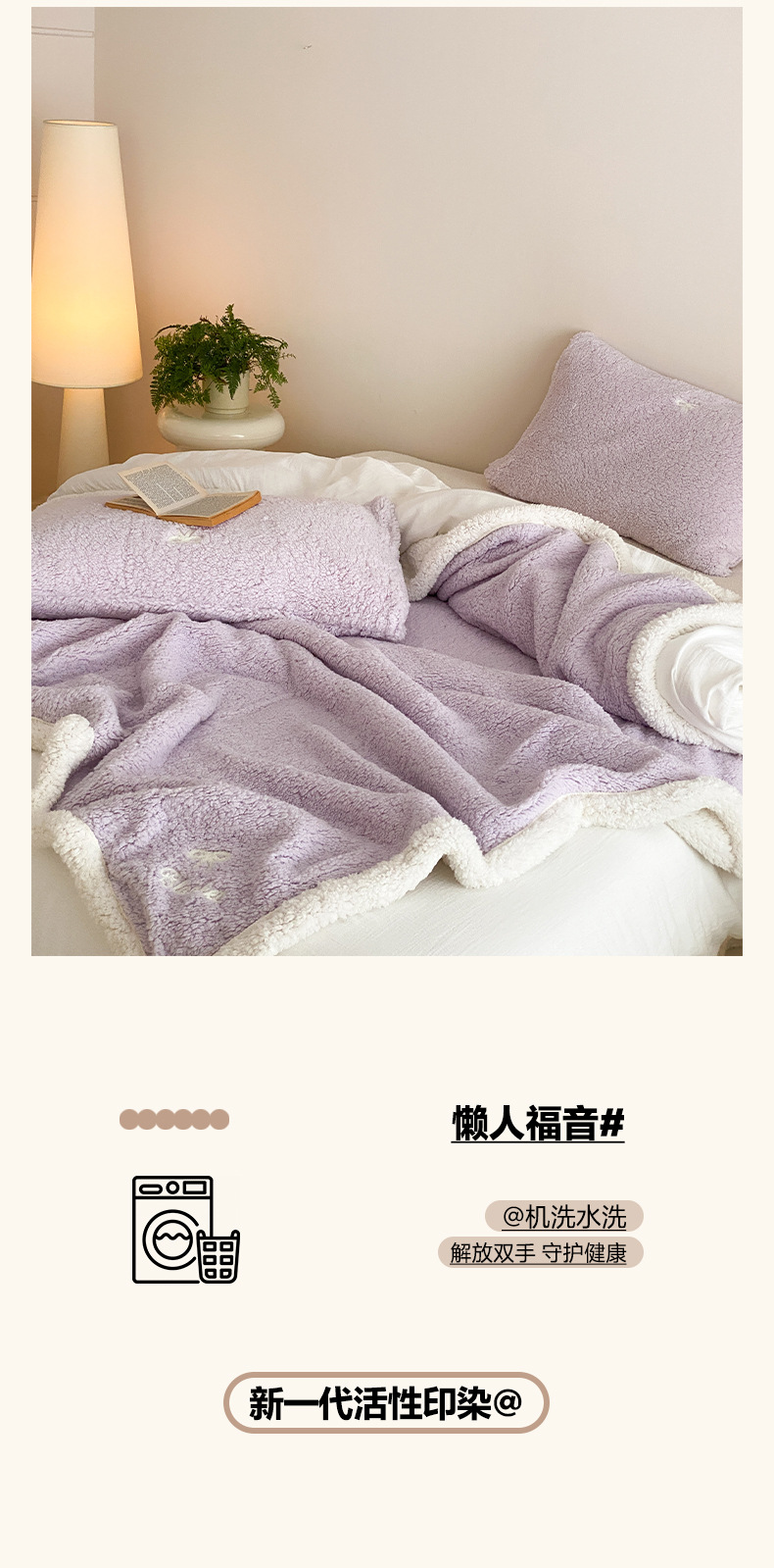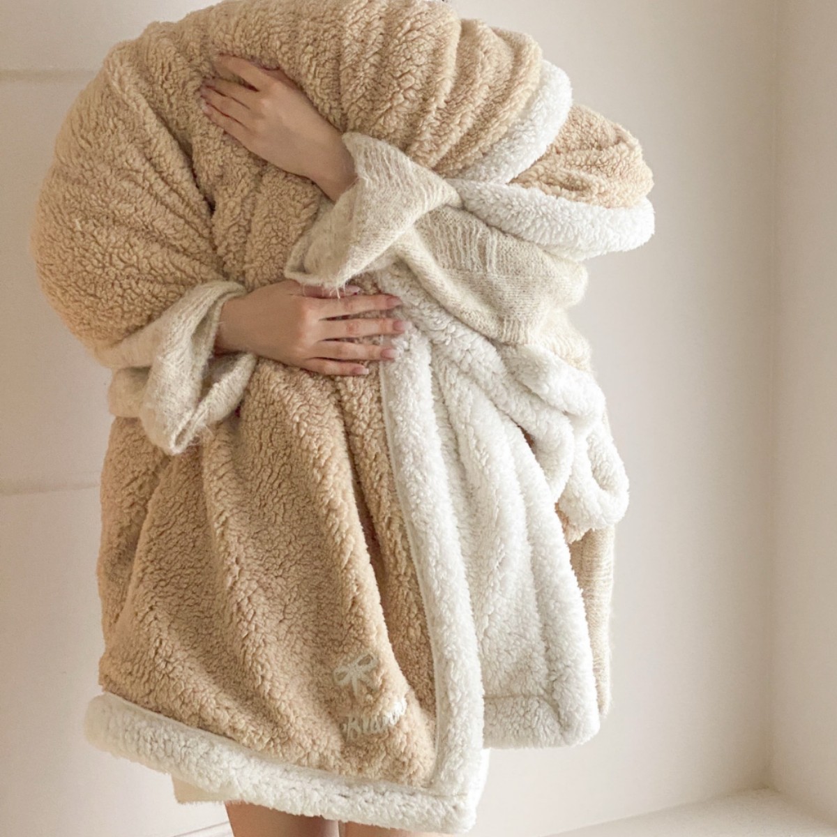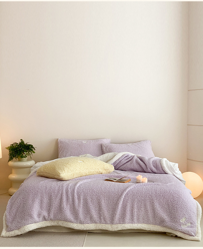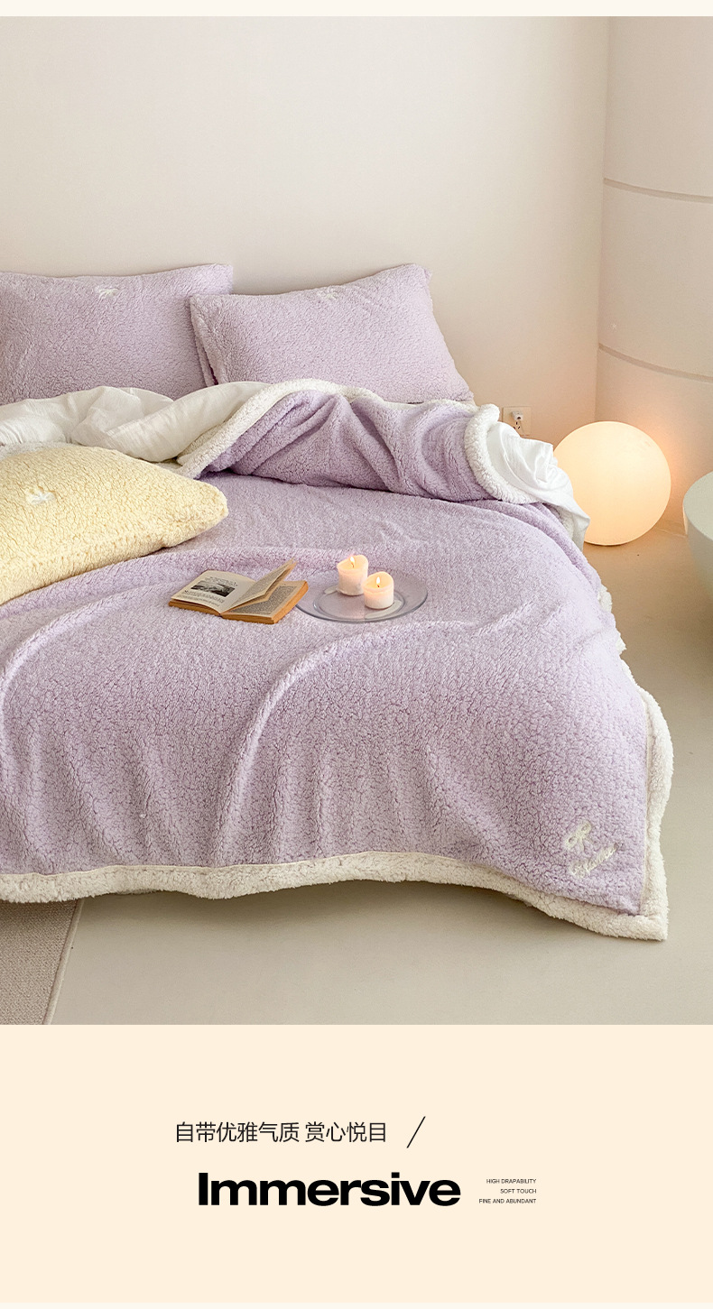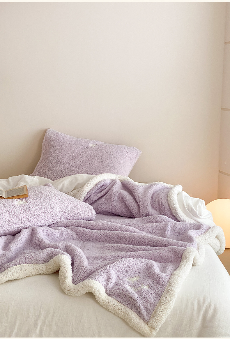 【香龄优品】简约纯色ins风加厚保暖羊羔绒毛巾绣毯沙发毯披肩毯