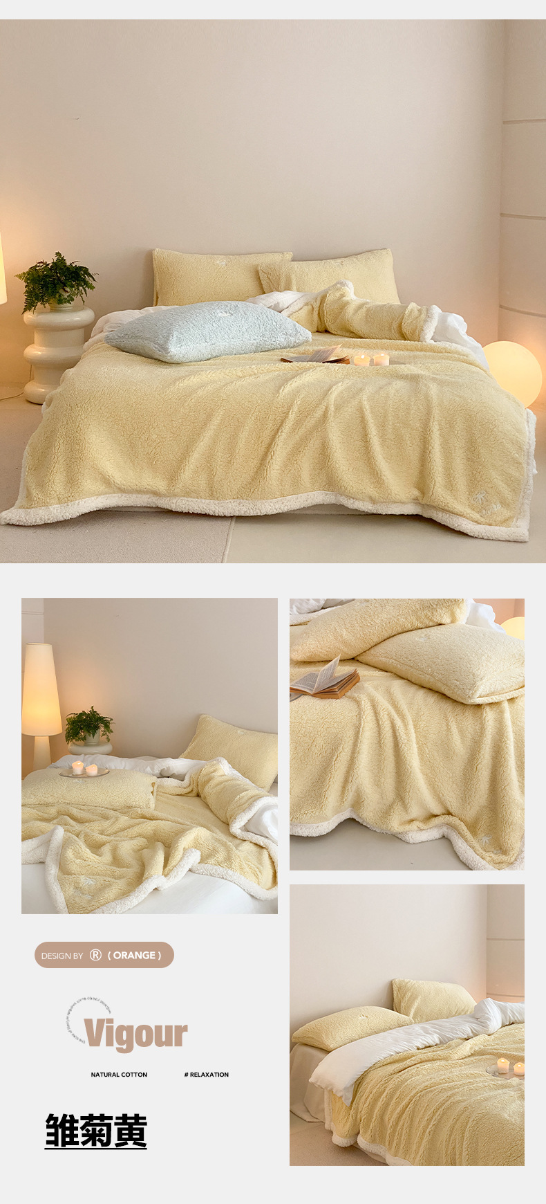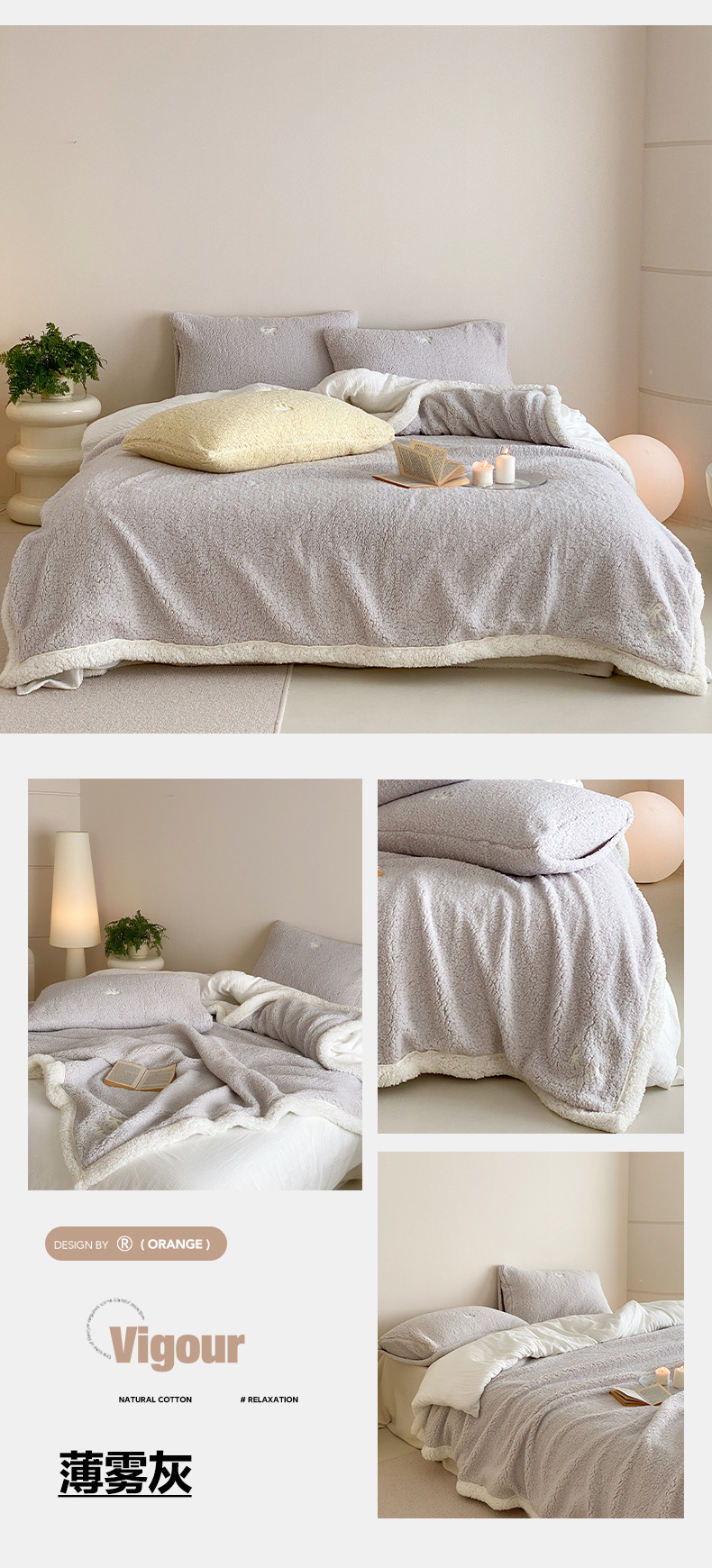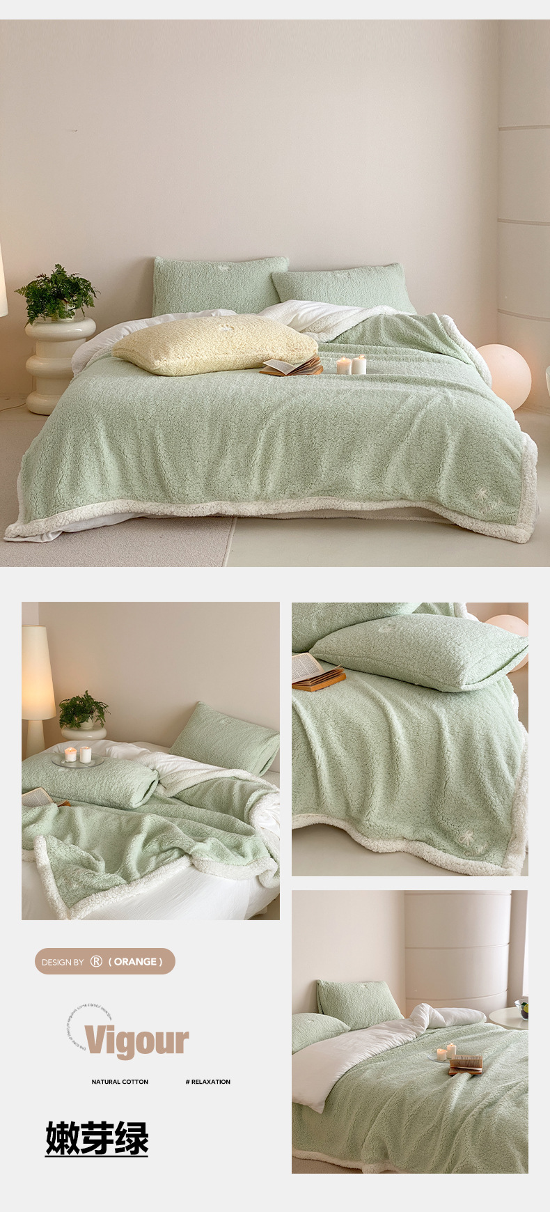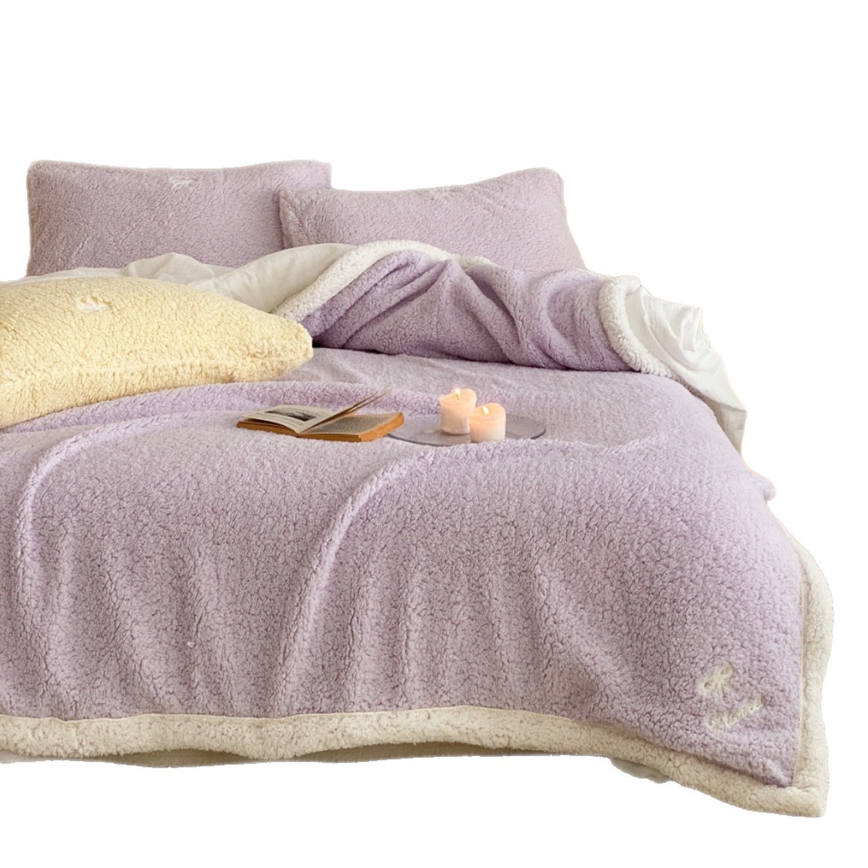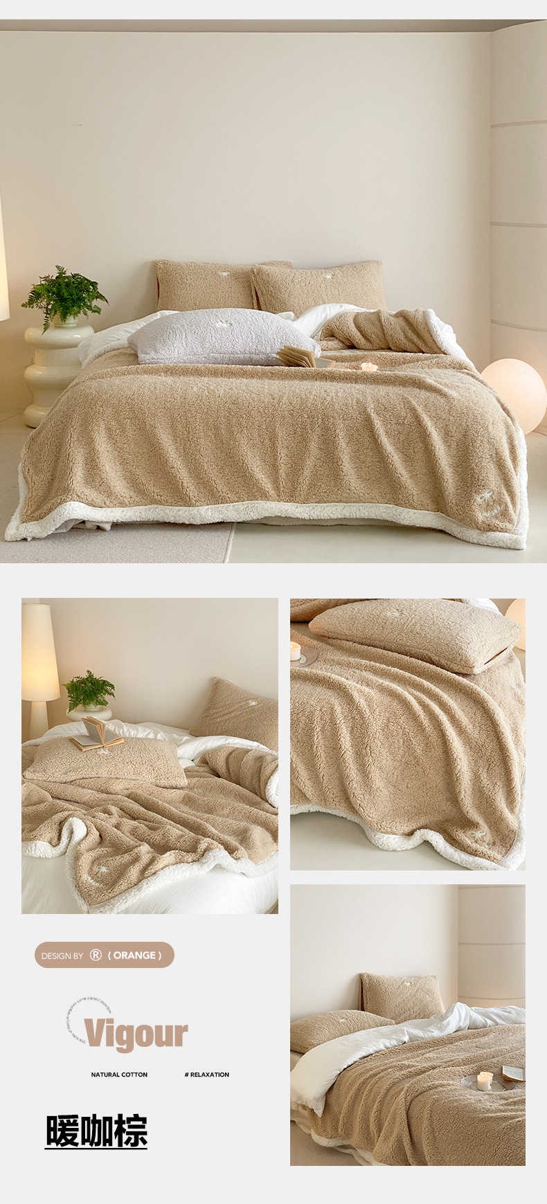 【香龄优品】简约纯色ins风加厚保暖羊羔绒毛巾绣毯沙发毯披肩毯
