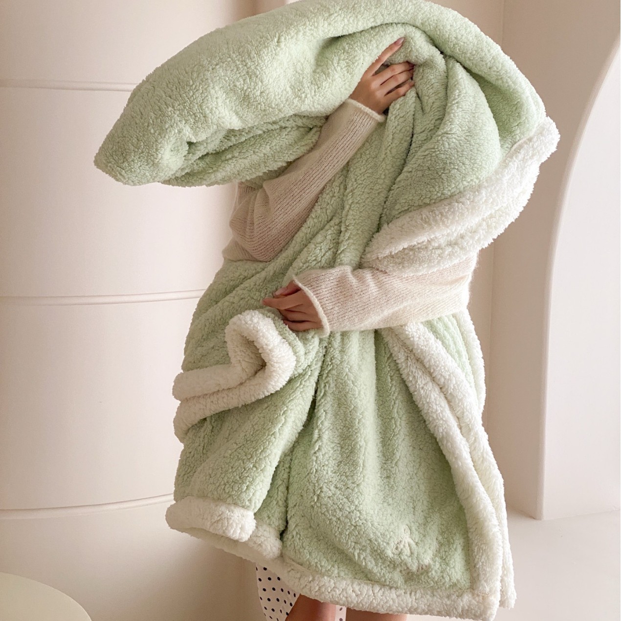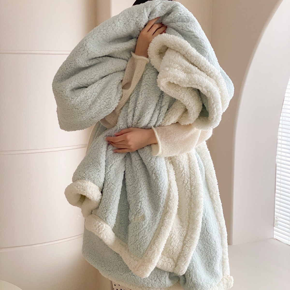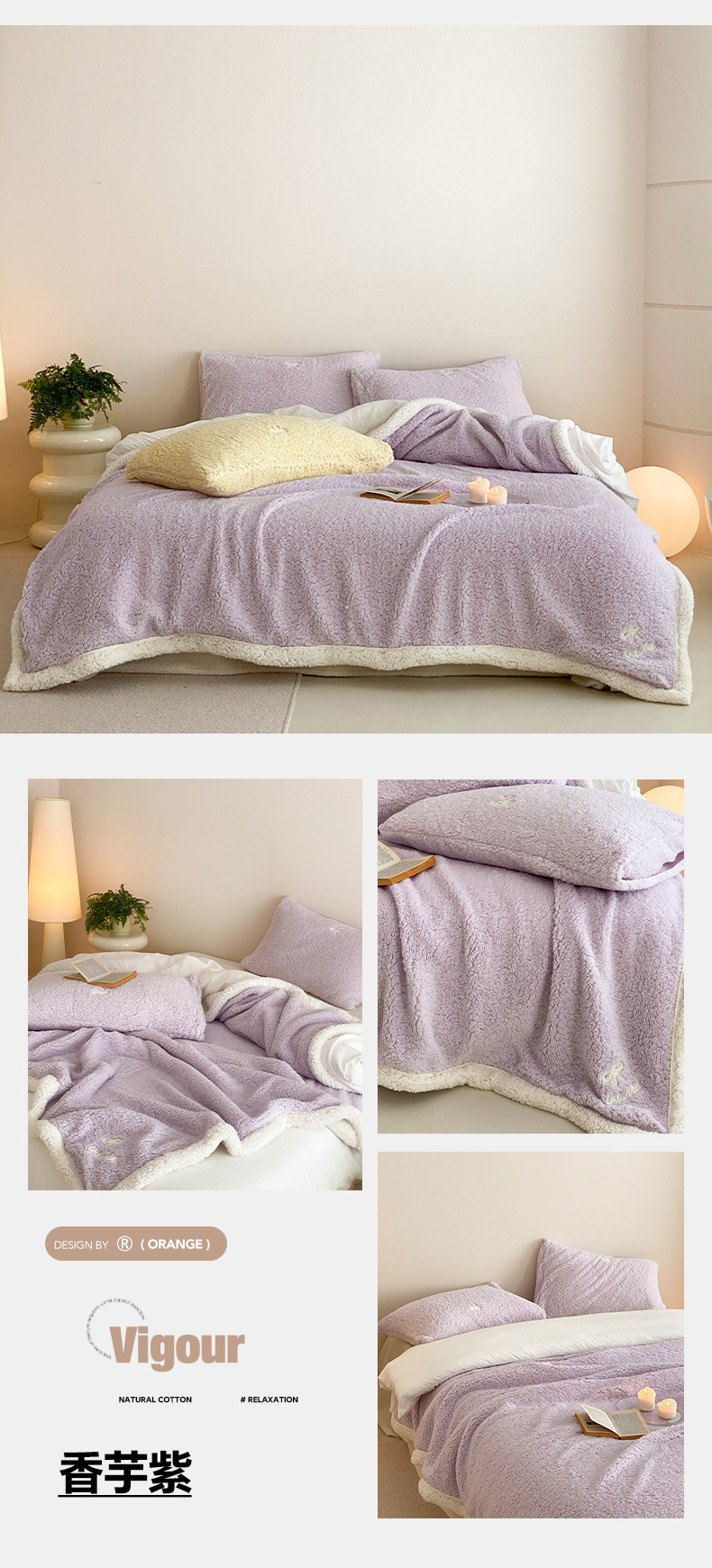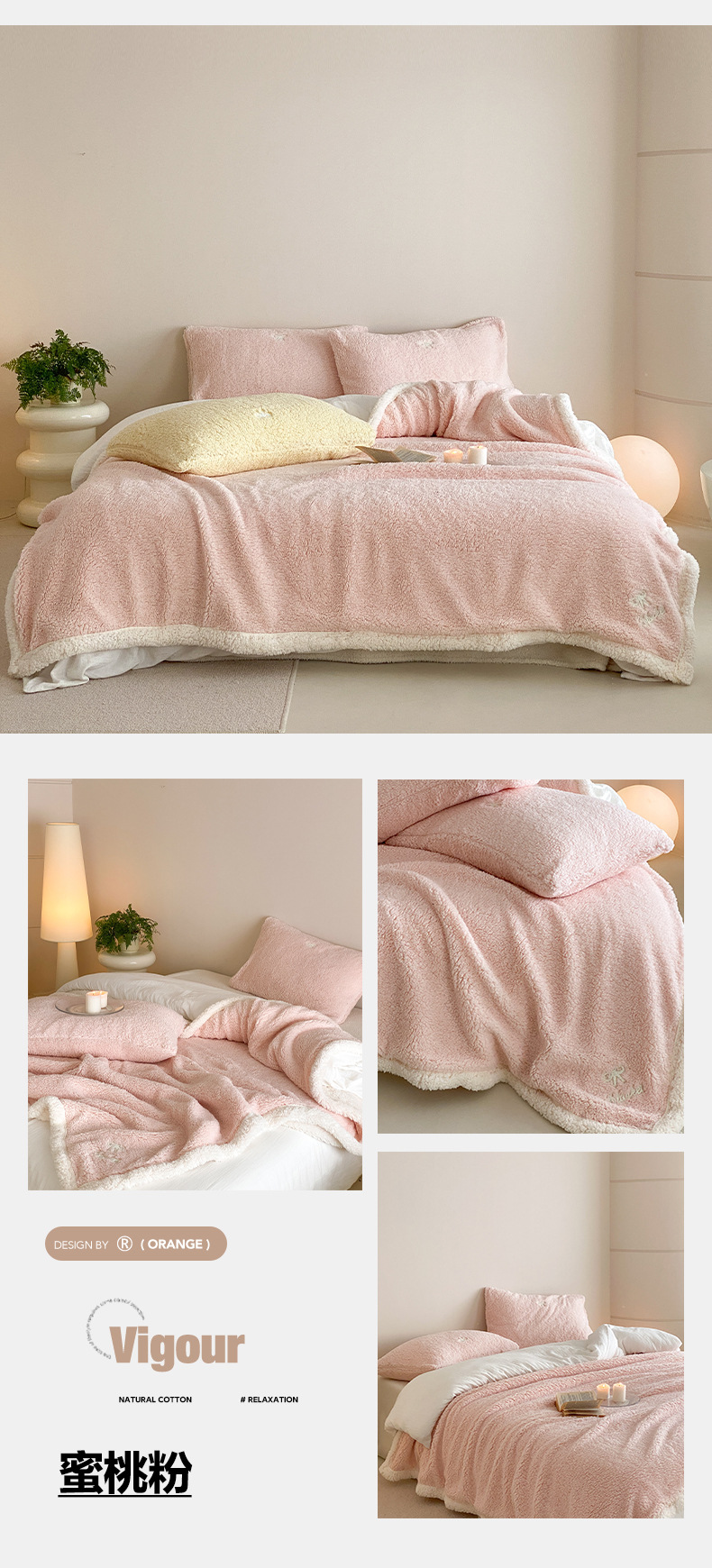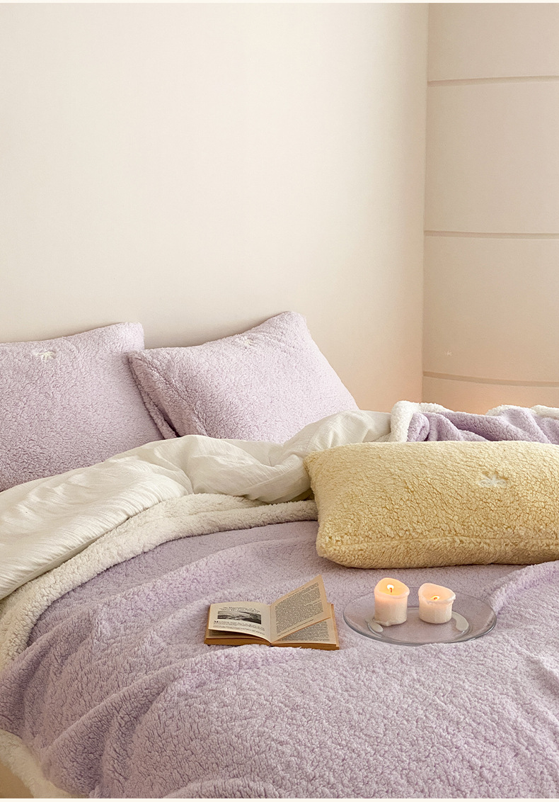 【香龄优品】简约纯色ins风加厚保暖羊羔绒毛巾绣毯沙发毯披肩毯