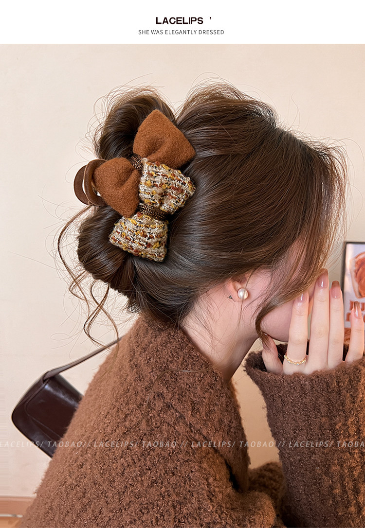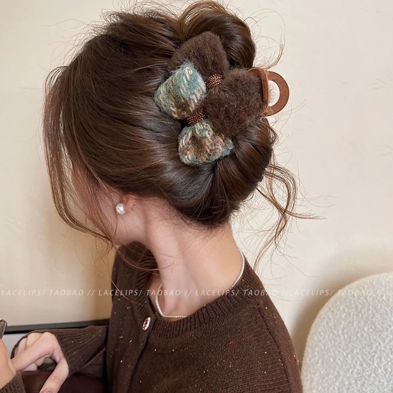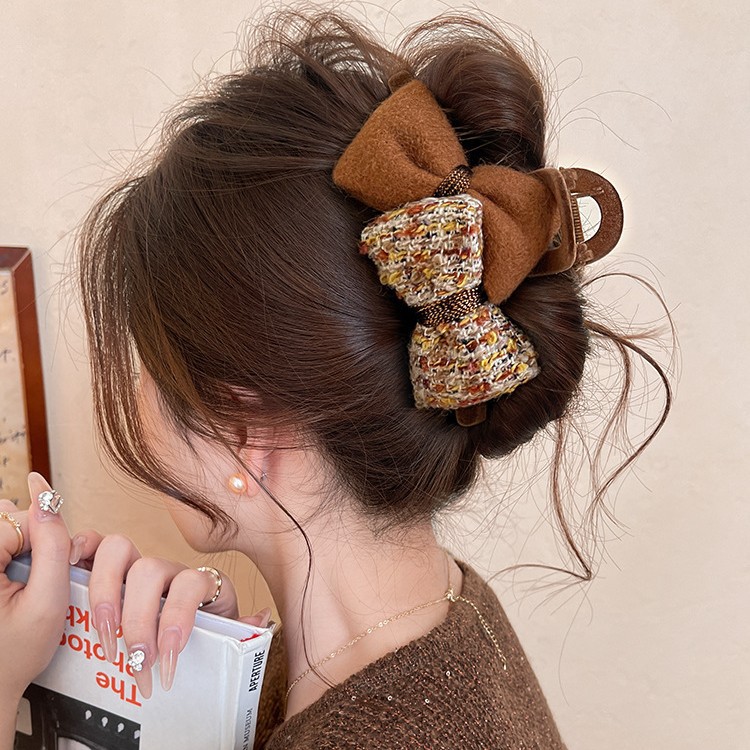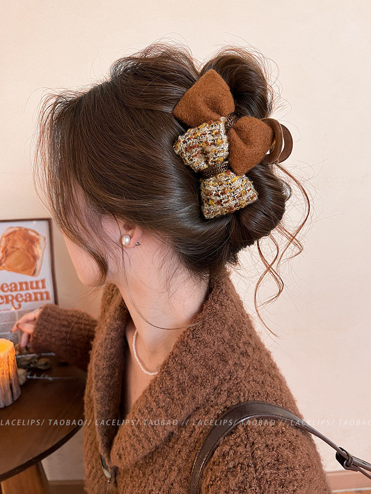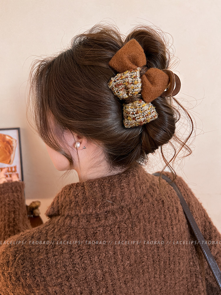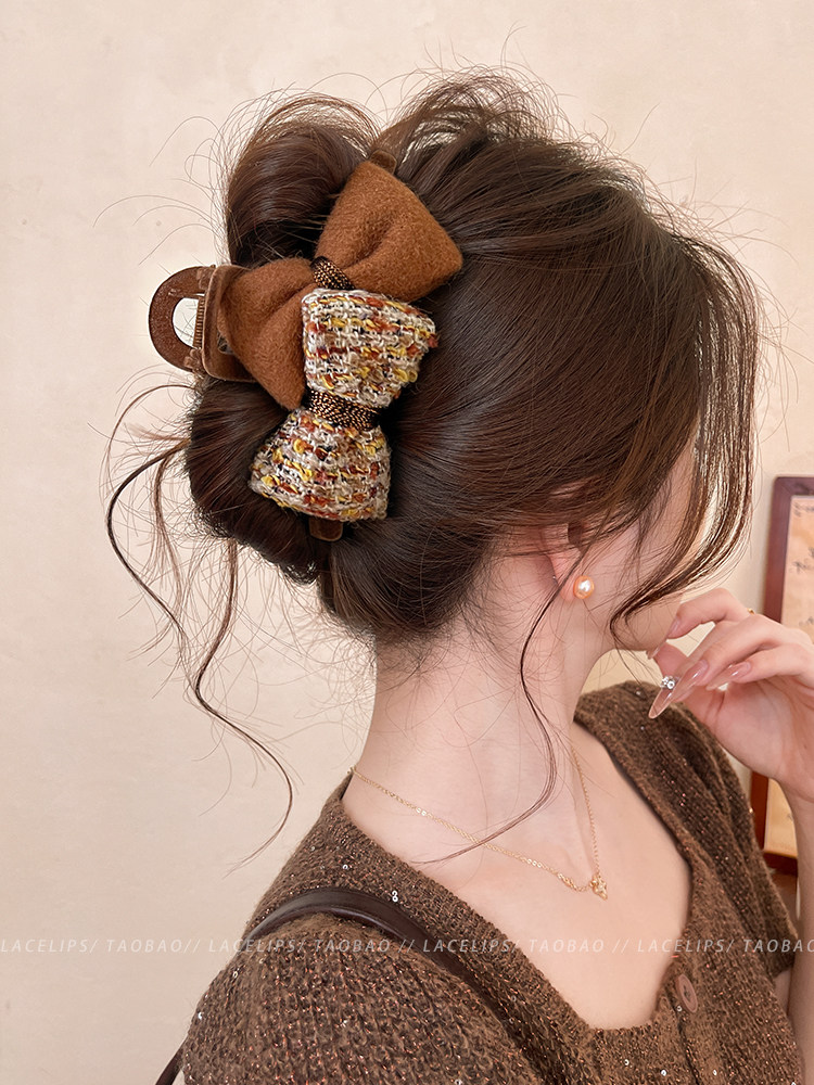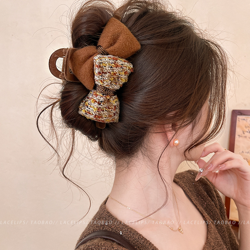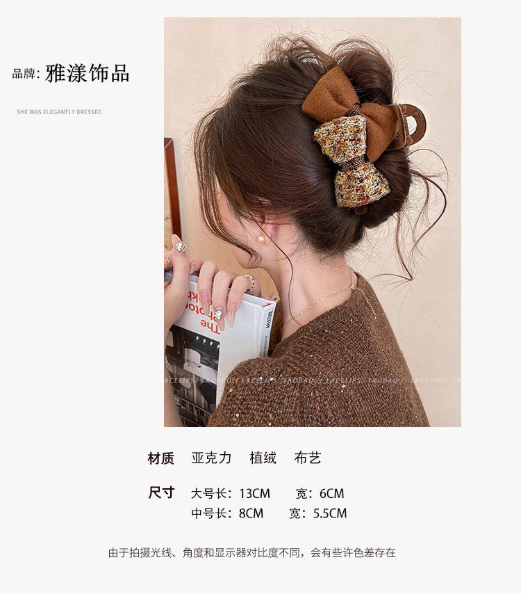 南瓜色AB双面蝴蝶结抓夹大号女2025新款高级感后脑勺鲨鱼夹子头饰