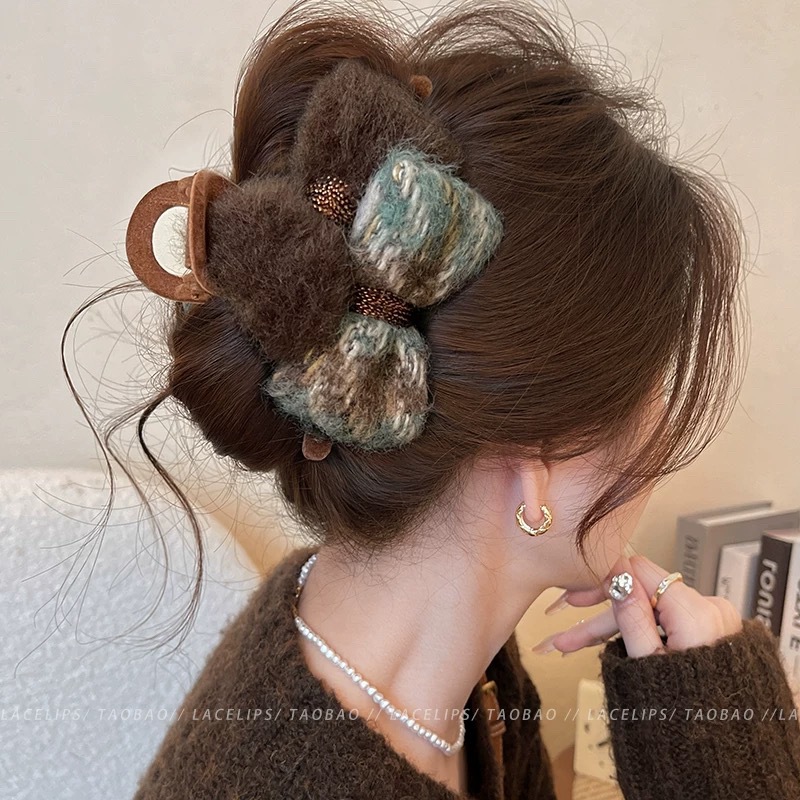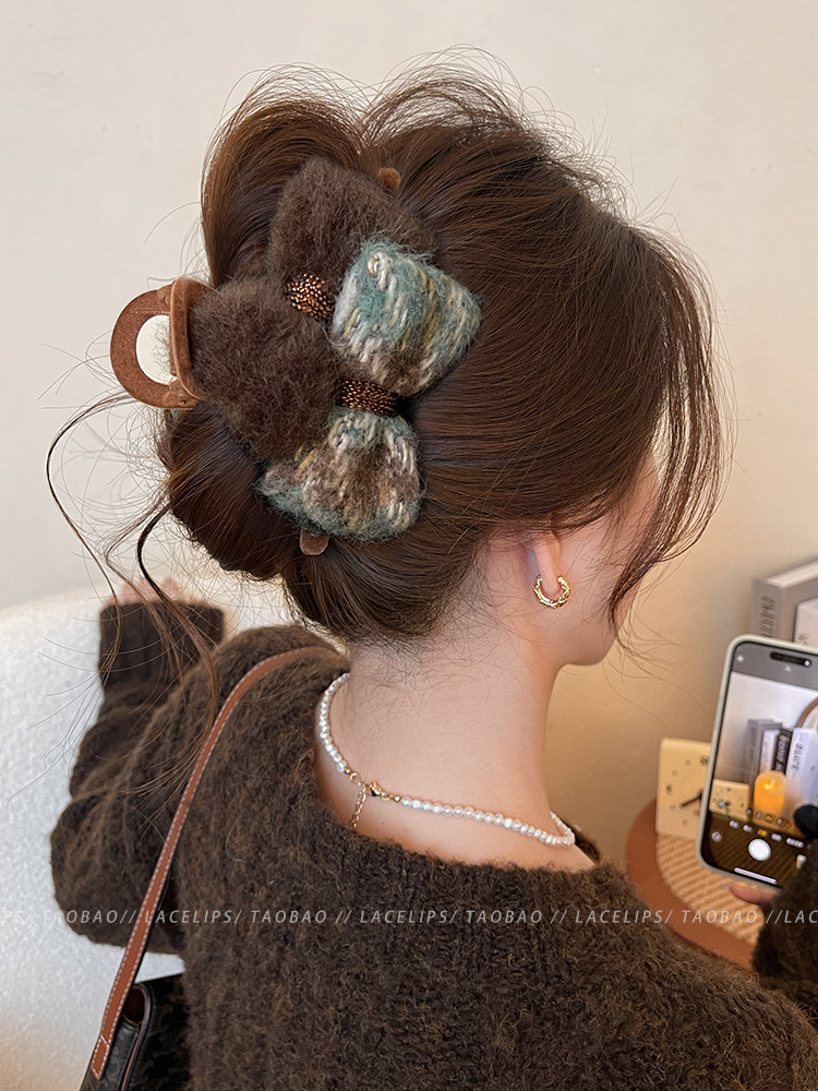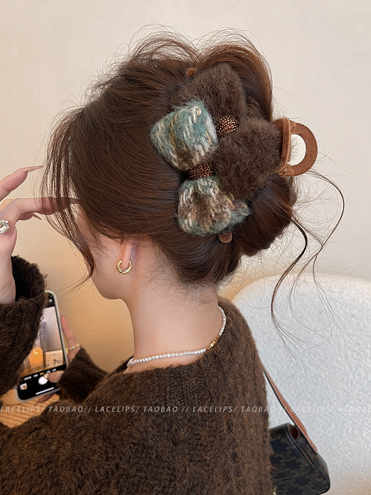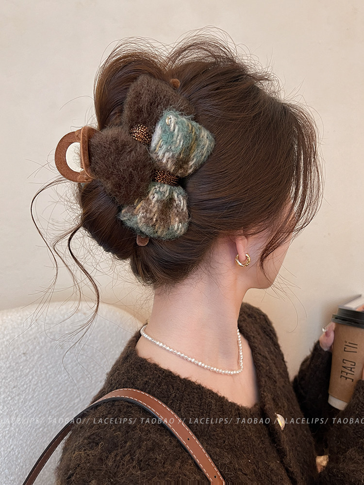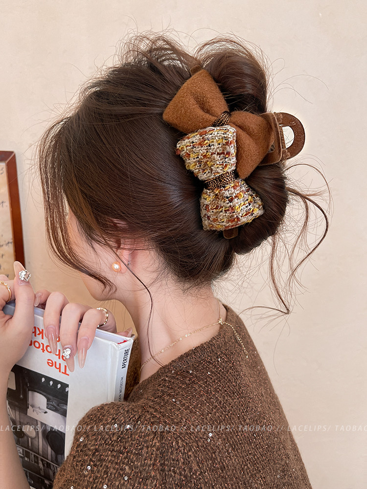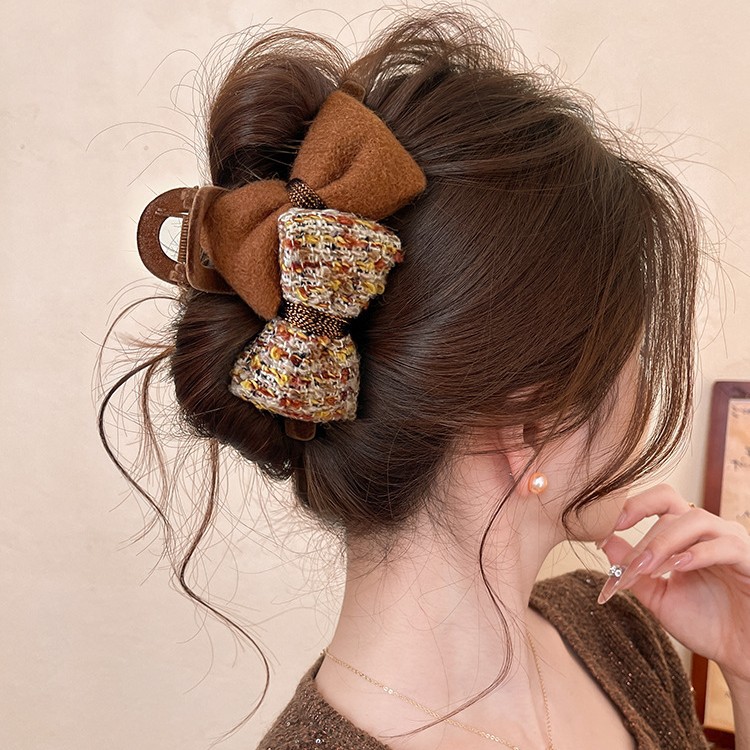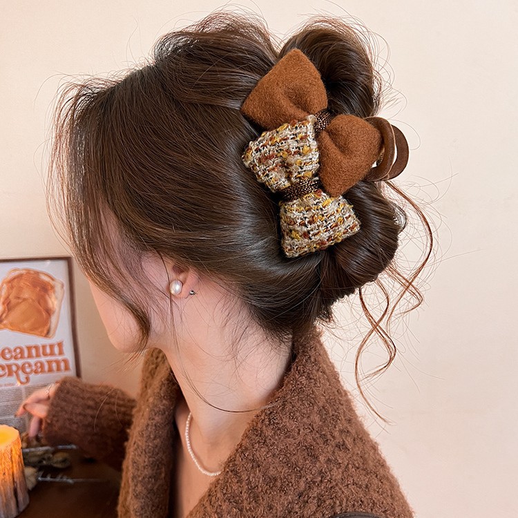 南瓜色AB双面蝴蝶结抓夹大号女2025新款高级感后脑勺鲨鱼夹子头饰