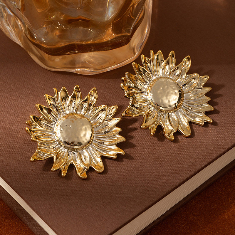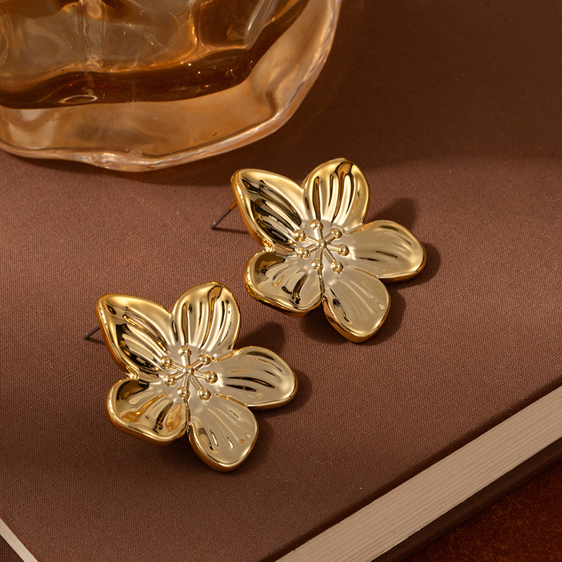 欧美简约女花朵耳环个性夸张耳钉网红CCB多层小众设计感花瓣耳饰