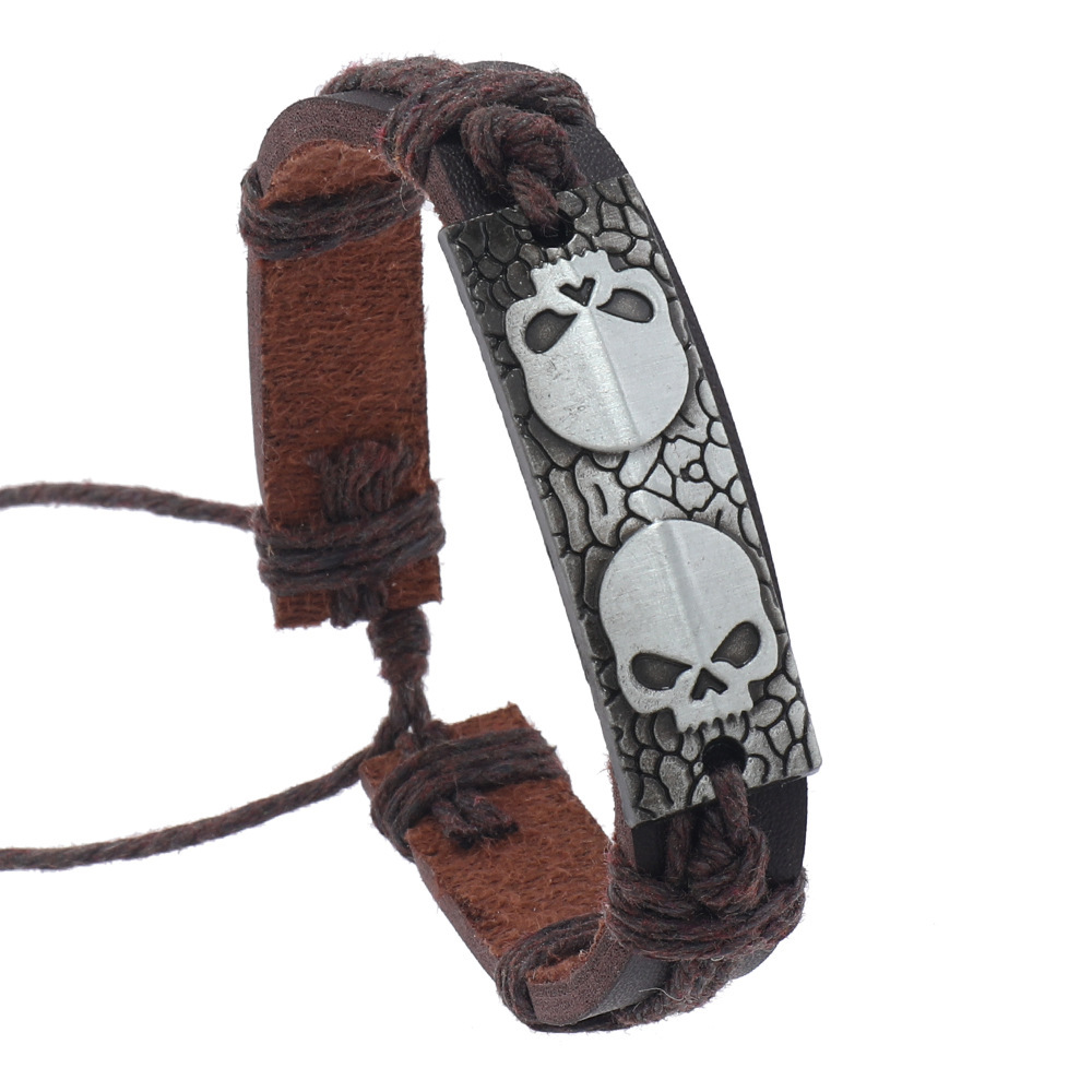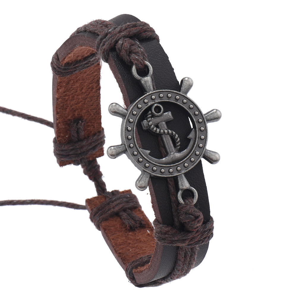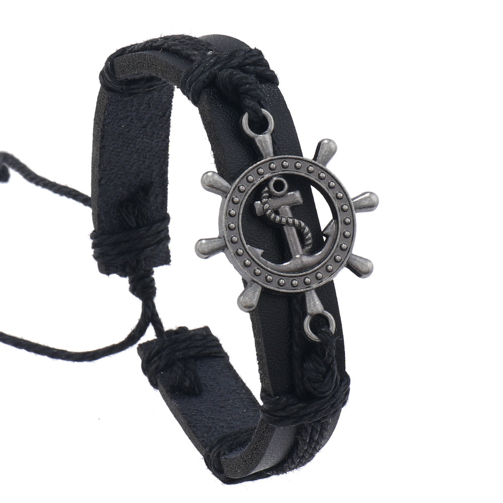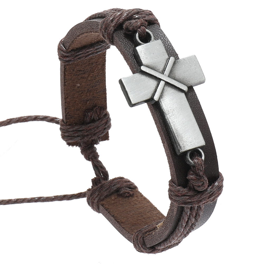 男士文艺复古十字架皮质编织手镯 跨境热卖合金可调节手链