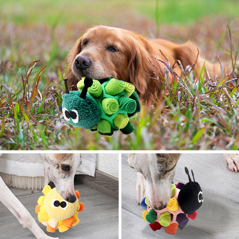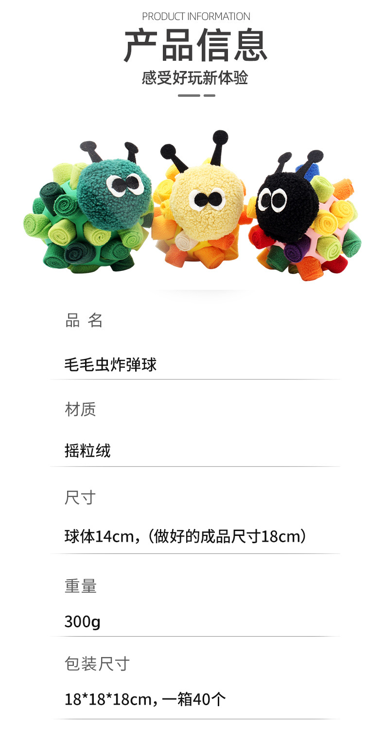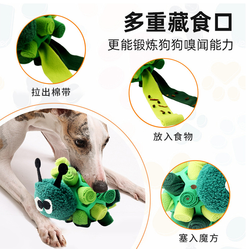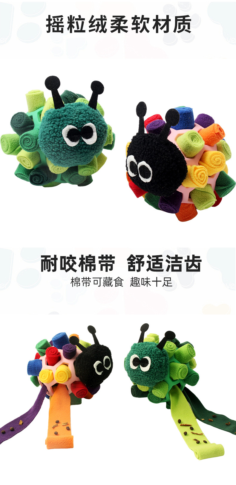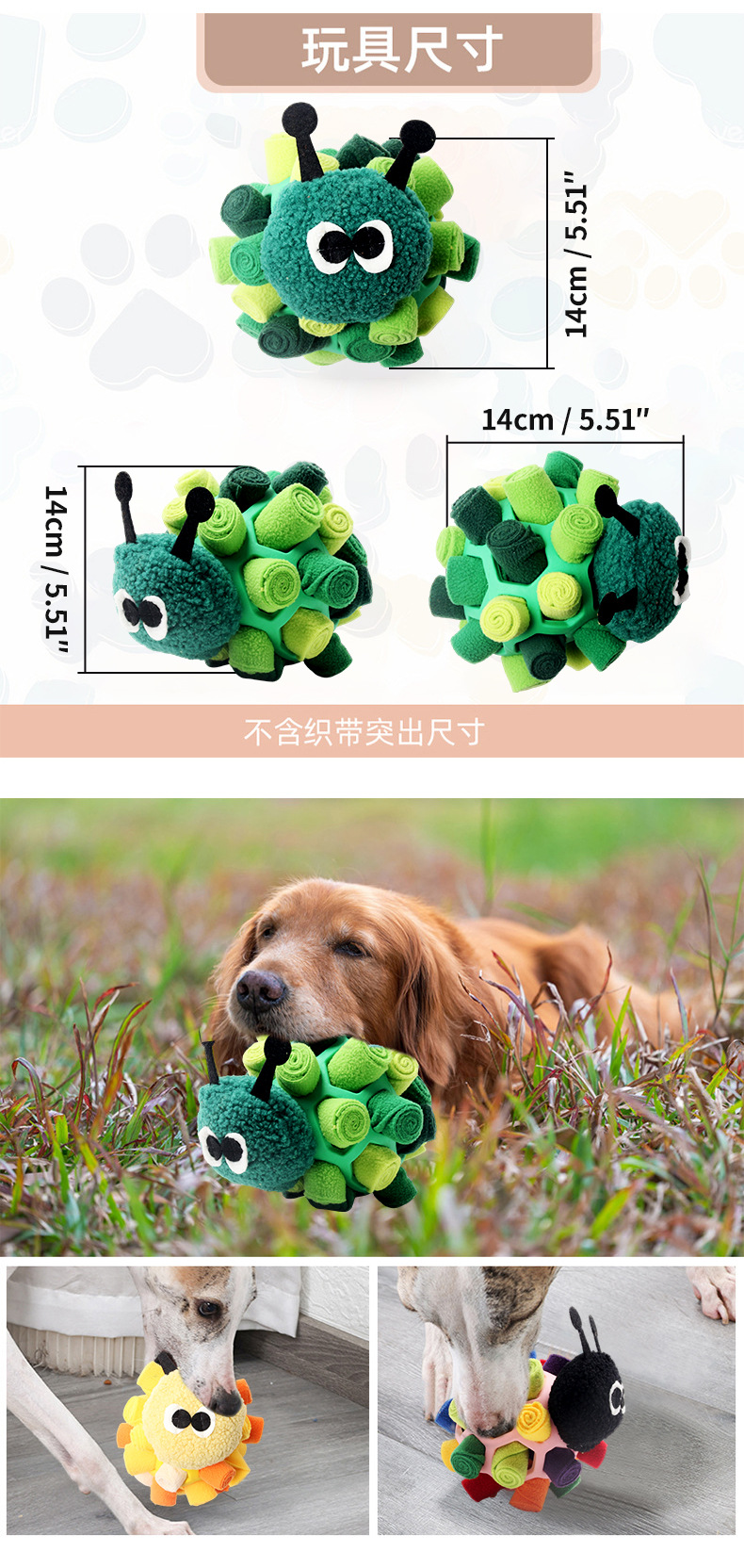 毛毛虫宠物嗅闻垫藏食球 狗狗益智猫猫多功能橡胶球镂空球炸炸球
