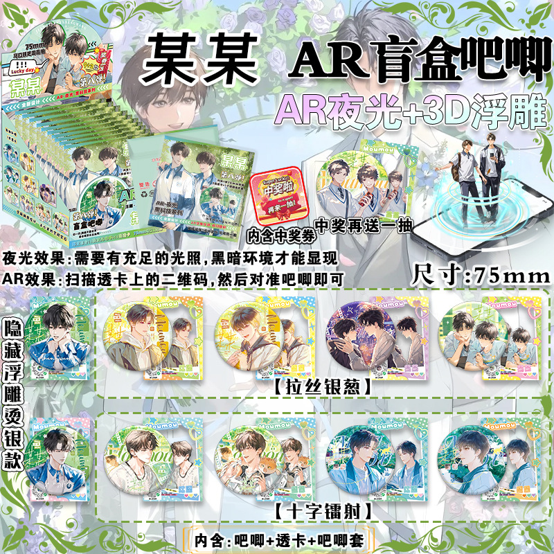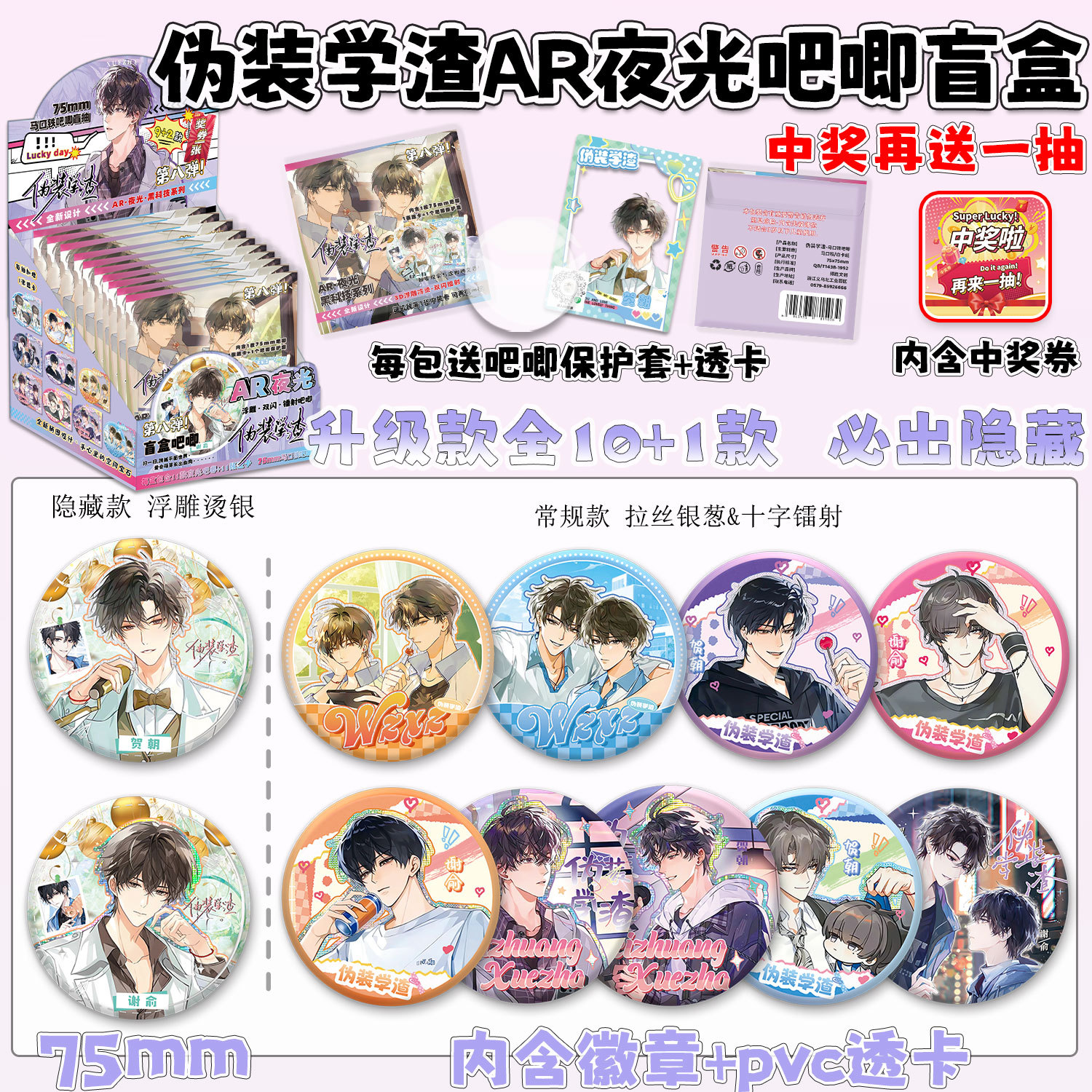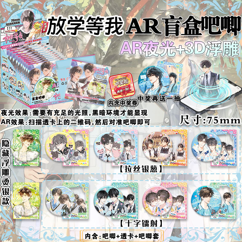 某某AR吧唧盲盒周边放学等我马口铁双闪夜光徽章盲抽谷子盲袋
