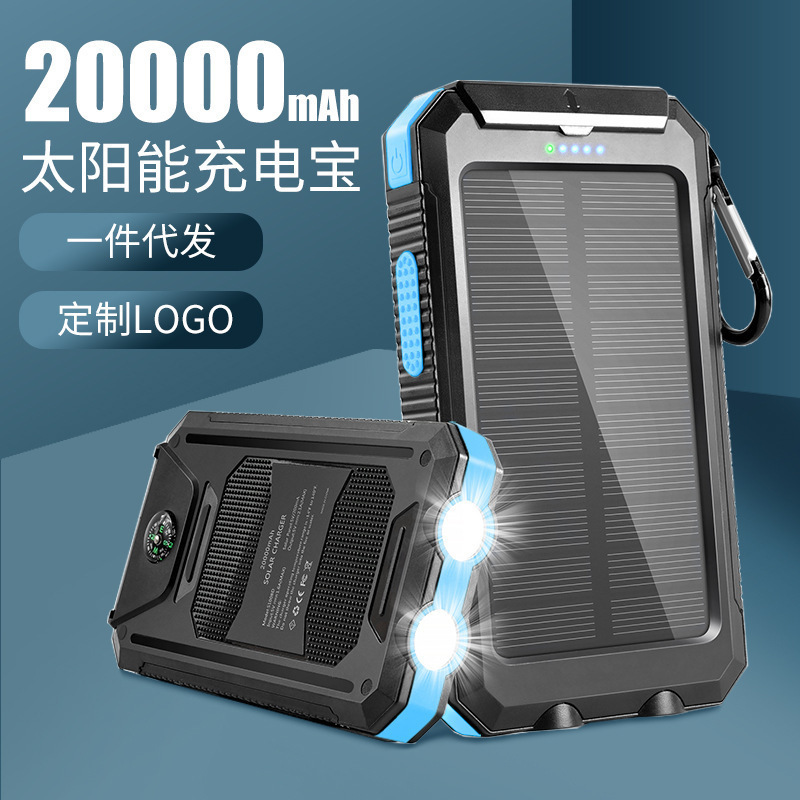 亚马逊爆款防水太阳能充电宝20000mAh露营灯便携移动电源工厂直销