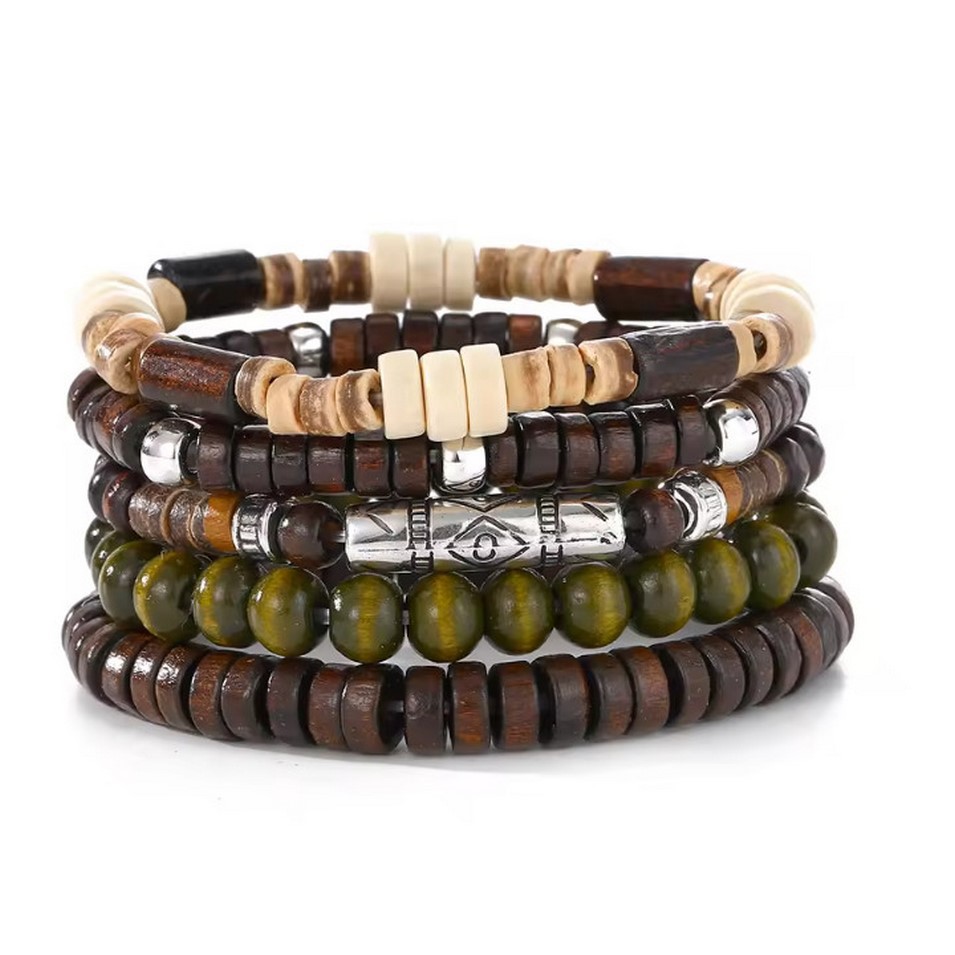 跨境热销复古男士手工串珠手链套装 多层椰壳手串饰品 DIY手饰品
