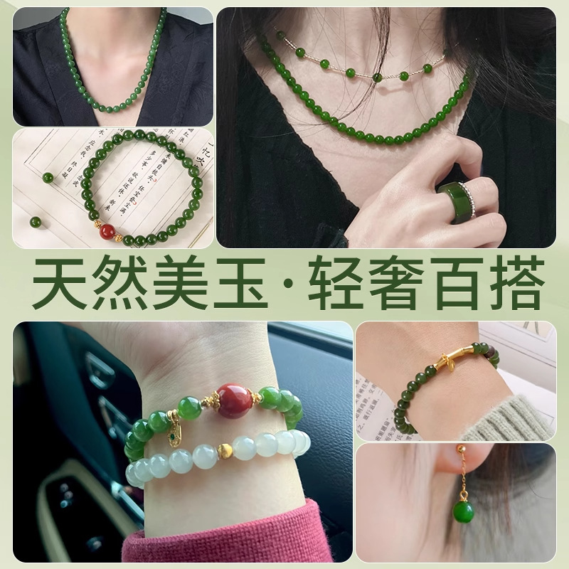 涛天然和田玉散珠碧玉珠手工diy玉石手链串珠配珠和田玉珠子配件