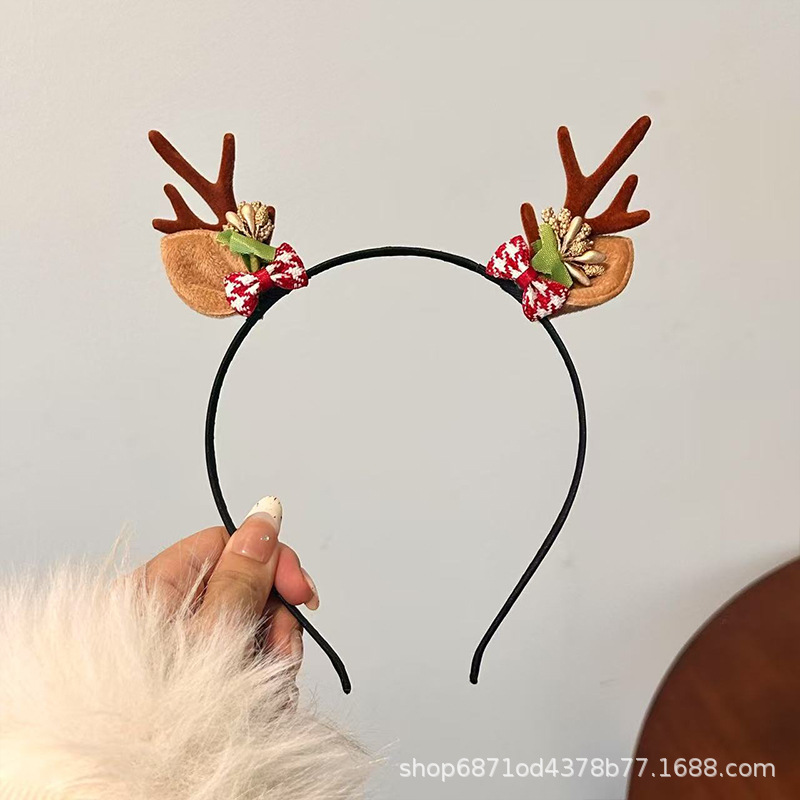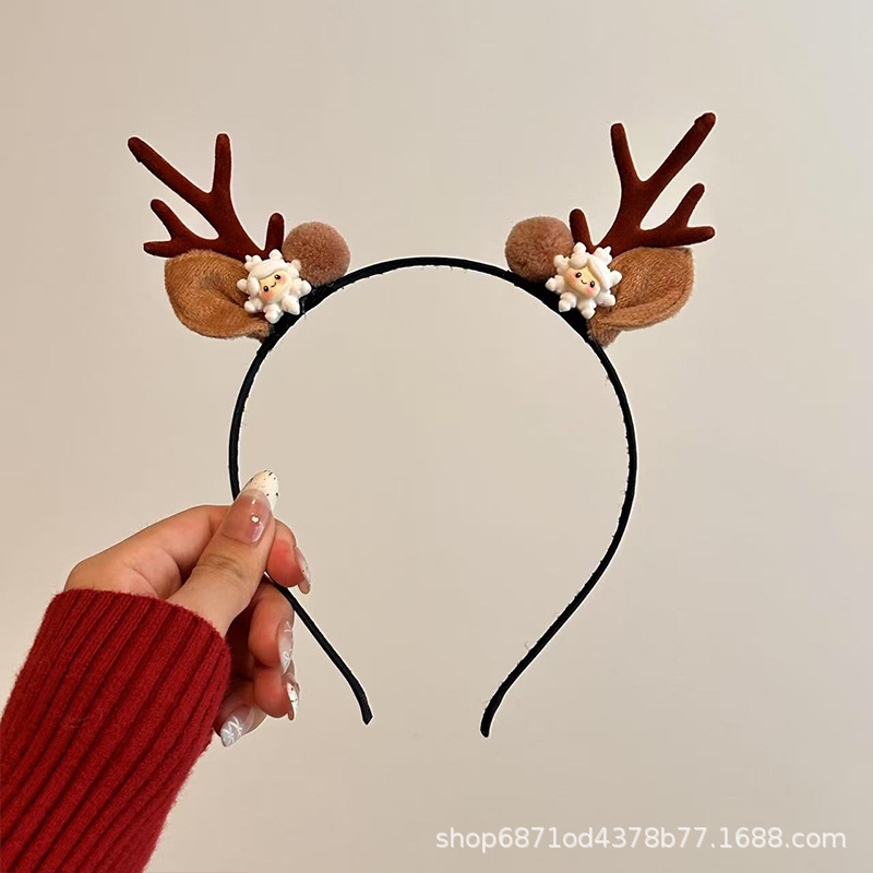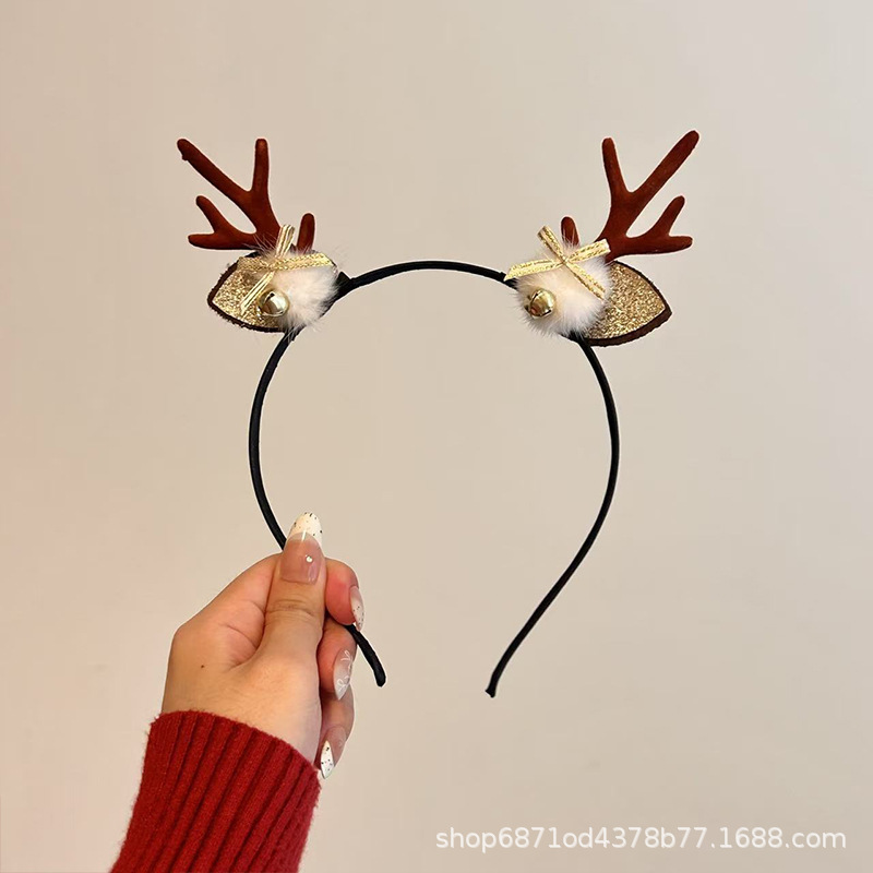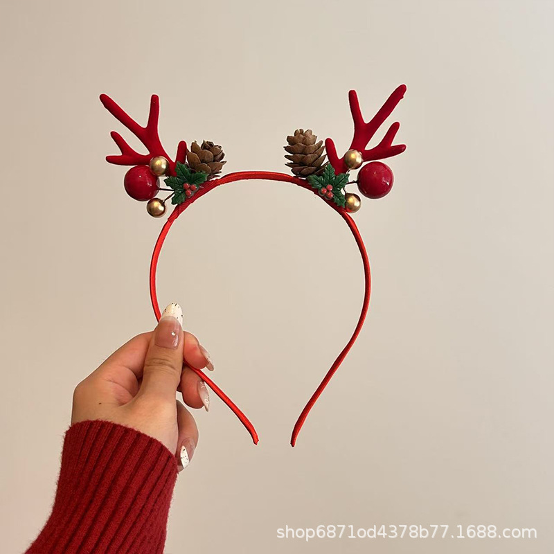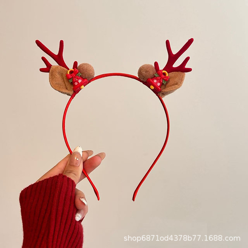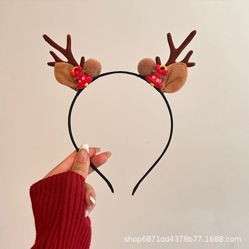 森系圣诞节发饰鹿角雪花铃铛头箍派对节假日高级感可爱麋鹿发卡