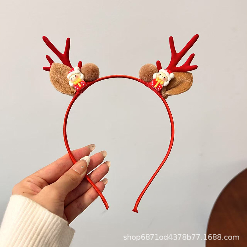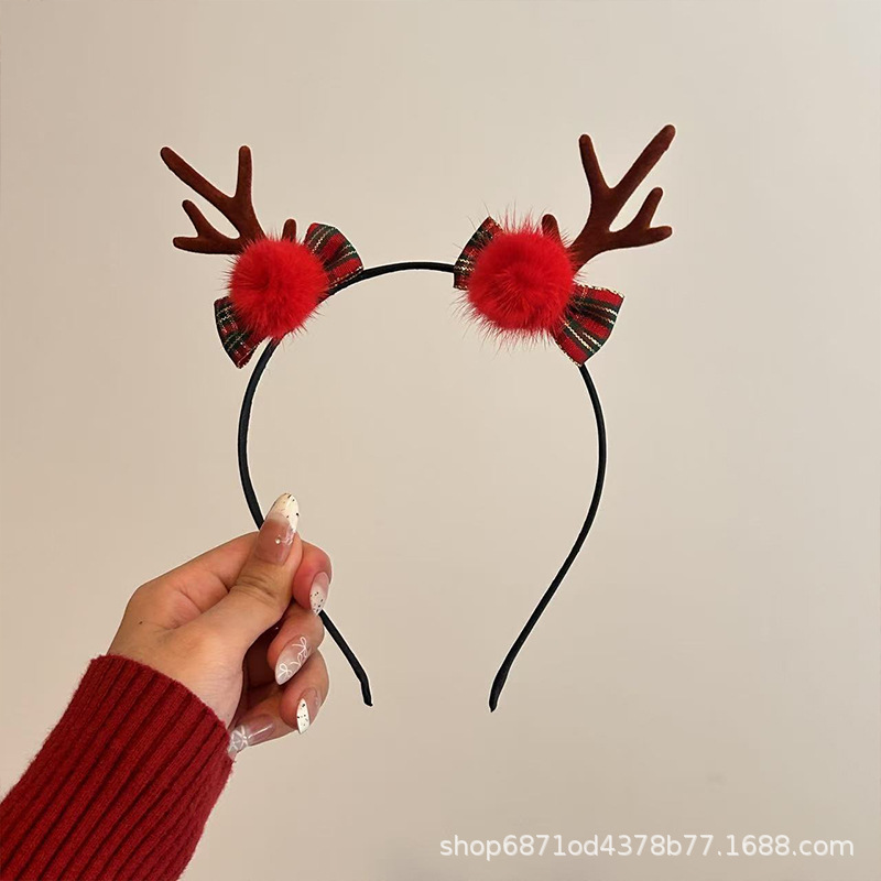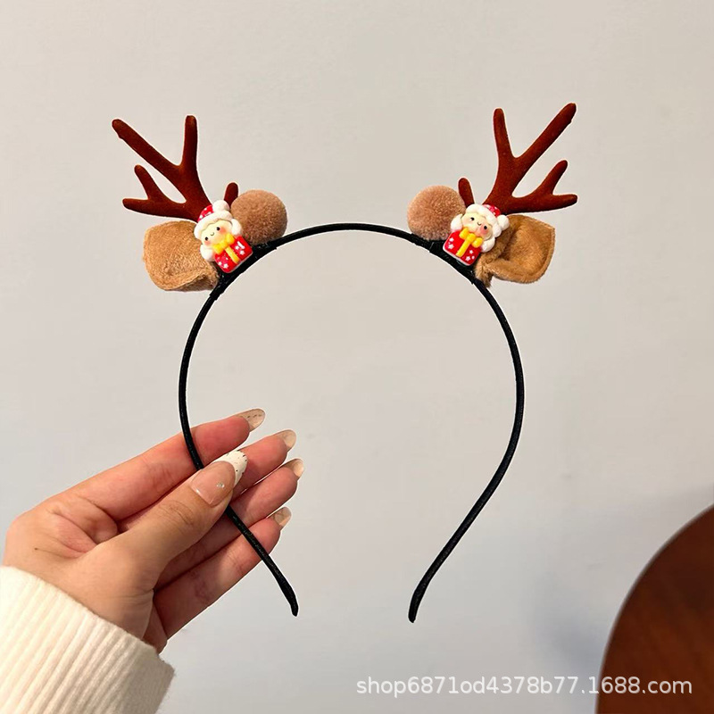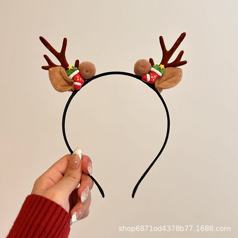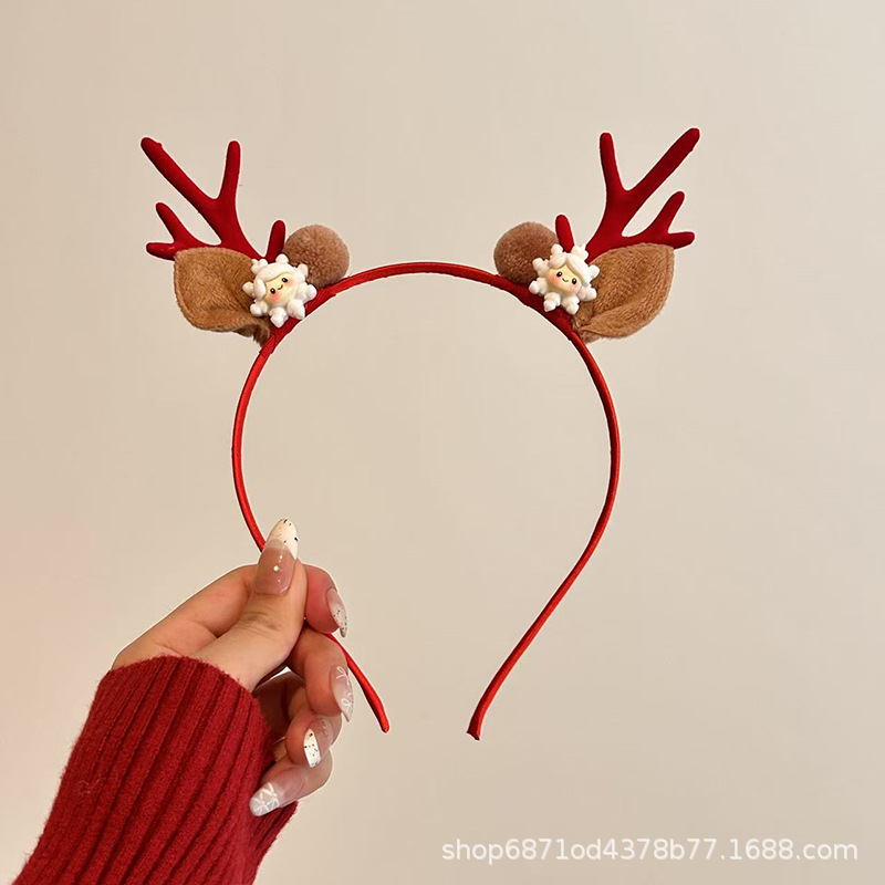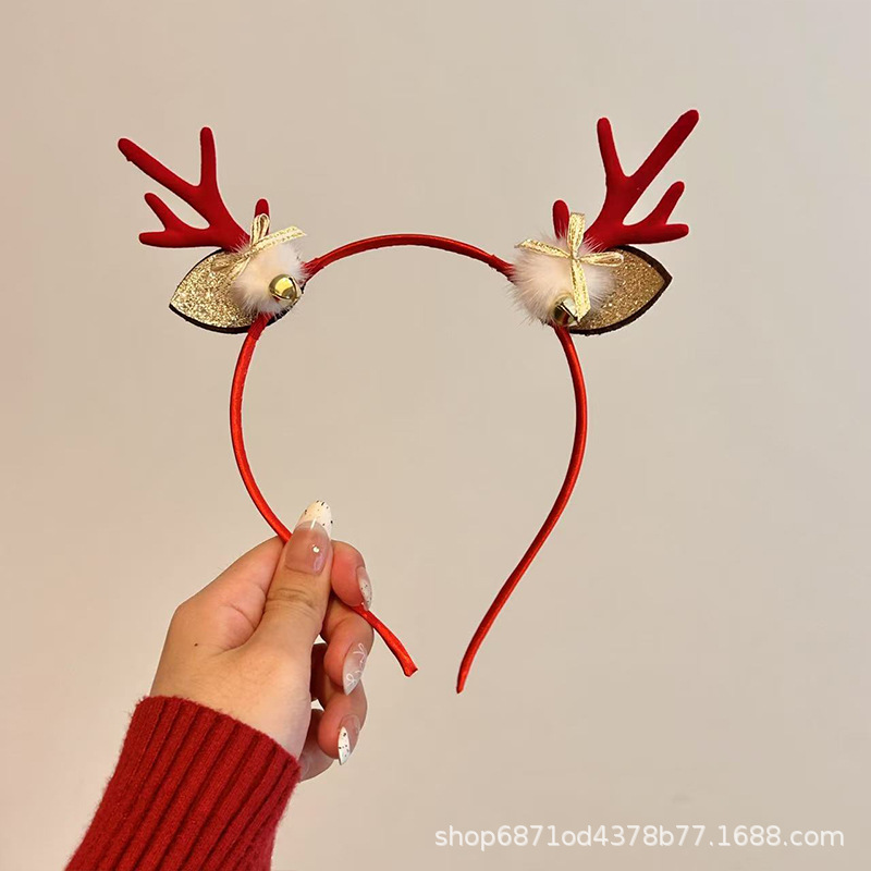 森系圣诞节发饰鹿角雪花铃铛头箍派对节假日高级感可爱麋鹿发卡