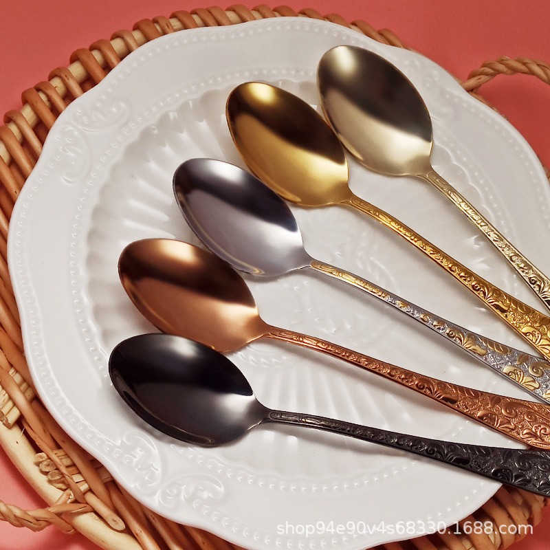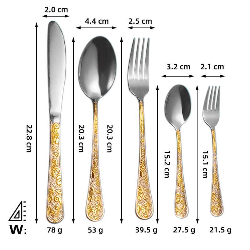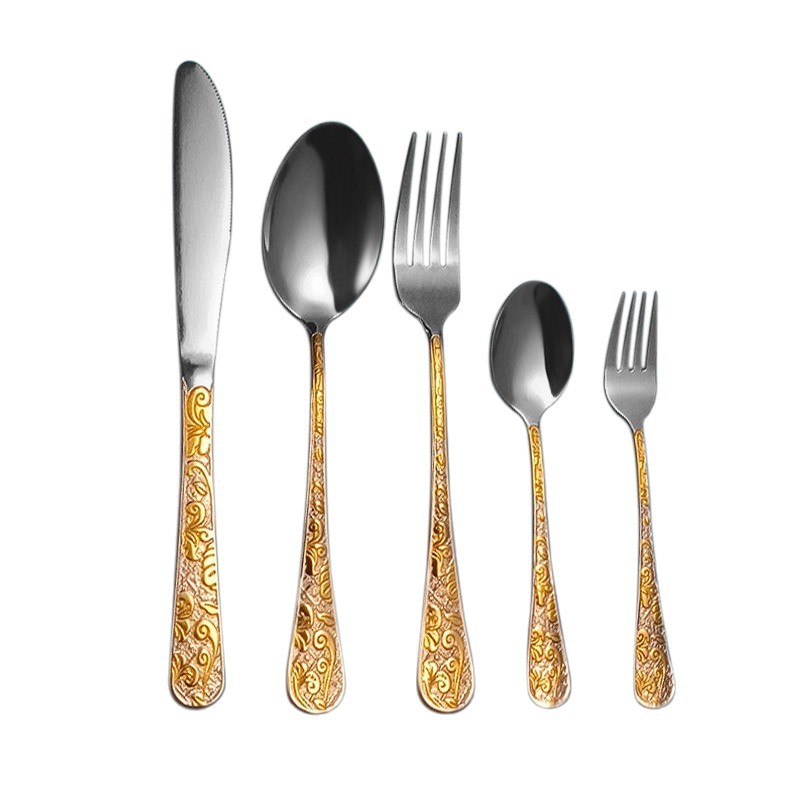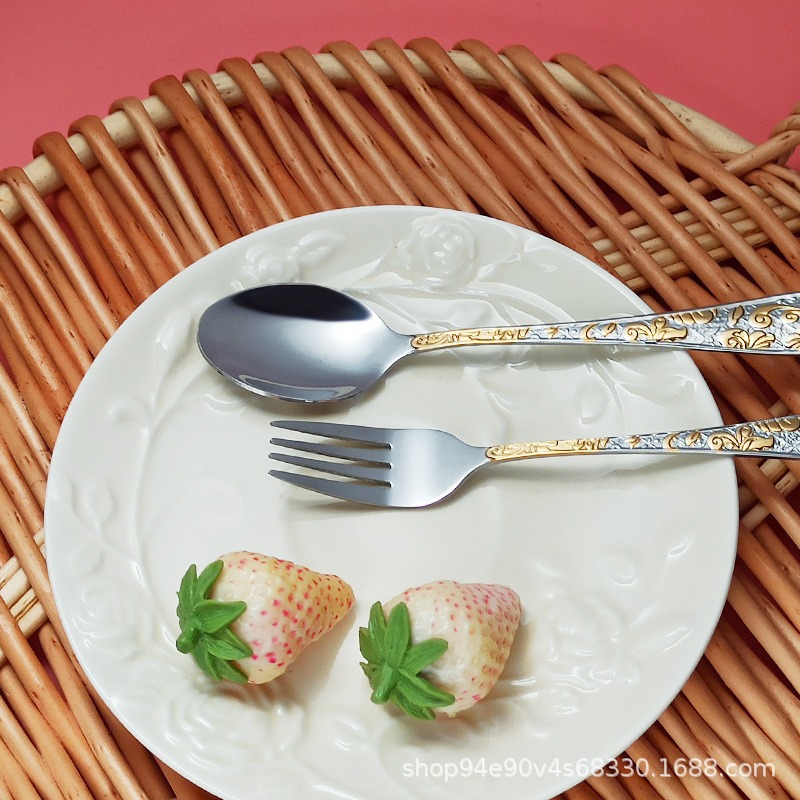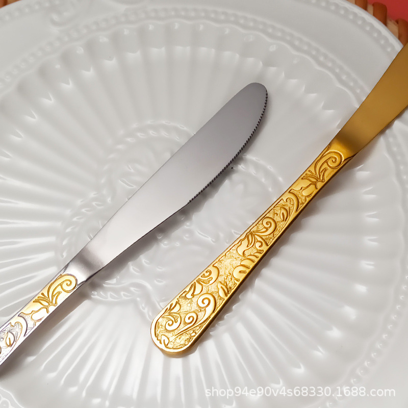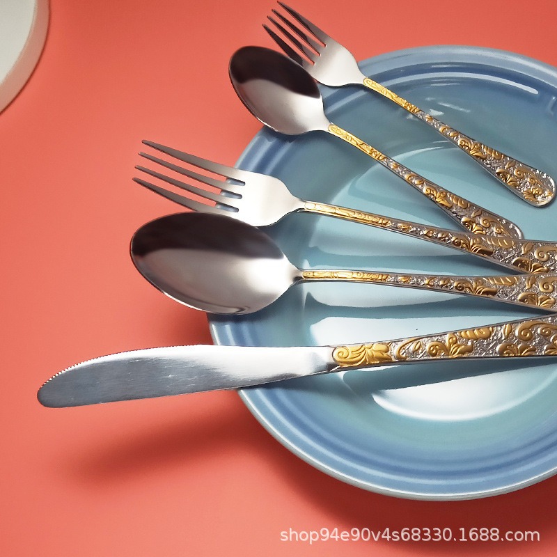 外贸不锈钢昆庭勺子刀叉餐具套装创意浮雕手柄酒店西餐轻奢