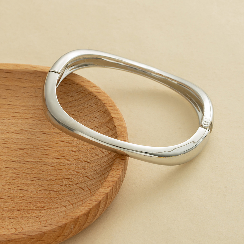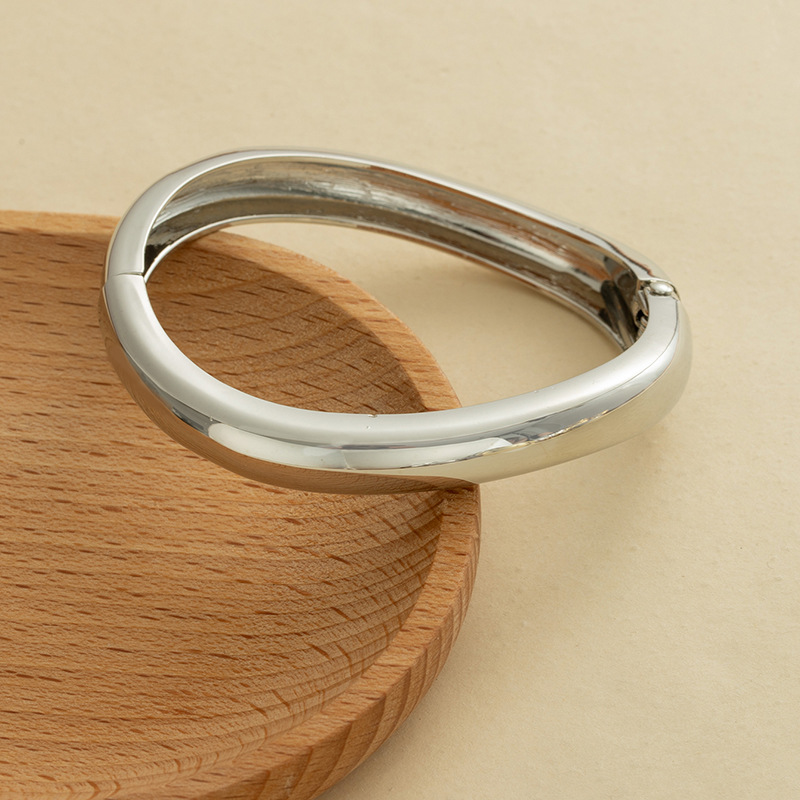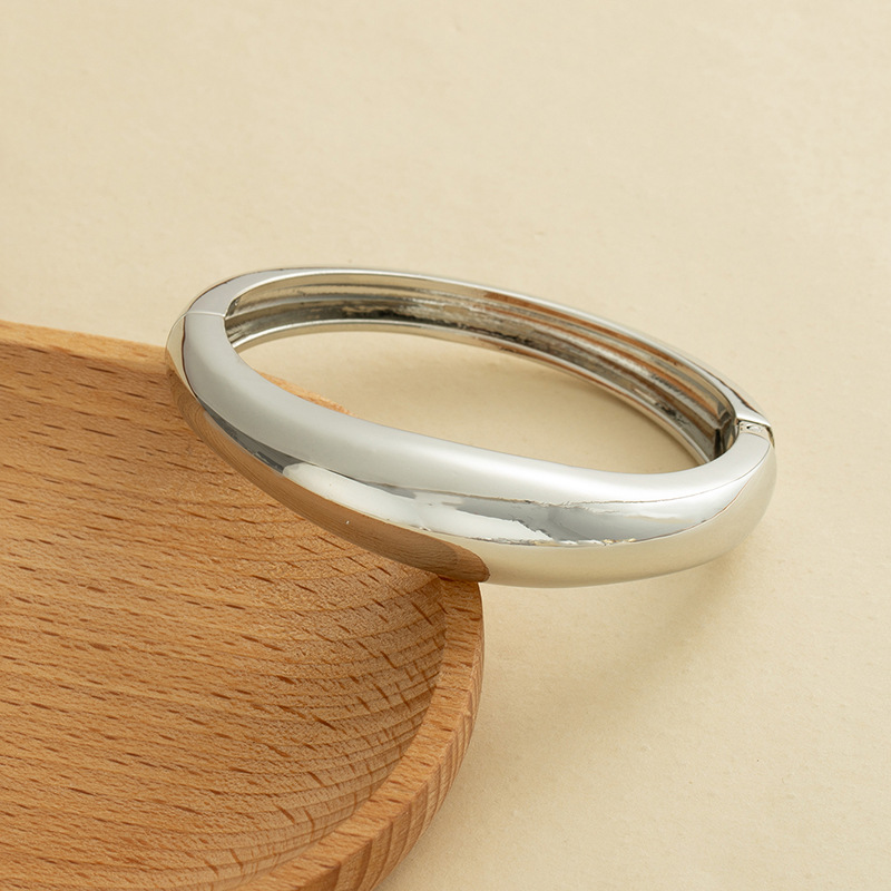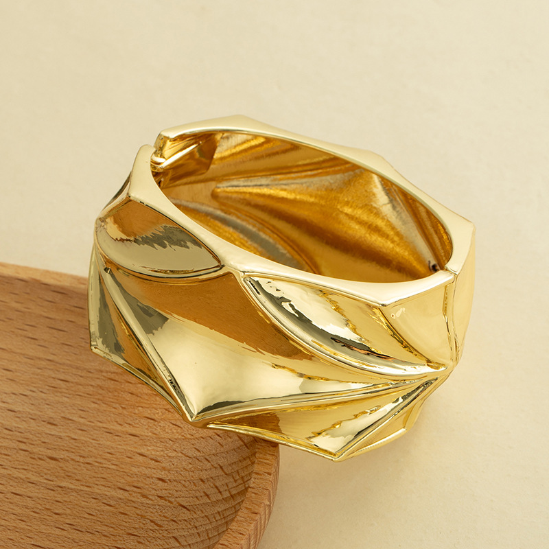 欧美跨境夸张ins重工设计感金属光面开口手镯极简几何个性宽手环