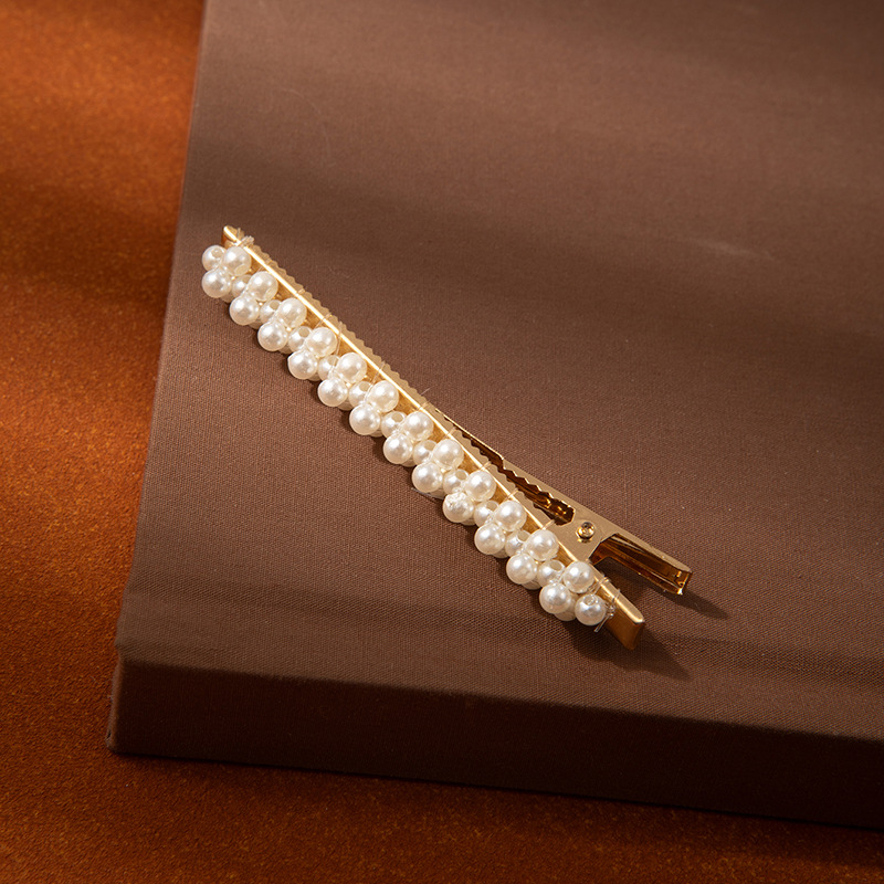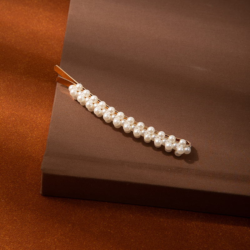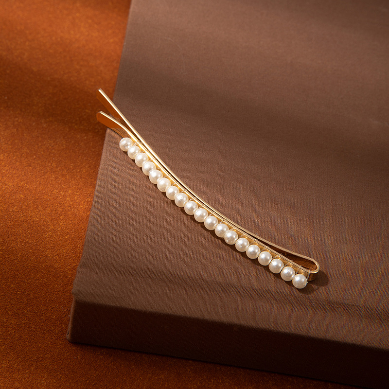 外贸热销珍珠一字夹简约百搭发饰diy手工编织蝴蝶结边夹头饰发夹